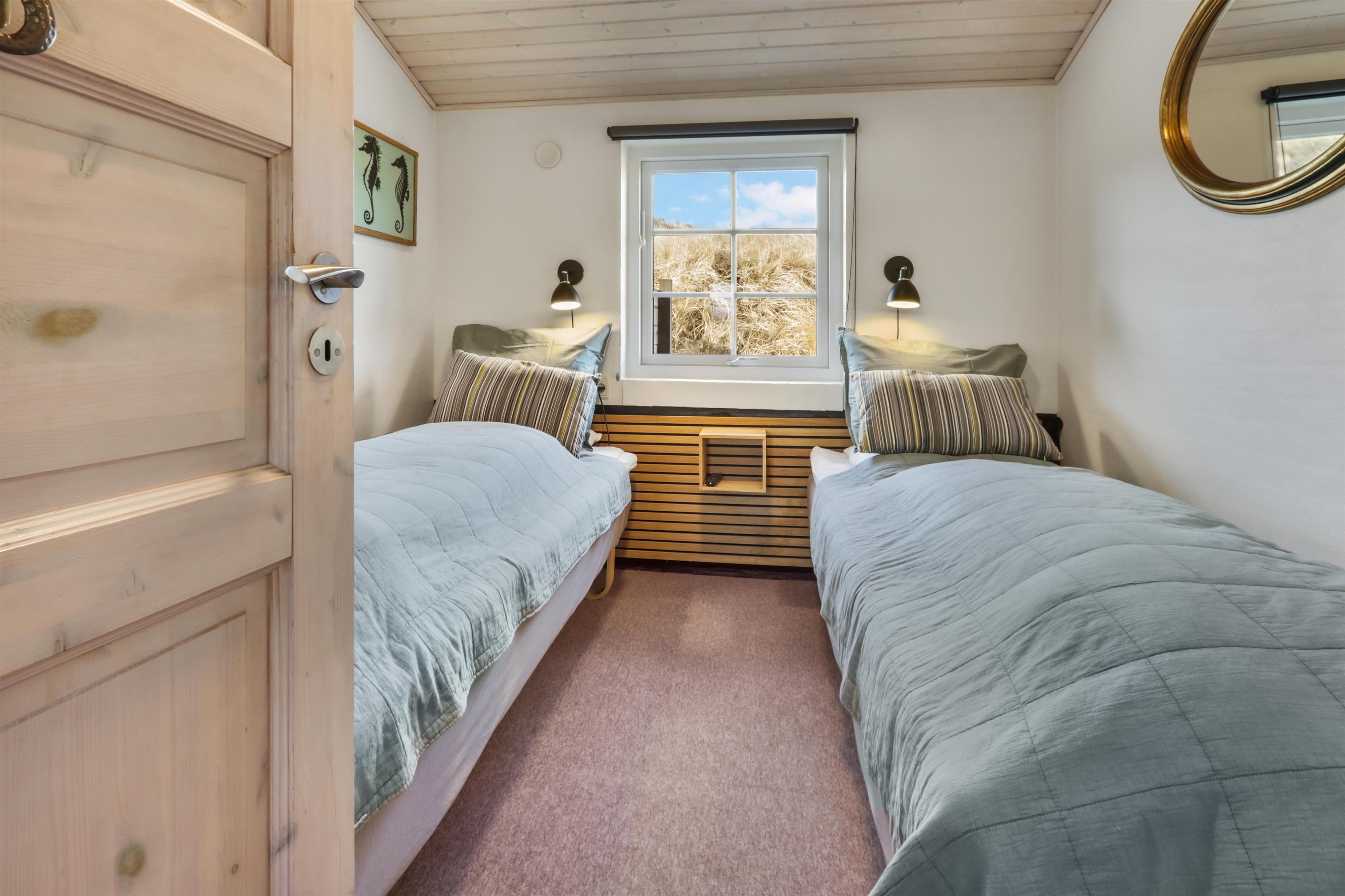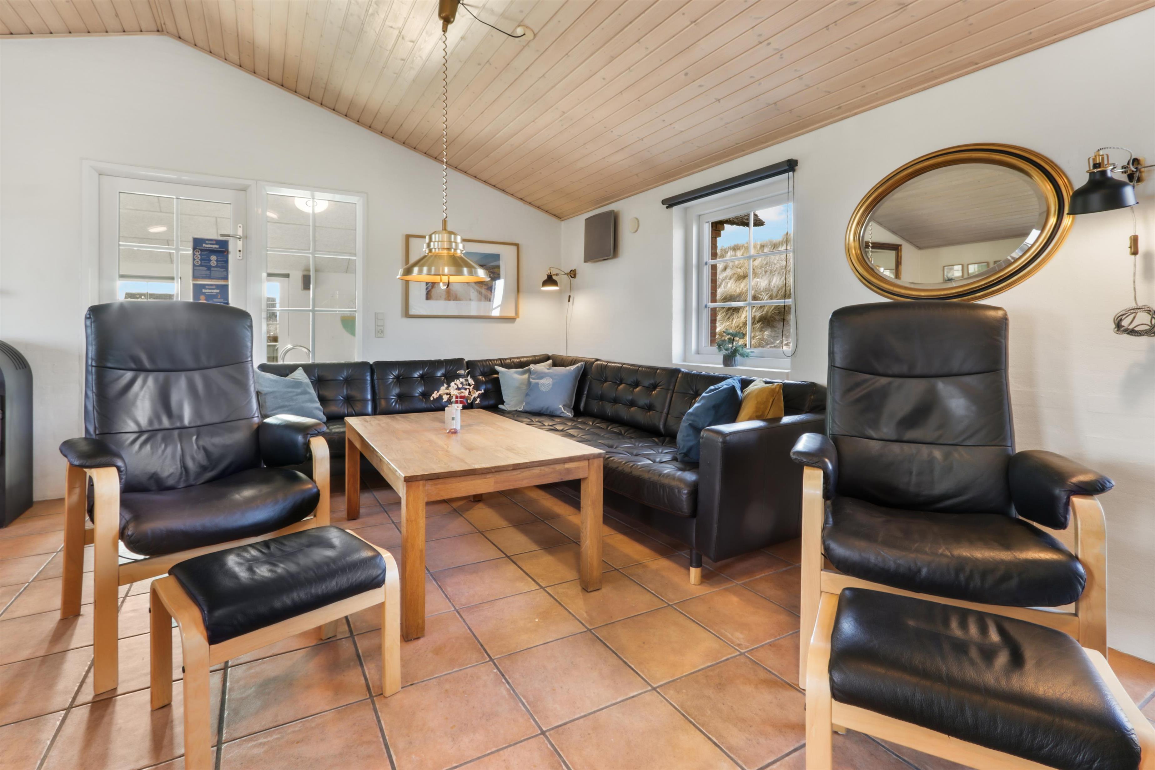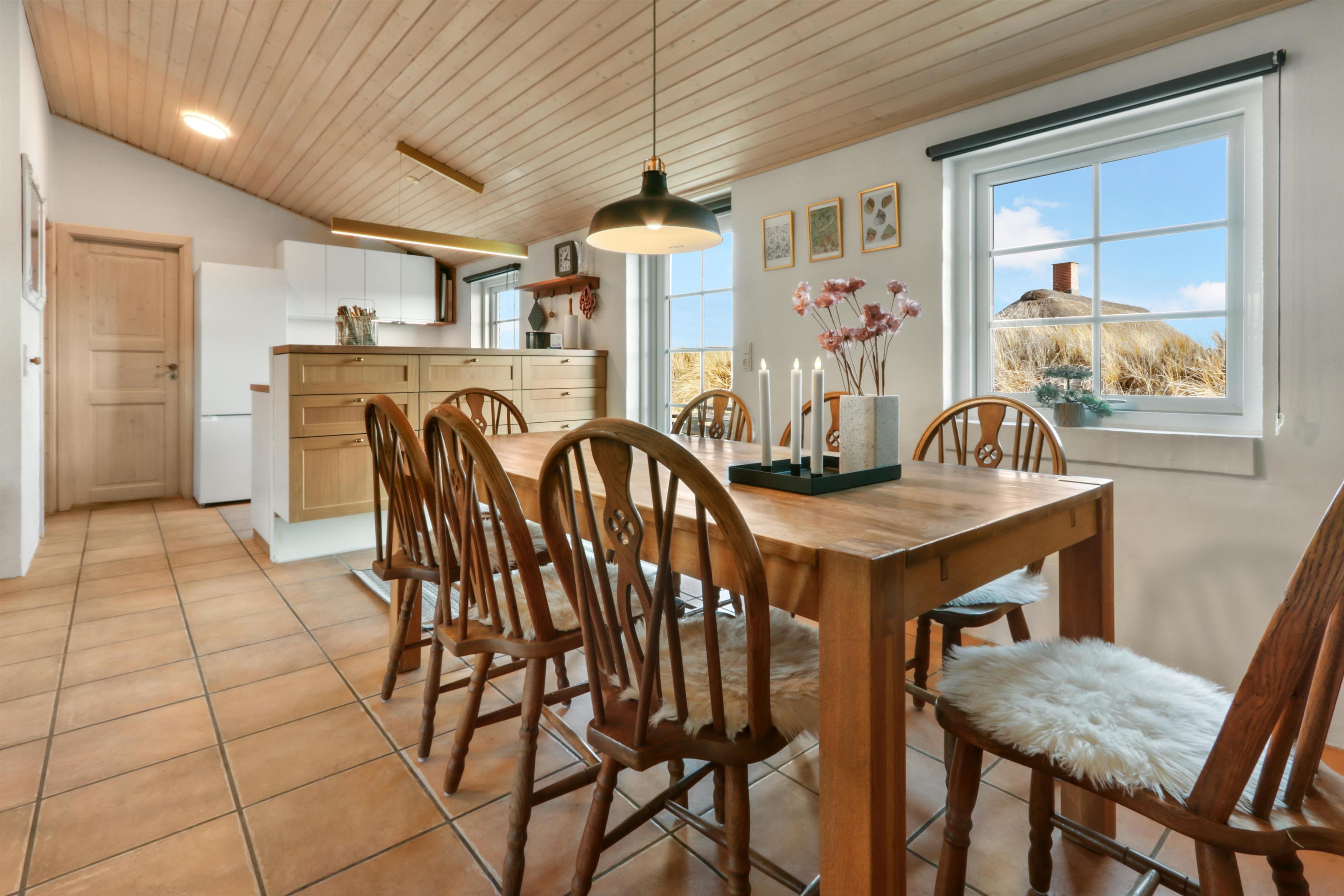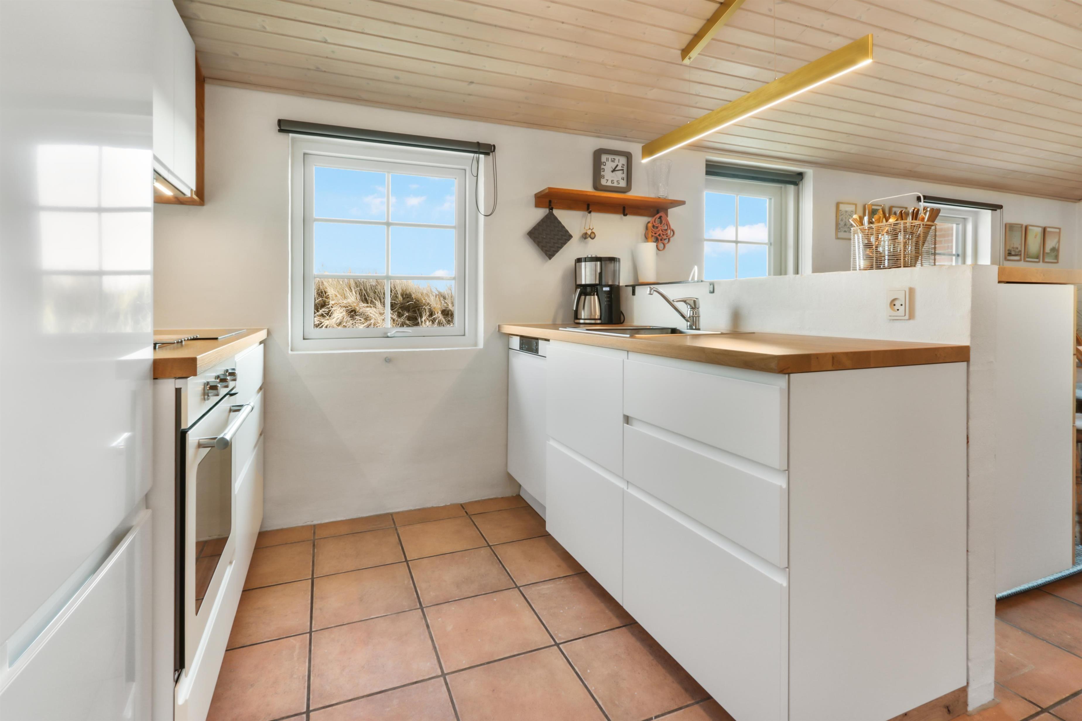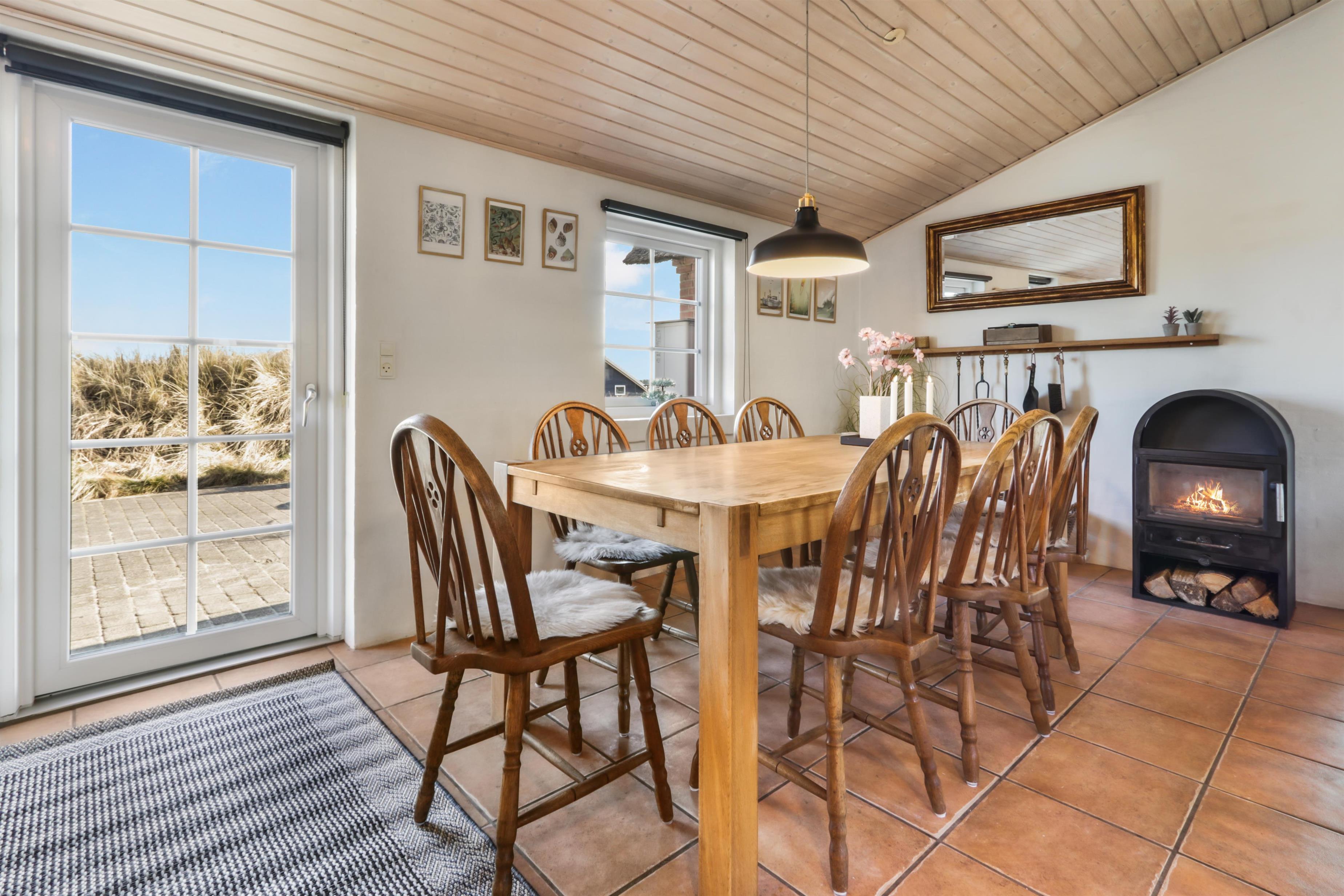 Med sin beliggenhed direkte op i fredningslinien og med egen sti til stranden ligger dette feriehus helt perfekt for dem, som vil bo så tæt som muligt på Vesterhavet. Husets har flere terrasser, en mod øst, en mod syd og en mod vest, så der er altid mulighed for at finde et læsted og nyde solen. Der er selvfølgelig havemøbler, solvogne og grill til huset. Den vestvendte terrasse ligger næsten helt ugeneret. Der er gynger til børnene. Vil man ud og opleve noget i området, er der ikke langt til Jyllands Akvariet i Thyborøn, Kystcentret og Sneglehuset, desuden kan man i Thyborøn stadig opleve et pulserende havnemiljø og shoppingmulighederne er også rigtig gode. Her har du mulighed for at købe friske fisk, som kan hjemtages og tilberedes enten i køkkenet eller på grillen udenfor på terrassen.
