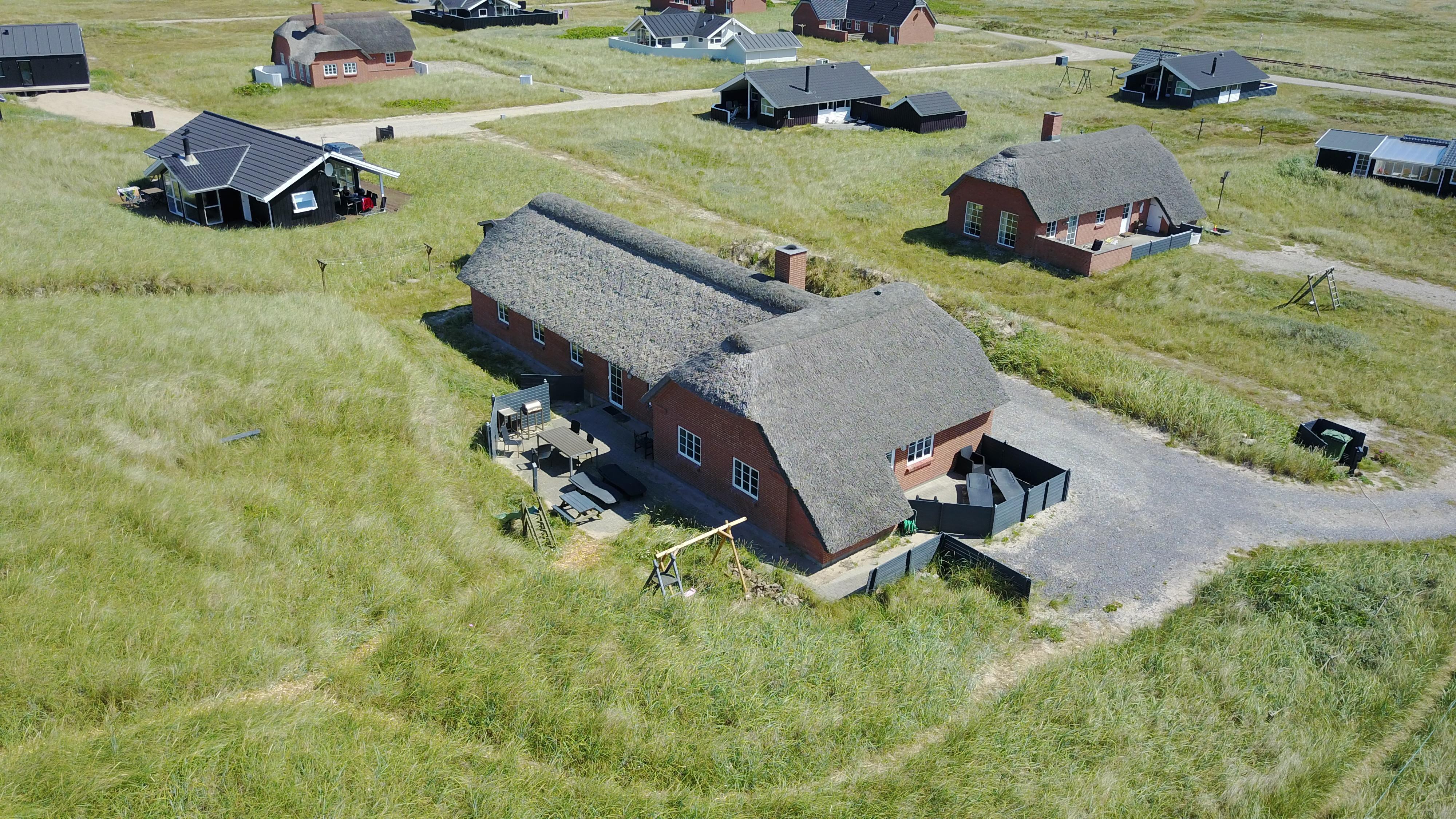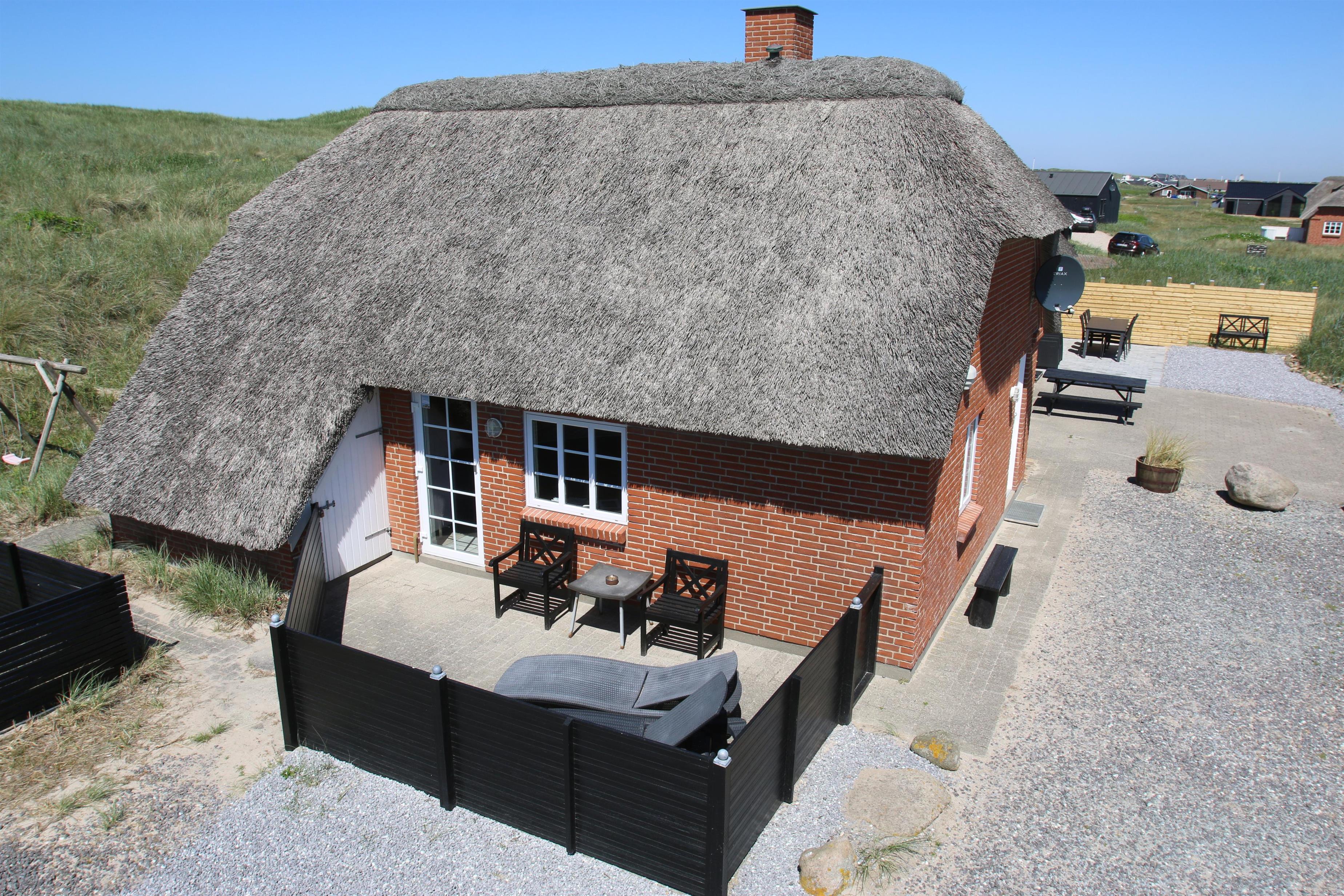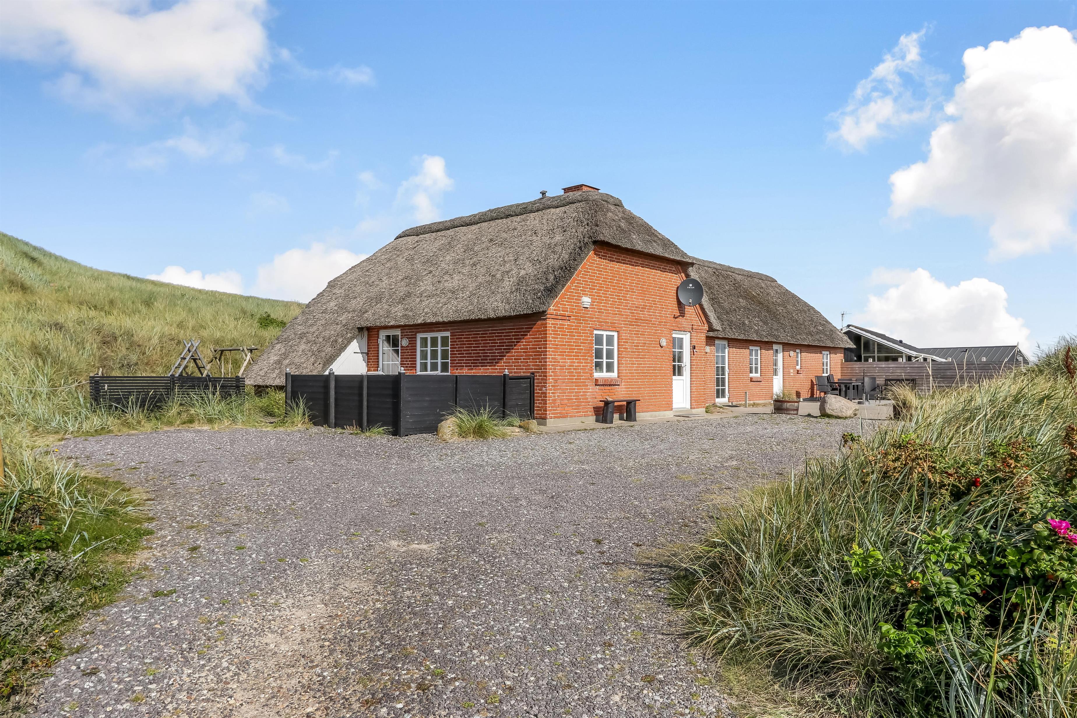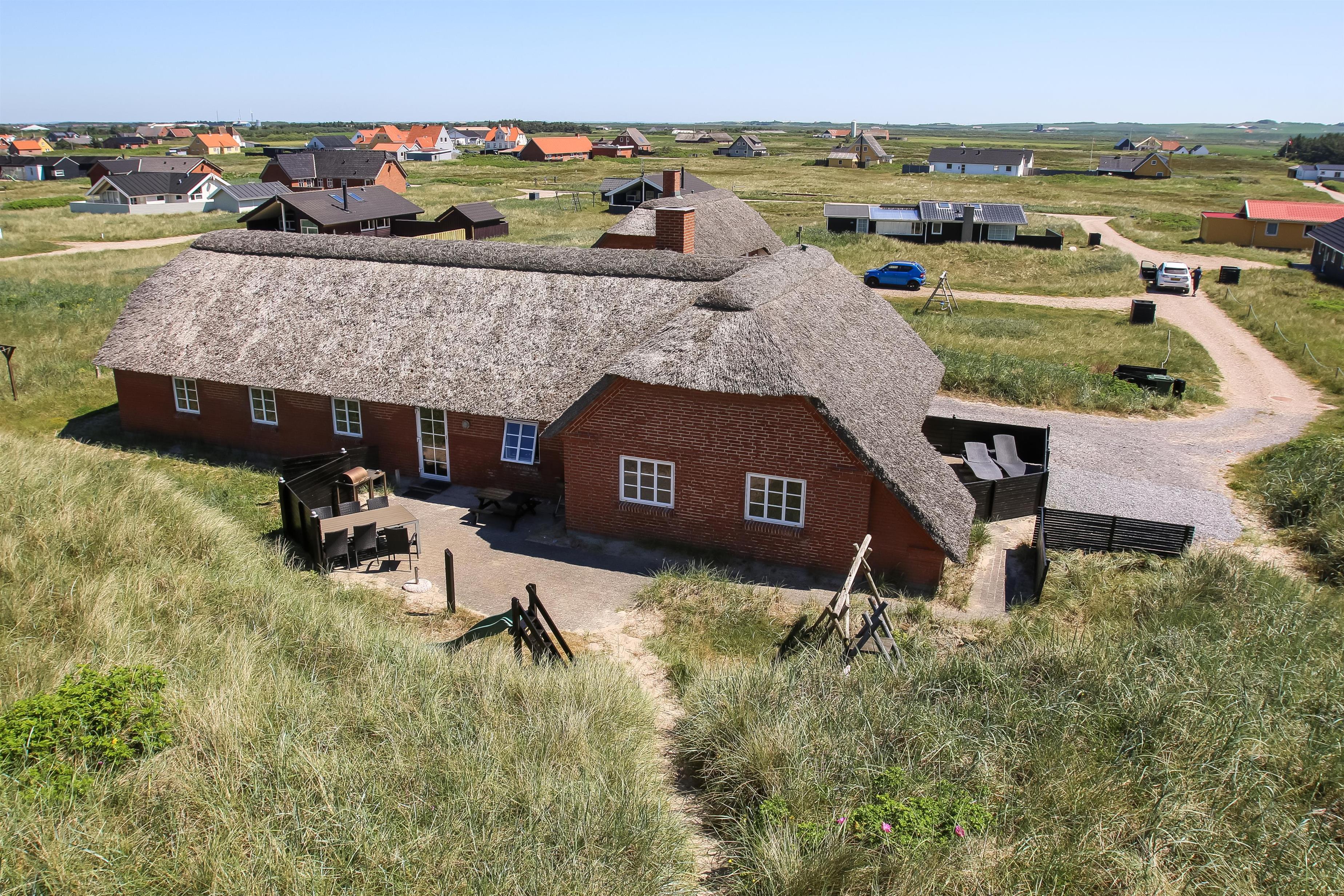 Bygget helt op til fredningslinien og i første klitrække og som det sidste hus på vejen ligger dette flotte og velholdte, stråtækte feriehus med egen pool. Huset er komfortabelt indrettet og meget velegnet også til 2 familier (4 voksne og 4 børn). 2 husdyr er tilladt. Gratis internetadgang.