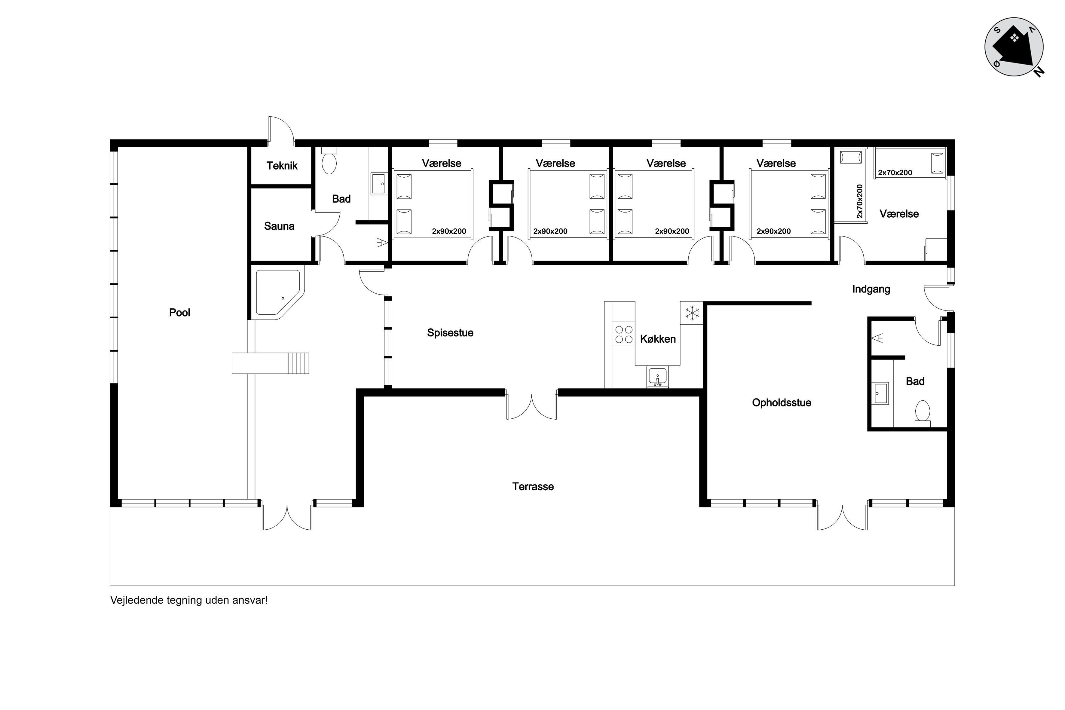 Dette poolhus på Hermodsvej 13 i Vrist, er perfekt til familier eller grupper på op til 14 personer. Beliggende kun 450 meter fra vandet, tilbyder huset en ideel kombination af komfort og luksusriøse faciliteter, hvilket gør det til det ideelle tilflugtssted for både afslapning og sjov.