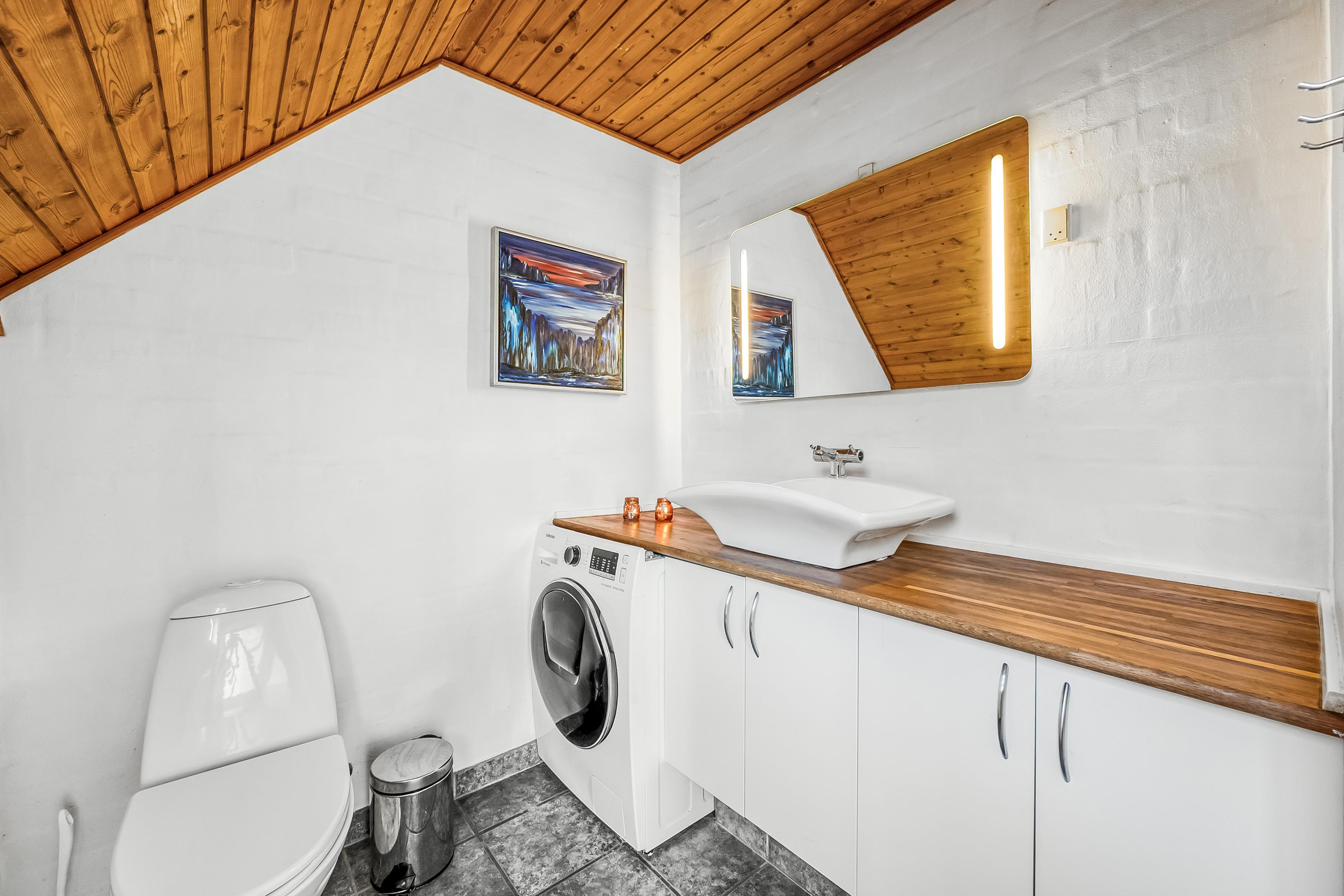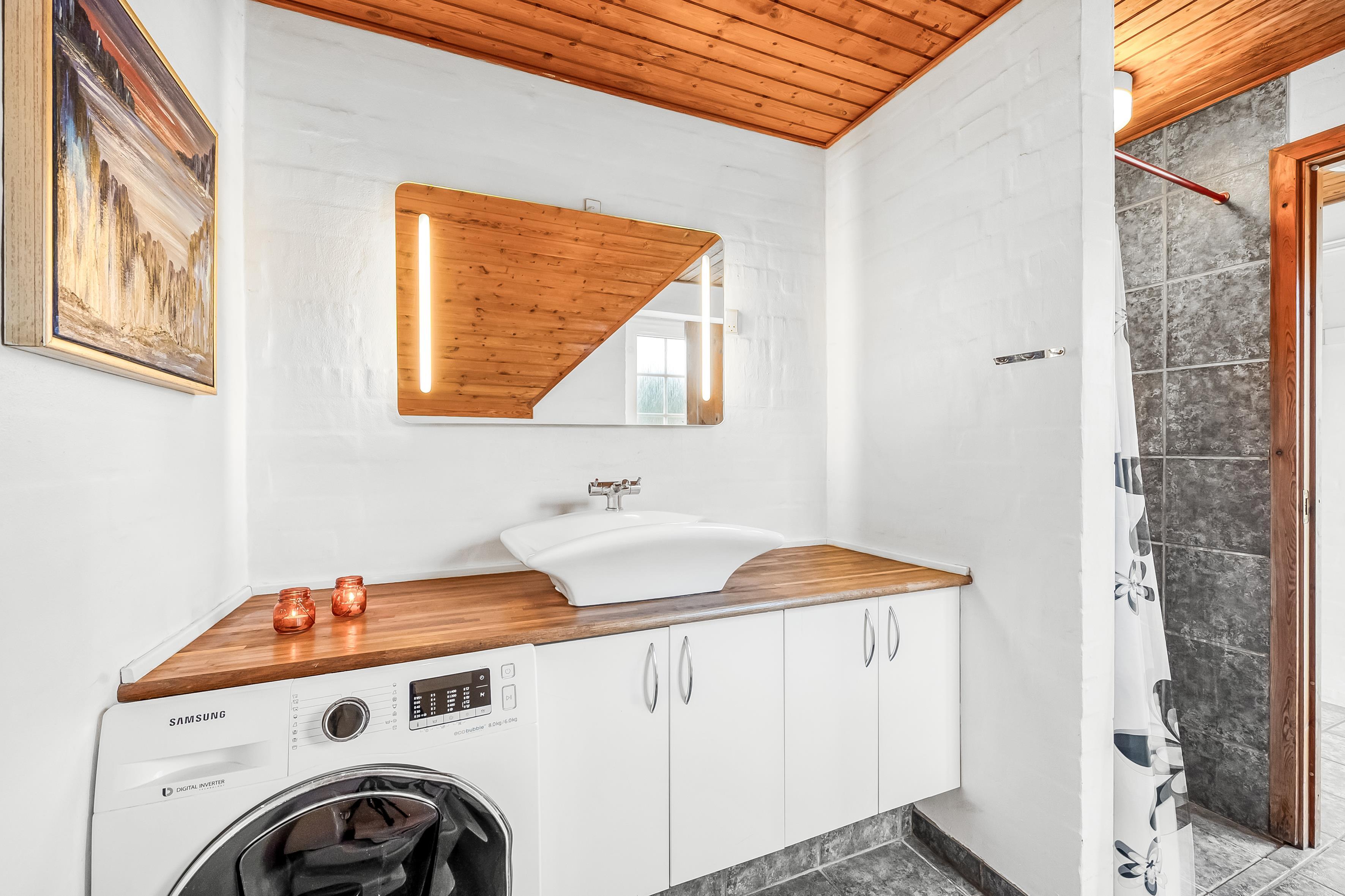 Huset er udstyret med 2 badeværelser med toilet, håndvask og bruseniche, samt har gulvvarme for ekstra komfort. I stuen kan gæsterne samles omkring tv'et, der tilbyder både dansk og tysk TV, eller nyde den gratis trådløse internetforbindelse. Køkkenet er fuldt udstyret med moderne apparater, herunder en mikrobølgeovn, ovn, keramisk komfur, opvaskemaskine, vaskemaskine, køleskab og en fryser med kapacitet på 60 liter, så du nemt kan forberede lækre måltider til hele gruppen.