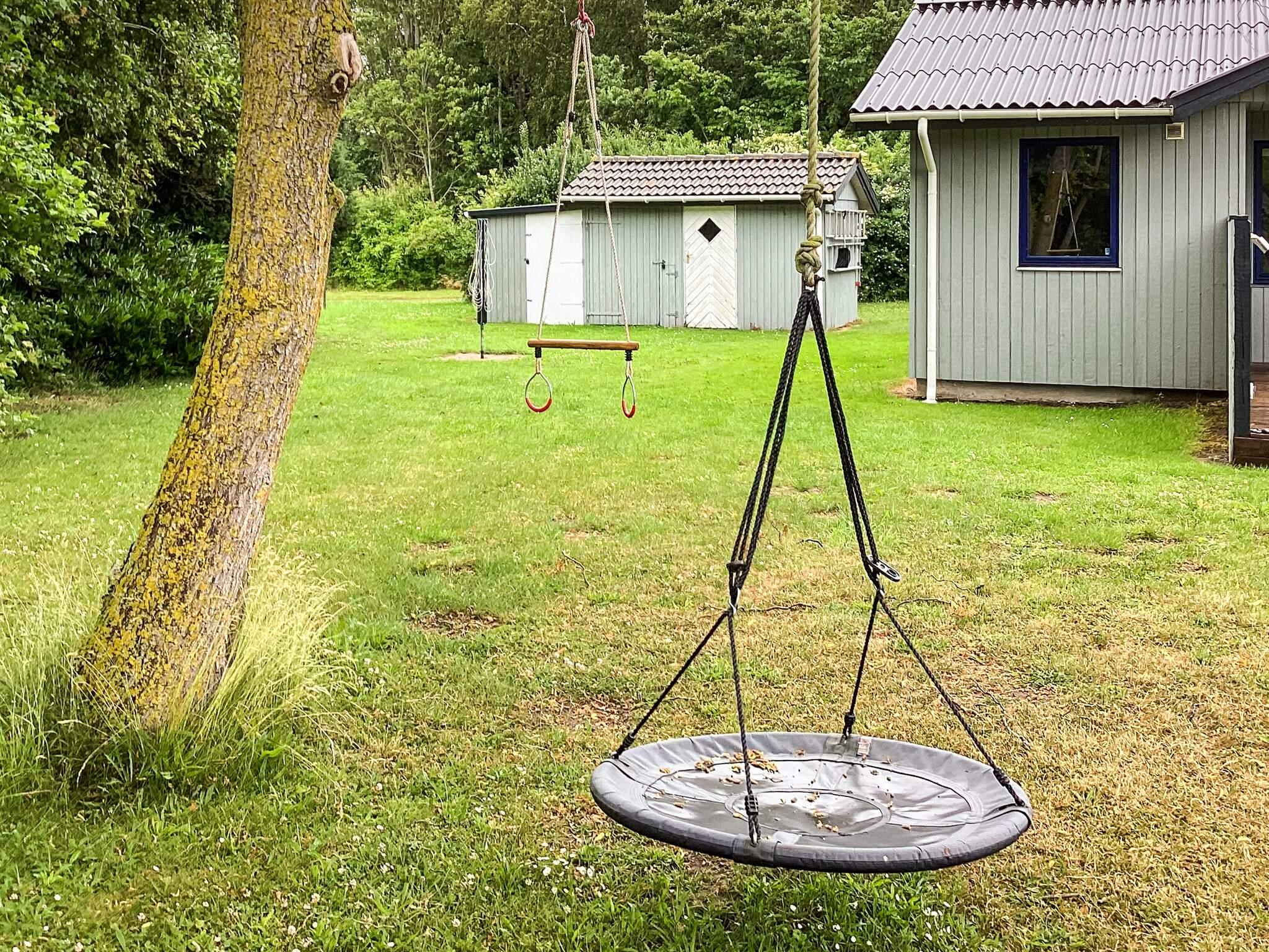 Sommerhuset er beliggende på en 1.800 m² stor grund, der giver rig mulighed for leg og leg samt solbadning. For de mindste gæster er der en stor gynge i haven, og for større børn og voksne er der dart. På terrassen er der en kulgrill, så du kan nyde aftenen efter en tur til den nærliggende strand.