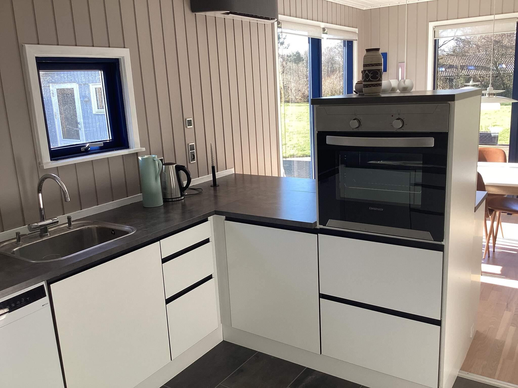 Sommerhuset har tre soveværelser, et med dobbeltseng, et med to enkeltsenge, og det sidste værelse har en køjeseng og en dobbeltseng i annekset. Det åbne køkken er udstyret med kaffemaskine, induktionskomfur, separat ovn, køleskab, og opvaskemaskine, og der er en 60-liters fryser i skuret overfor hoveddøren. Sommerhuset har to badeværelser, det ene med toilet og håndvask, det andet med toilet, håndvask, bruser, vaskemaskine og tørretumbler. I stuen er der tv med Chromecast og gratis internet samt dvd-afspiller. Fra stuen er der udgang til en semi-overdækket terrasse og stor have.
