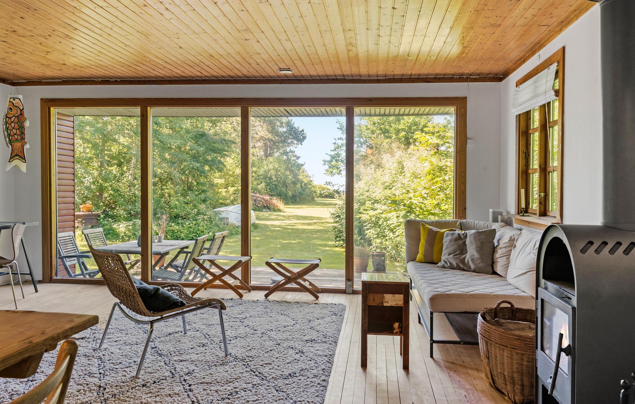 Udover hovedhuset er her sovepladser i annekset, så I kan rejse som en større flok og stadig nyde lidt privatliv, når behovet måtte opstå. Huset er nydeligt indrettet med velholdte trælofter- og gulve, åbent boligkoncept og store vinduespartier, der lader dagslyset sive ind i stuen og giver en vidunderlig udsigt til det grønne. Skulle vejret vise lidt tænder, kan I fyre op i brændeovnen og nyde dens varme knitren til madlavningen i det veludstyrede køkken og aftenhyggen i sofahjørnet, mens I lægger planer for den kommende dag.