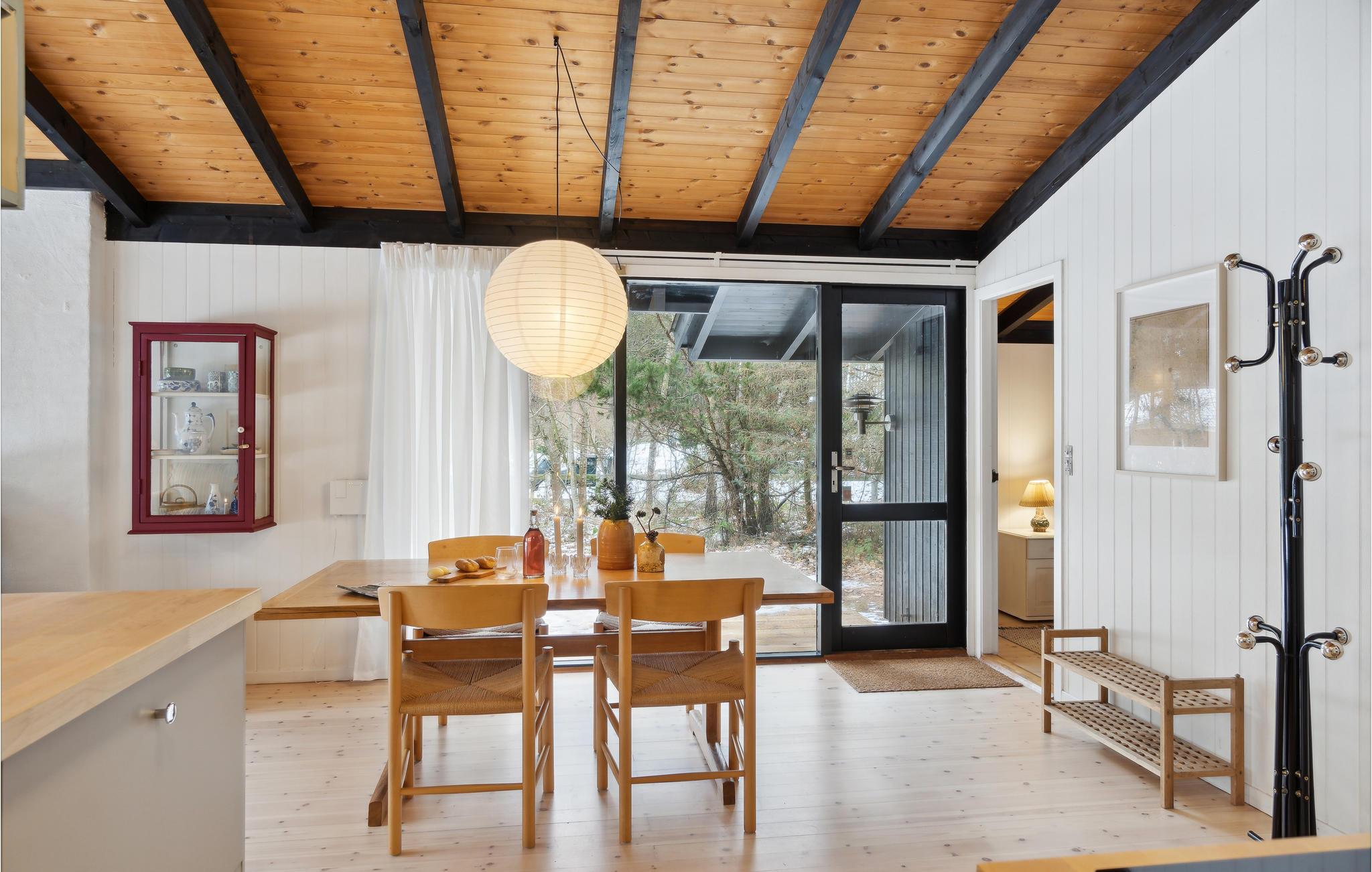 Velkommen til dette stilfulde og hyggelige træhus ved Sjællands Odde. Sammen med et vennepar eller jeres lille familie vil I hurtigt føle jer hjemme her og nyde udsigten gennem panoramavinduet fra stuen og spisebordet. Det smukke hus lader intet tilbage at ønske og lader jer komme helt ned i tempo og finde roen ved brændeovnen. Udenfor kan I slappe af og bade huden rynket i det lækre vildmarksbad. I kan egentlig selv bestemme, hvad dagen skal gå med, mens I solbader på terrassen eller griller sammen om aftenen.