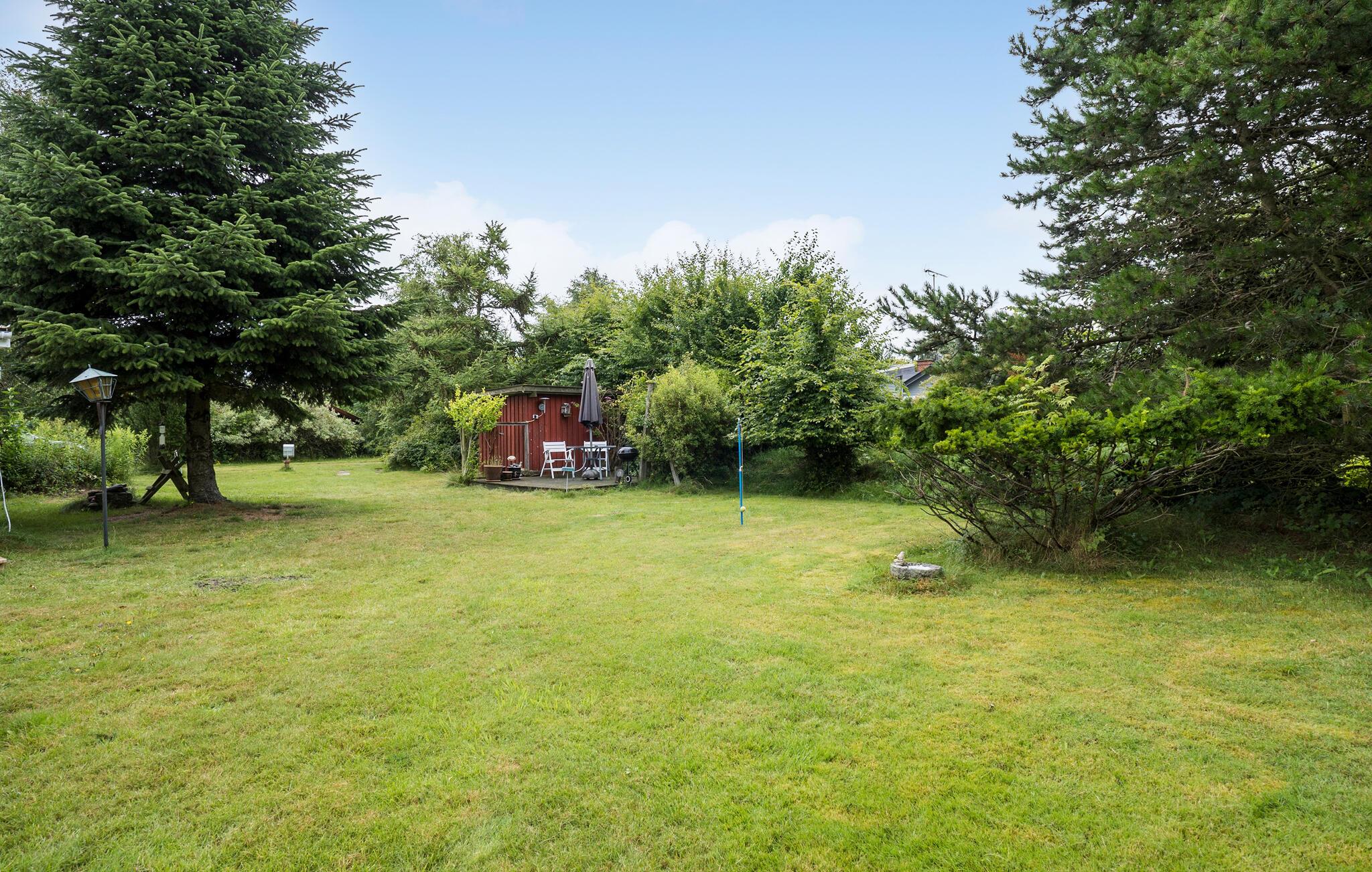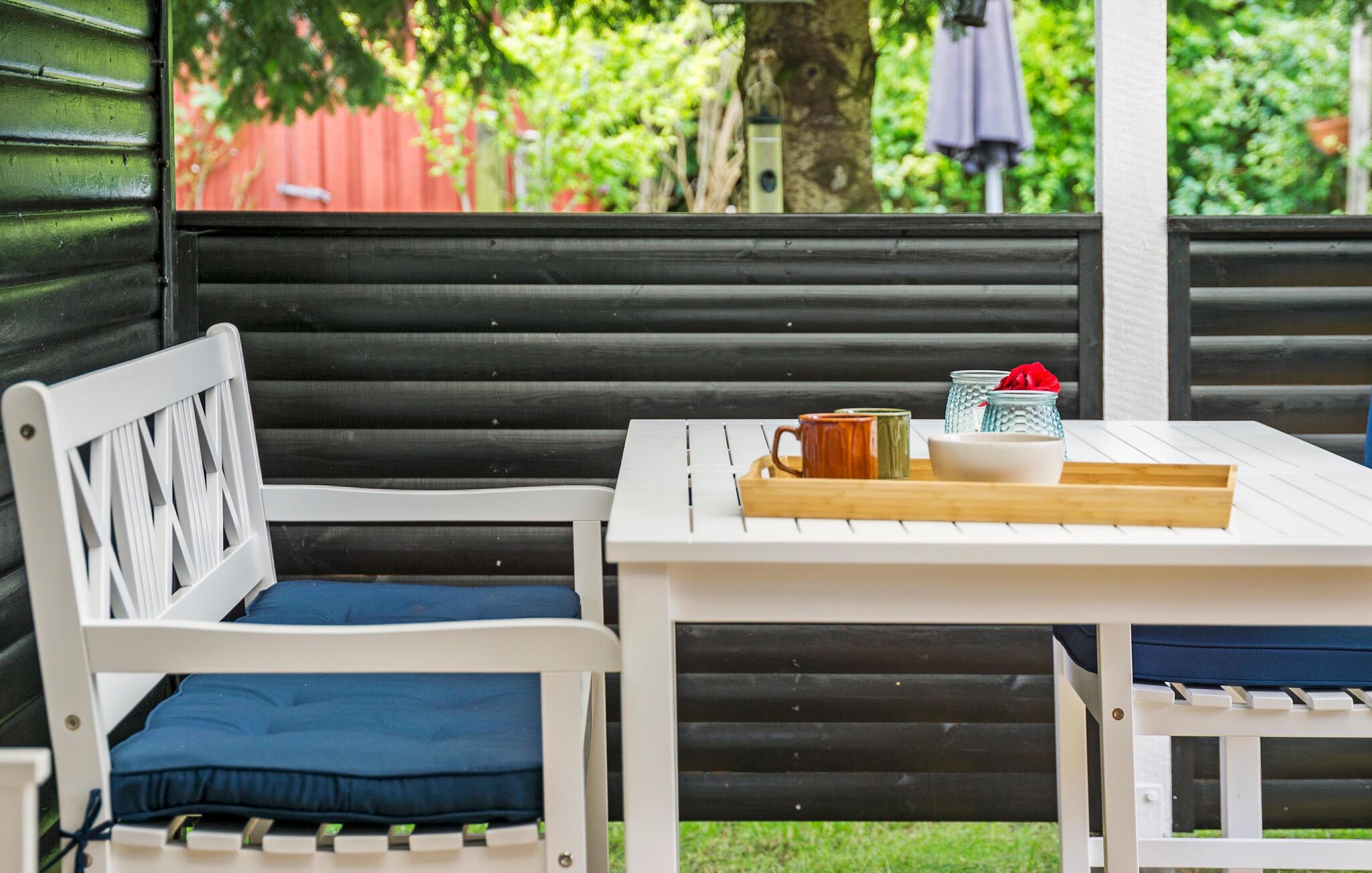 Udendørs kan I dække op til morgenbordet og nyde dagens første kop kaffe med udsigt til den store grønne have. Efter morgenmaden kan I spille badminton, tennis eller kubb. Eller slappe af i havemøblerne enten under den overdækkede del af terrassen eller under solens stråler.