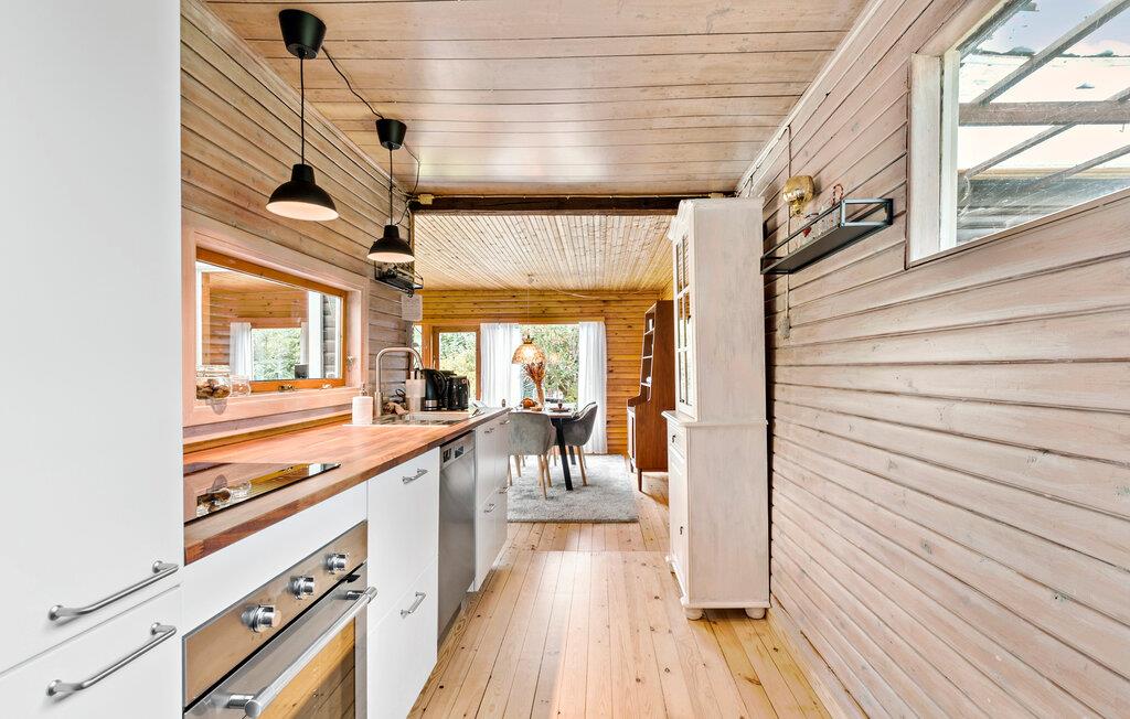 Tag på ferie i dette hyggelige træhus, som ligger et skønt og roligt sted i Sjællands Odde. Indretningen er behagelig og varm med trævægge, -gulv og -lofter. Tænd op i brændeovnen, smid jer i den bløde sofaen og sæt en god film på tv’et. I kan også samle jer om spisebordet og finde de sjove brætspil. De store vinduer lukker den skønne natur og lys ind i alrummet.