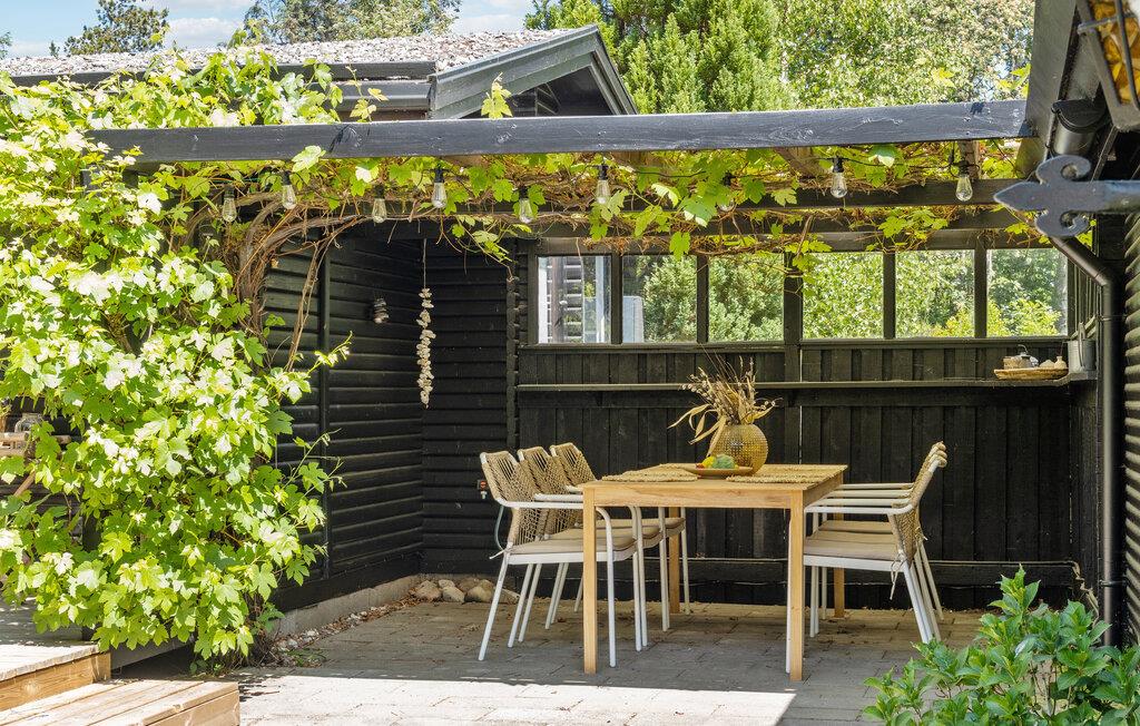 Træd ud på den store træterrasse og synk ned i de komfortable loungemøbler. Sæt jer med morgenmaden under vinstokkene og læg jer senere til rette i hængekøjen, mens børnene morer sig på trampolinen. Om aftenen kan I dække op til den store grillmiddag og nyde de lyse nætter.