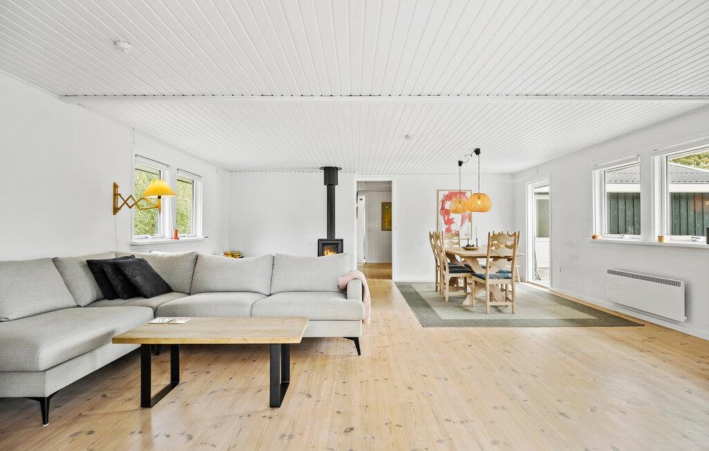 Dette hyggelige, midlertidige hjem lægger op til en afslappende ferie. Diskrete farver, en behagelig sofa og omhyggeligt udvalgte detaljer skaber en beroligende atmosfære, der øjeblikkeligt vil få jer til at føle jer hjemme. Lyt til god musik, bladr i en spændende bog eller tilbered lækre måltider i det veludstyrede køkken. Og når aftenerne bliver køligere, tænd brændeovnen og nyd den beroligende knitren fra ilden.