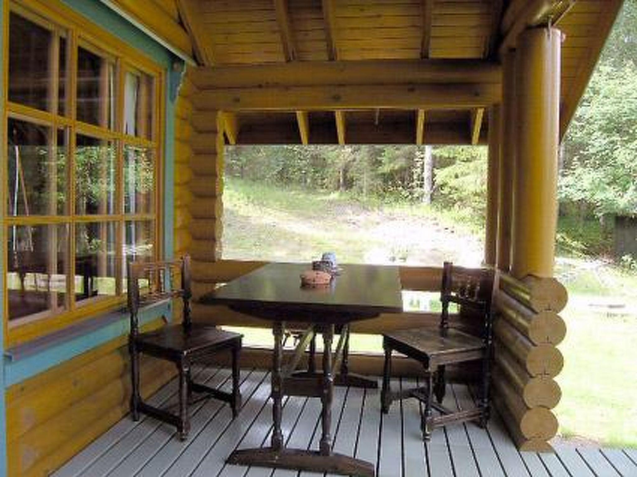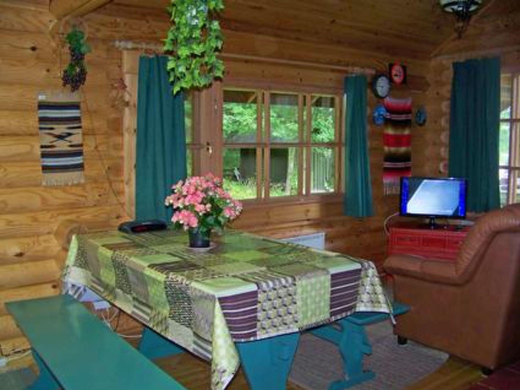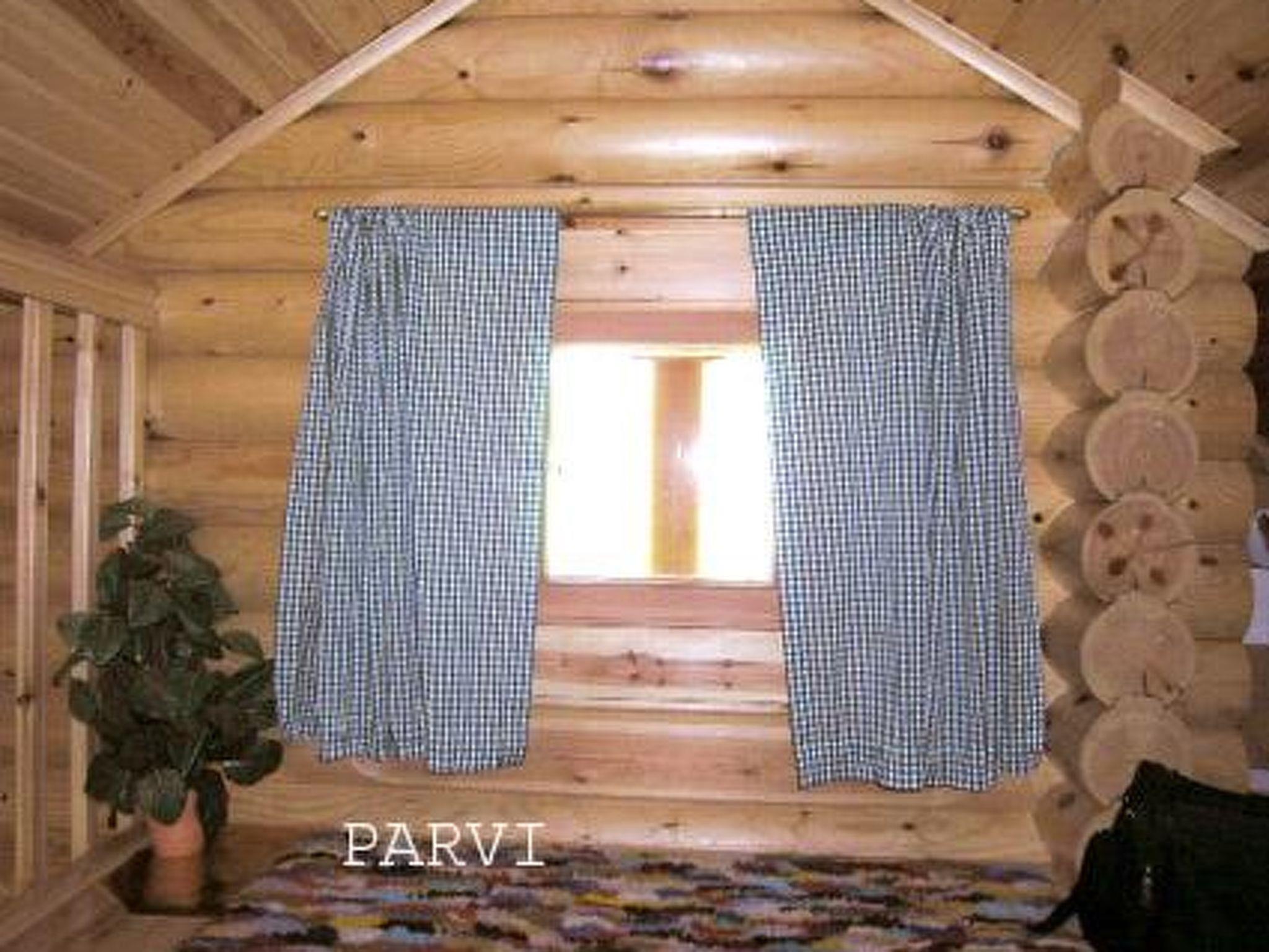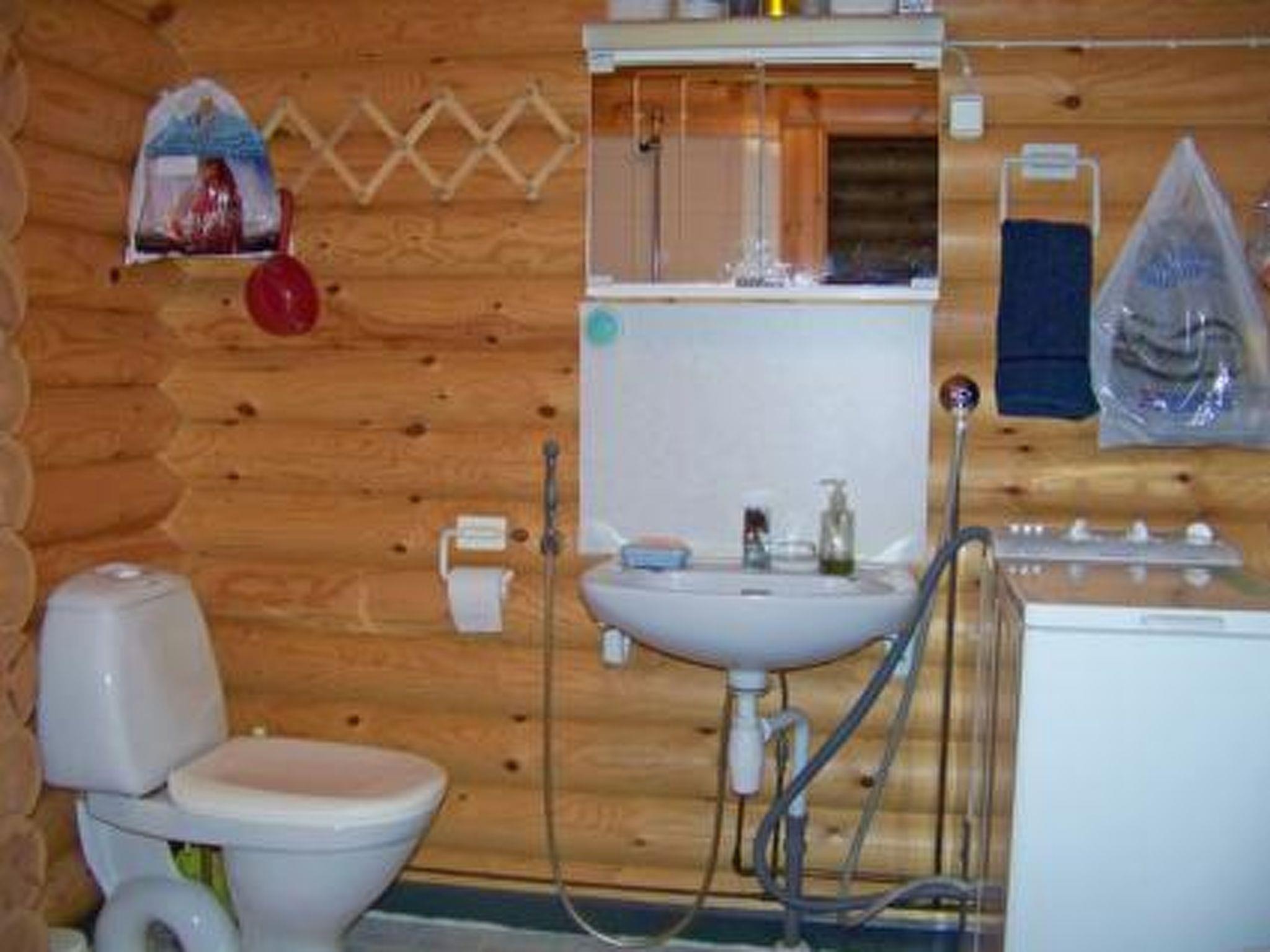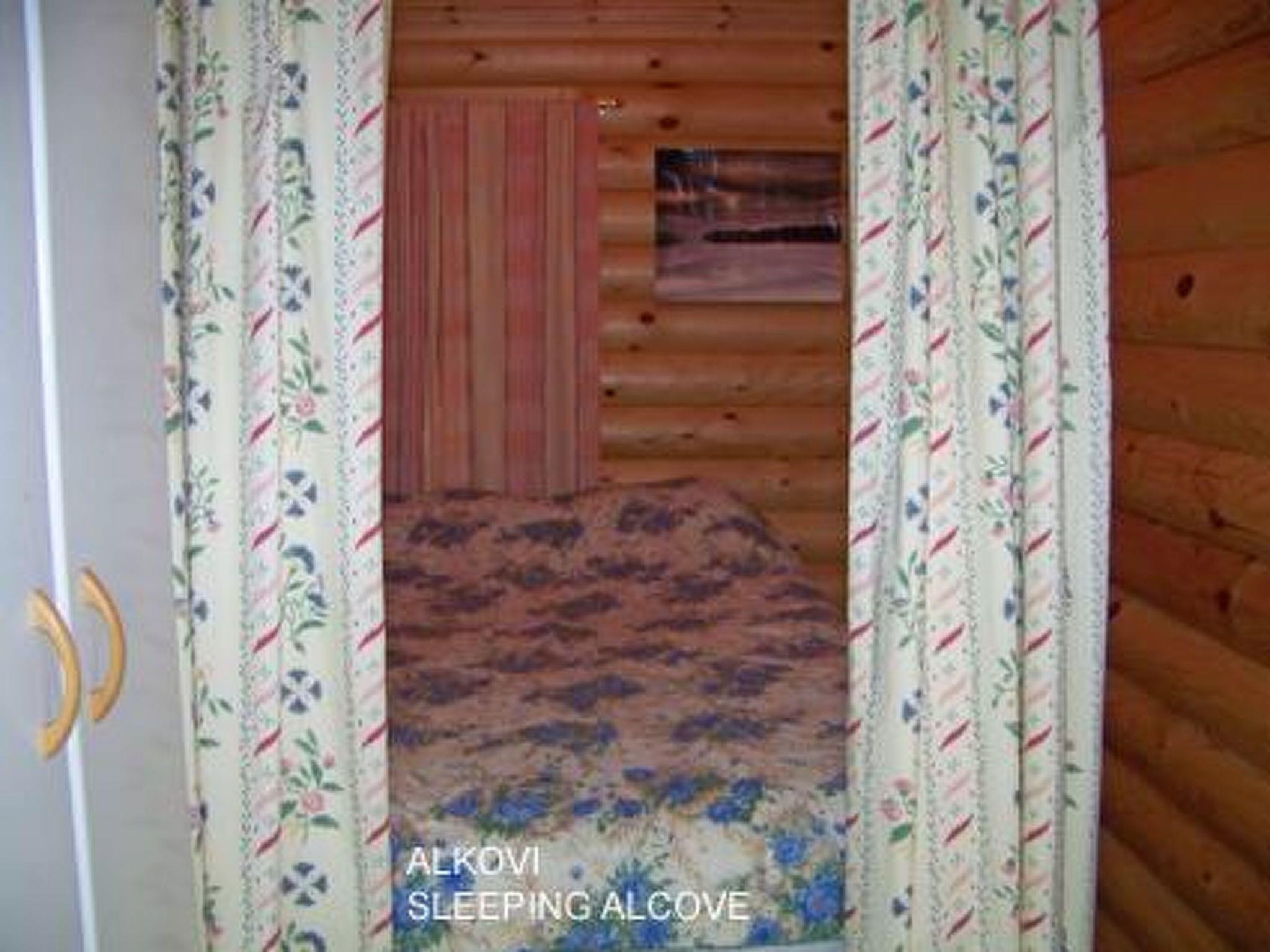 Log cottage 1996, livingroom/kitchen, sleeping alcove with 120 cm wide bed, loft (19 m²) with 2 mattresses, wash room, sauna (elect.stove) and terrace.