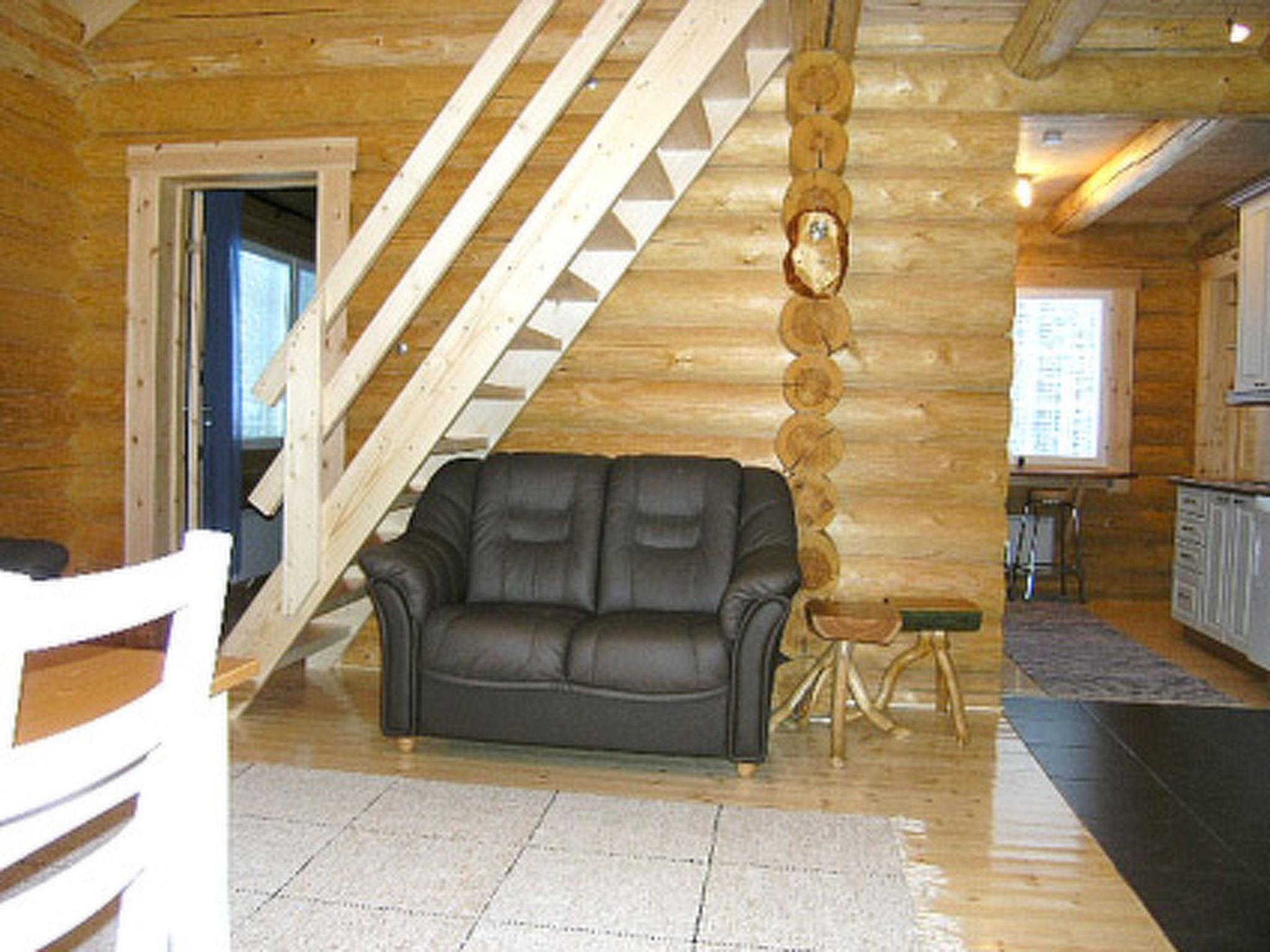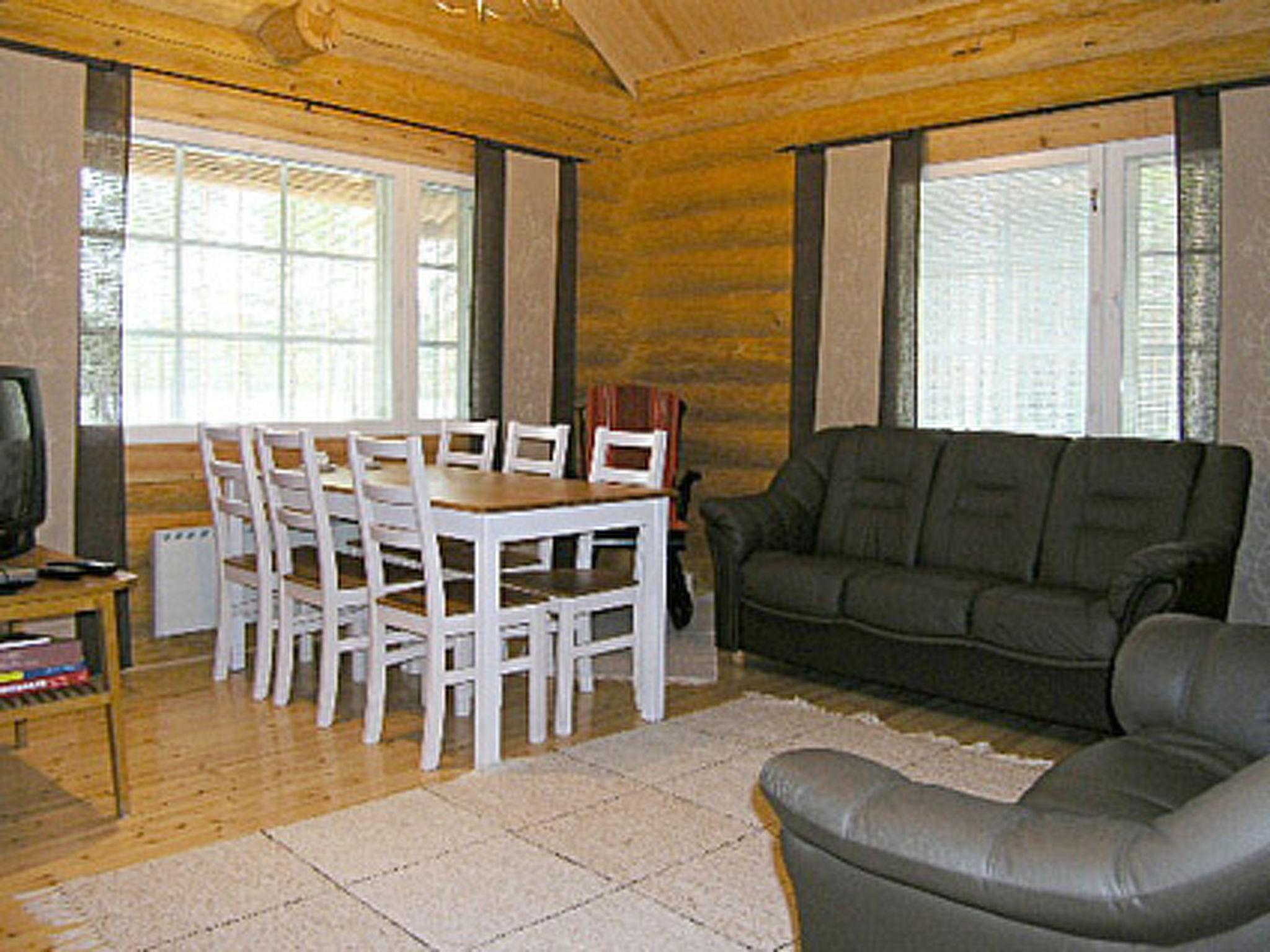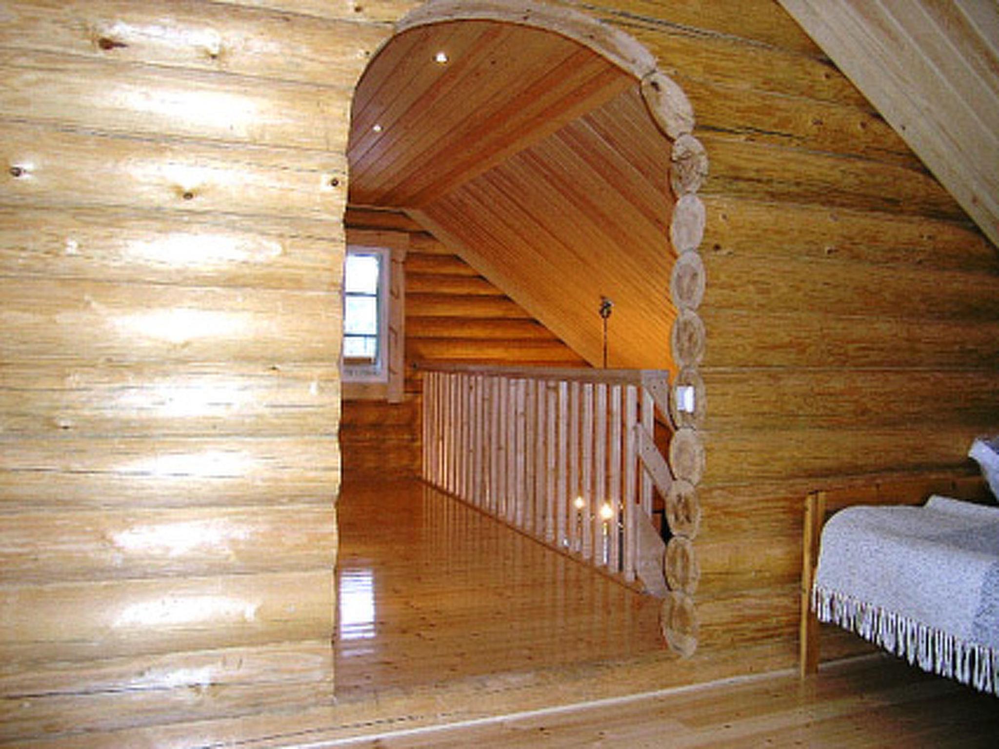 Log cottage 2005, living room/ kitchen, bedroom double bed, bedroom 2 beds, upstairs alcove double bed and 2 beds, also lounge, washroom, sauna, hall, open porch and balcony.