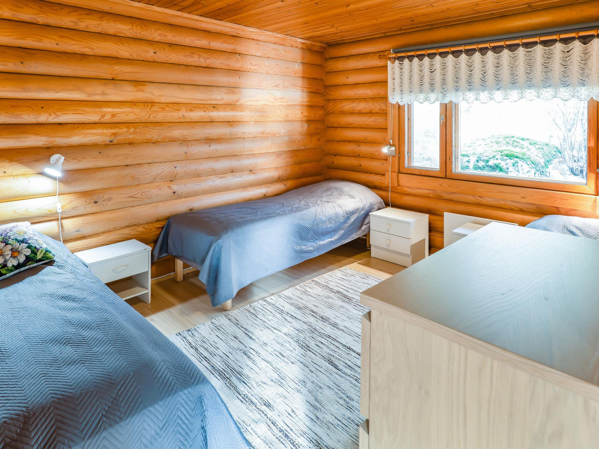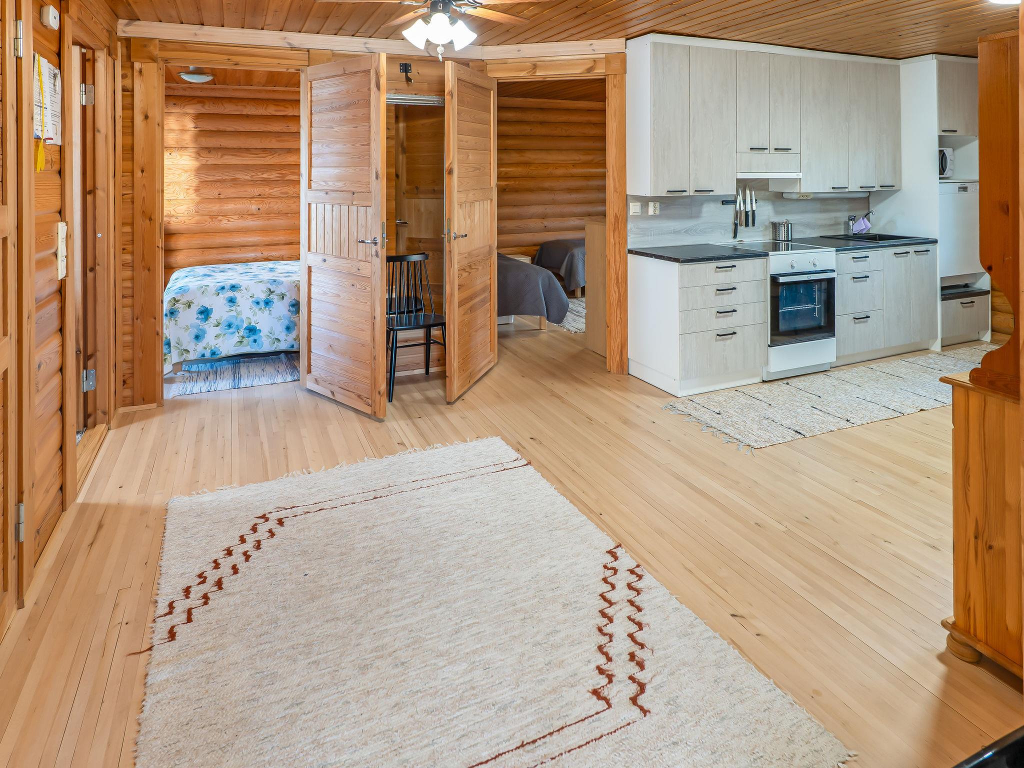 Log cabin 1999, kitchen/living room, bed room with 2 beds and bed room with 3 beds, dressing room, washroom, sauna, vestibule, covered terrace.