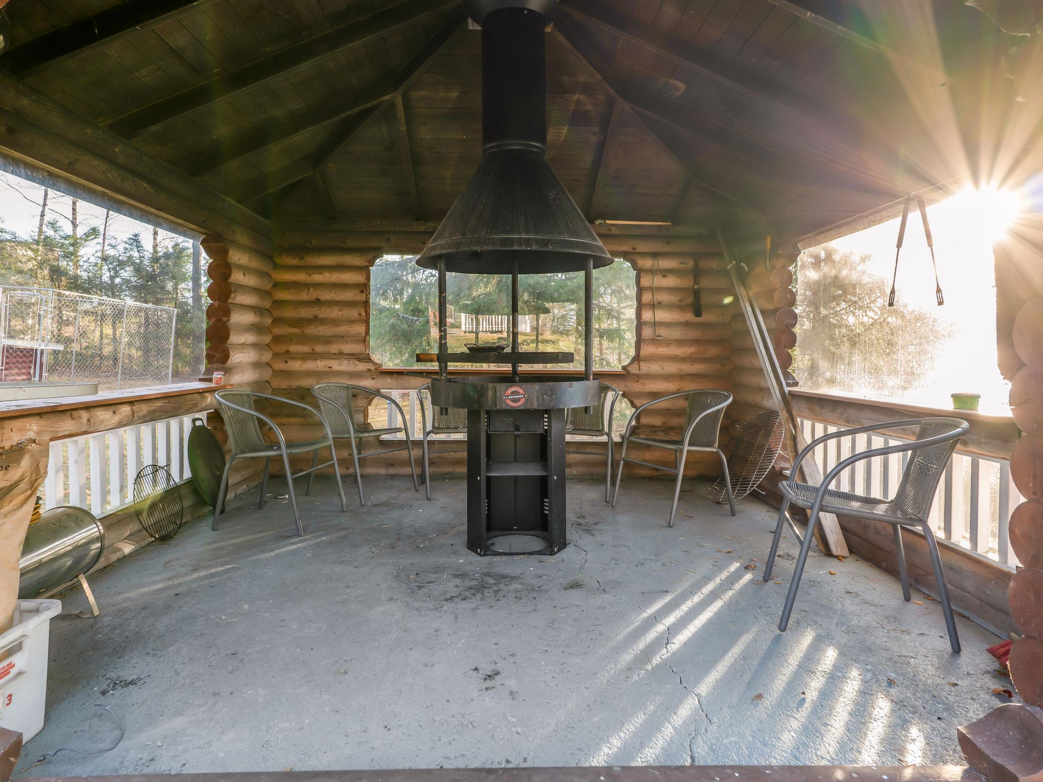 There is a woodburning barrel sauna on the shore. Water must be carried from the lake and in winter from the cottage. There is also a smoking facility in the barbecue shelter.