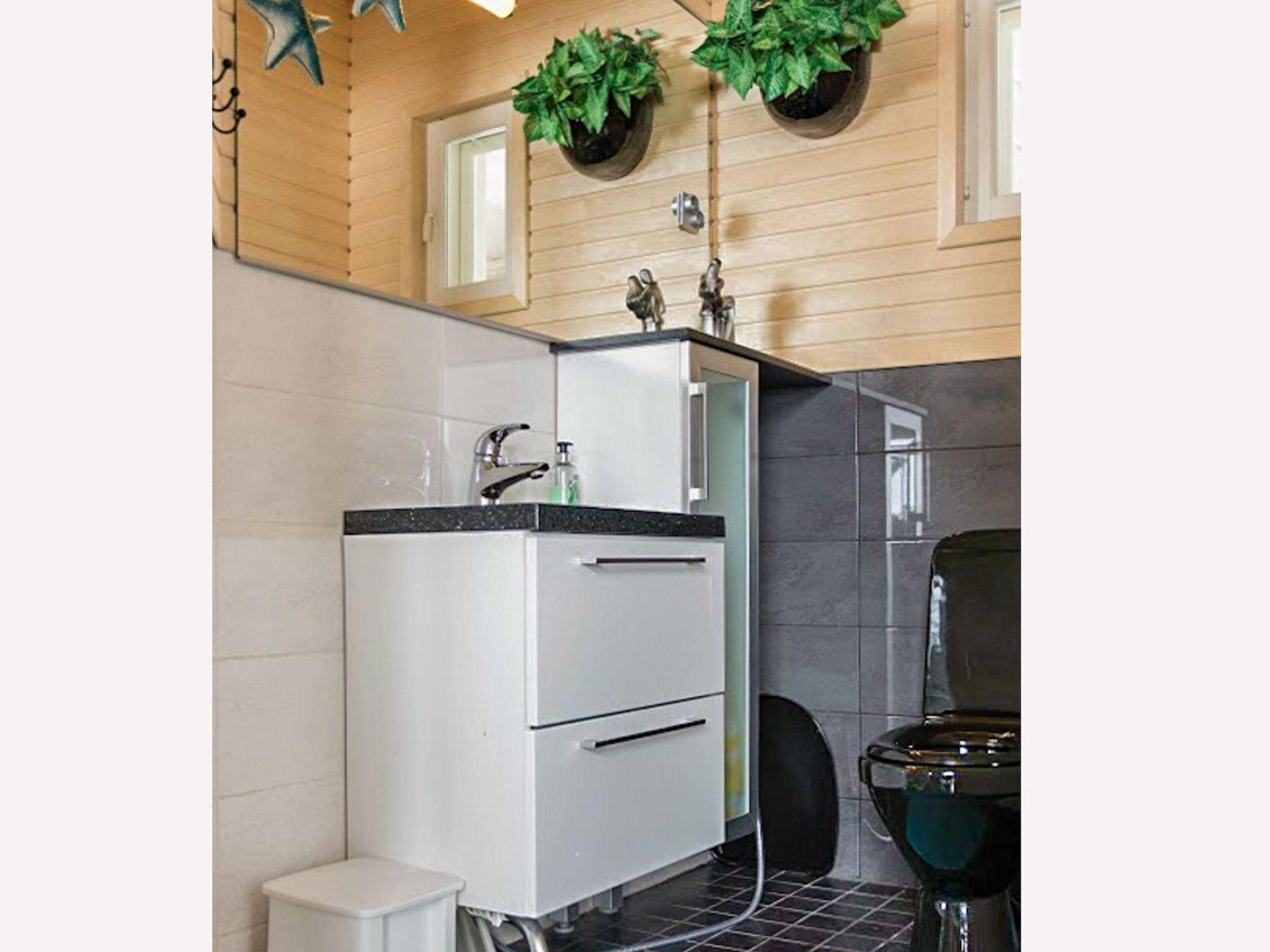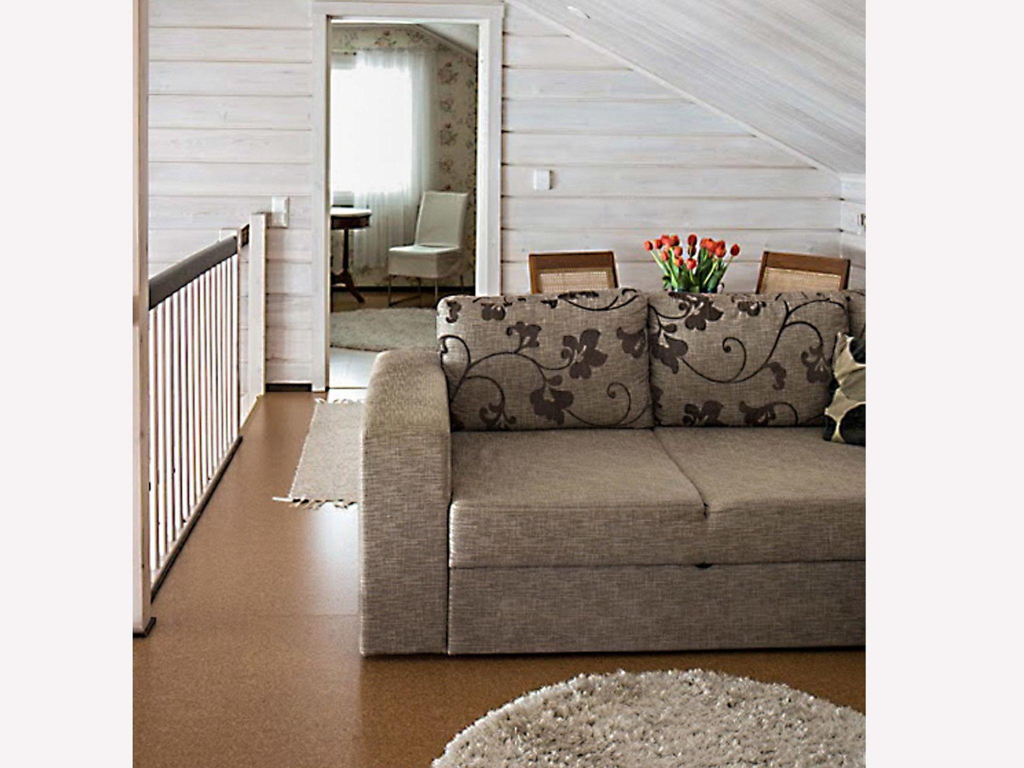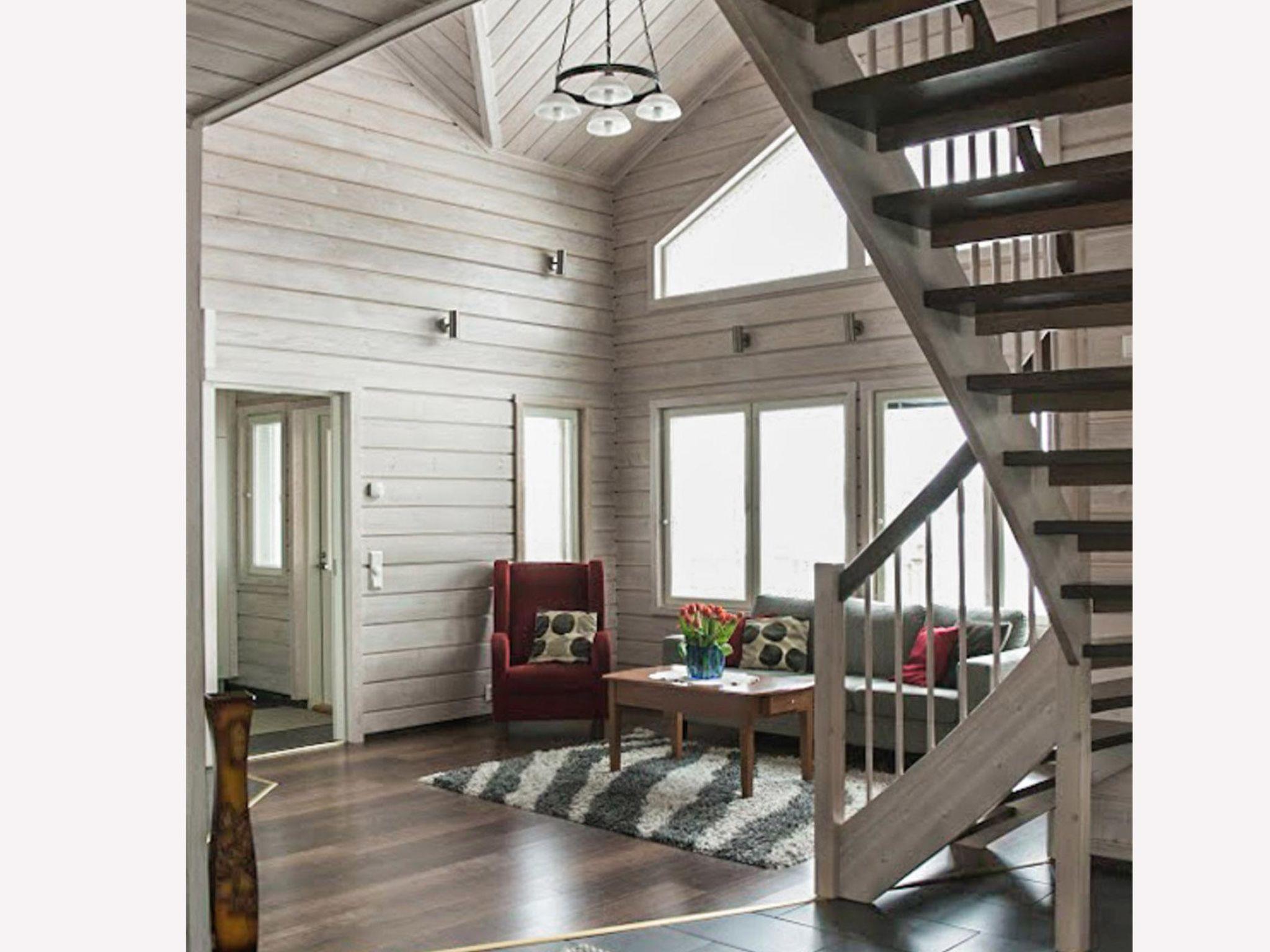 Log panel villa built in 2012, downstairs combined kitchen-living room, vestibule, bedroom with double bed, bedroom with double bed, washing room, sauna, utility-/dressing room, terrace 40 m². The downstairs is suitable also for disabled.