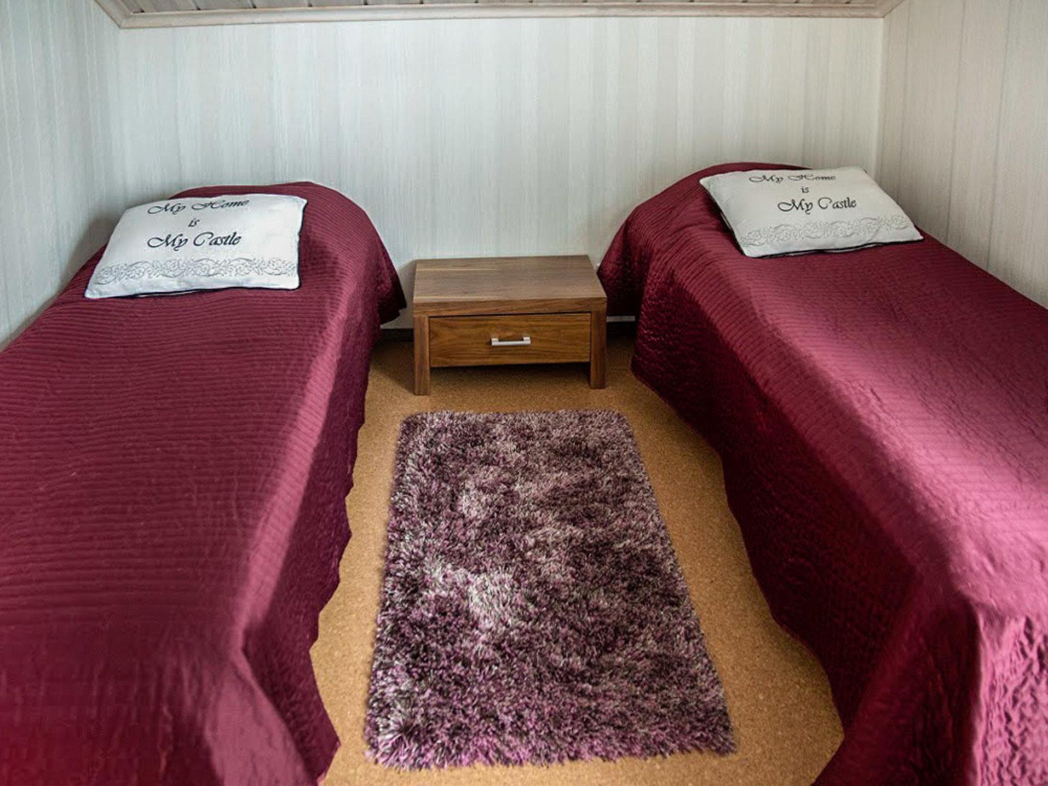 Upstairs: lounge, bedroom with double bed, bedroom with 2 beds and own toilet.
