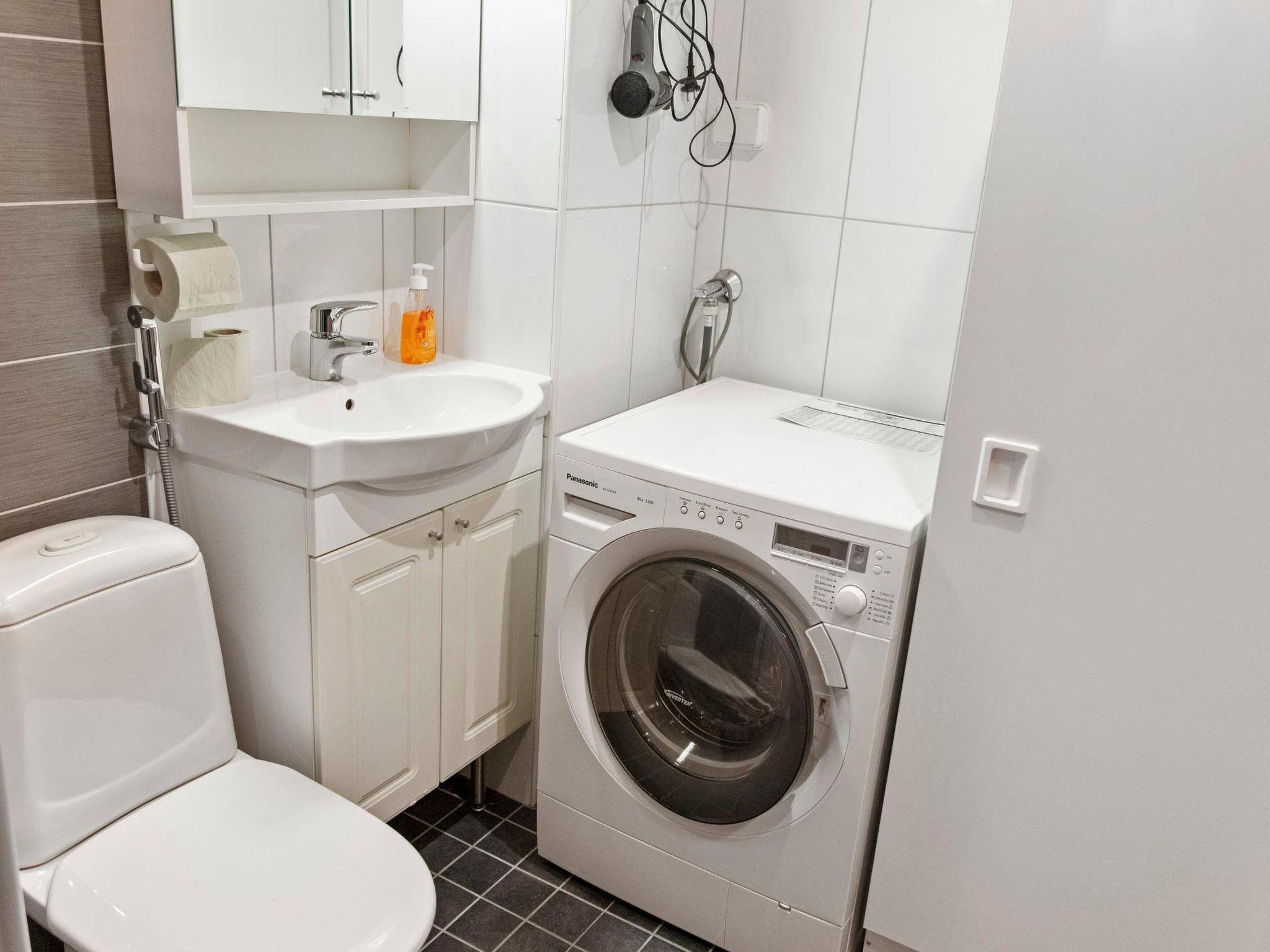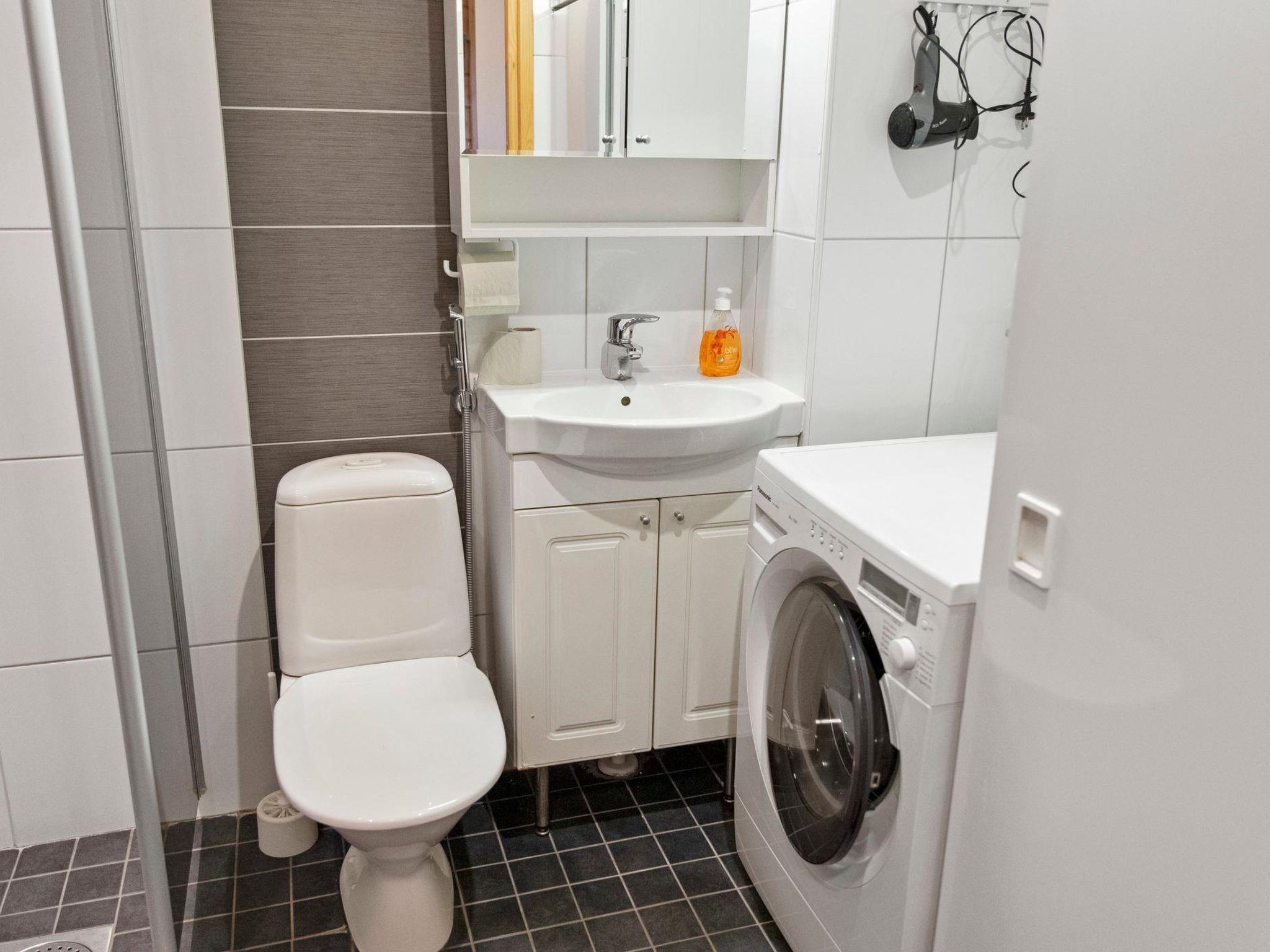40km north of Kolari, Äkäslompolojärvi 200m, beach 2km, holiday apartment finished in february 2011(1st floor of building), 1 bedroom with double bed, kitchen, with retractable sofa bed, sauna(electric heated), bathroom/w. Ski tuning room is in the left end of the building downstairs.
