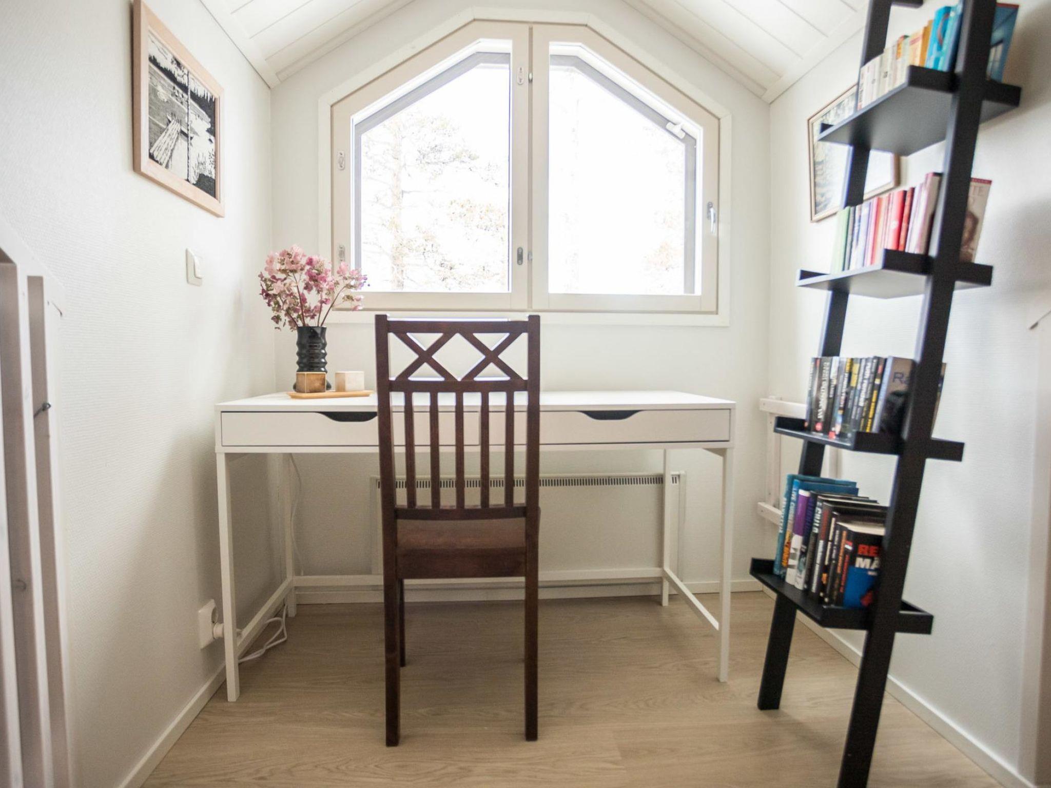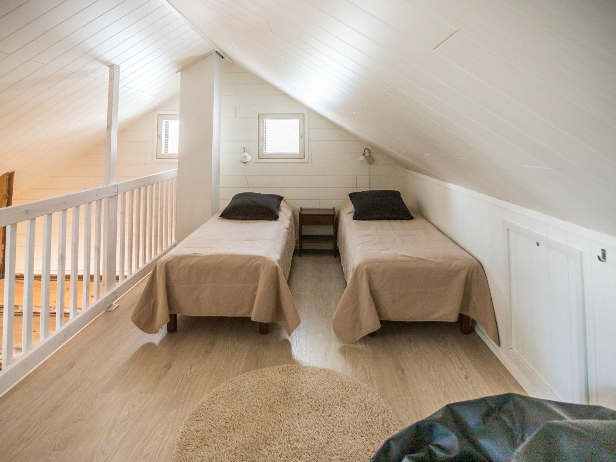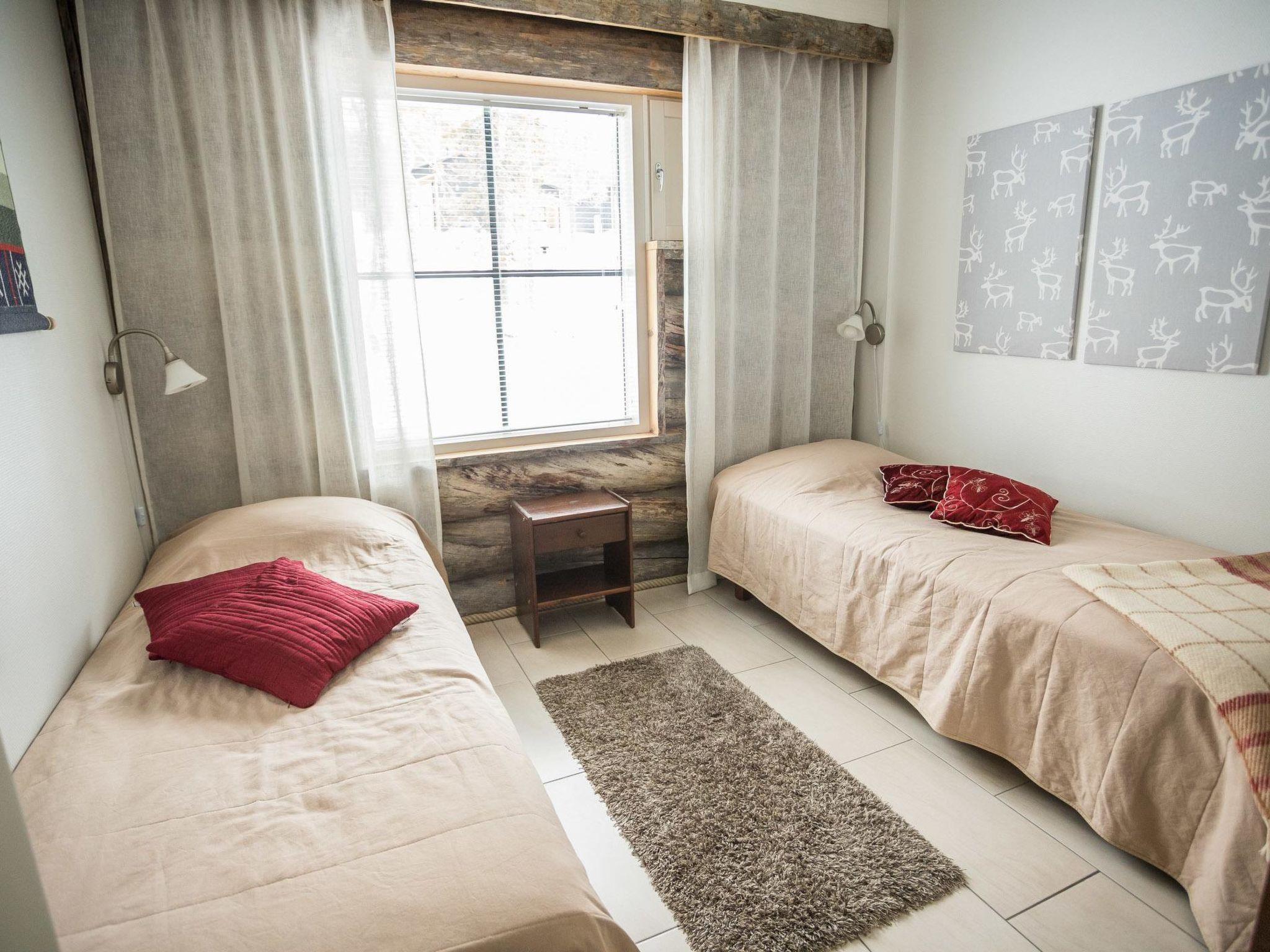 40 km north of Kolari, Lake Äkäslompolojärvi 2.5 km, swimming shore 2.5 km. Silverlog row house apartment 2012. Area 78 m² of which 19 m² on the loft. Living room/kitchen, 2 bedrooms, both with 2 separate beds, in sleeping loft 2 separate beds, sauna (electric stove), 2 separete wc (another on sleeping loft). No pets allowed in apartment. Pets are prohibited for maintenance reasons. However, there have been pets in the cottage, and it is therefore not suitable for people with animal allergies. Ski maintenance room in shared use in the basement.