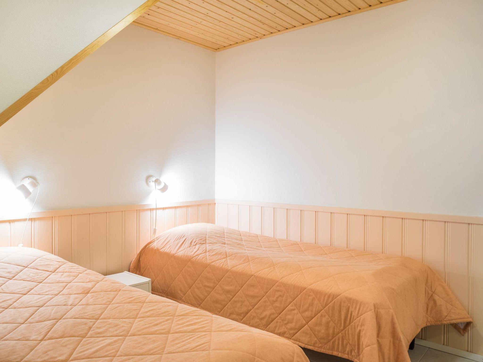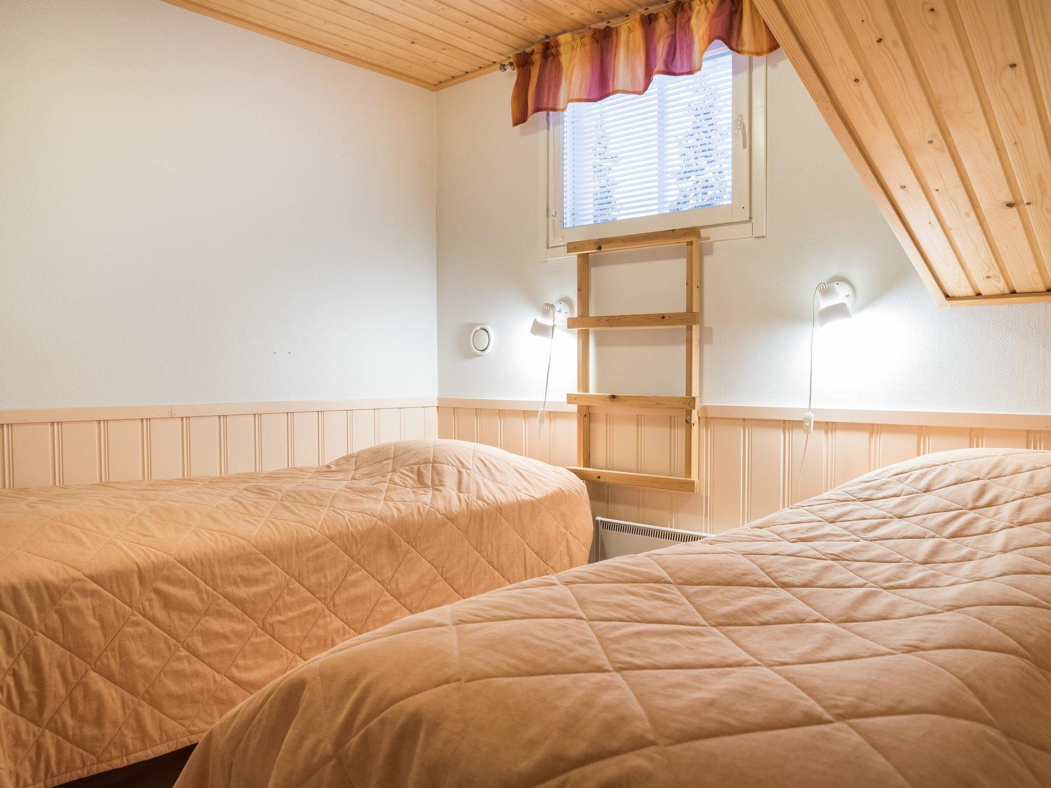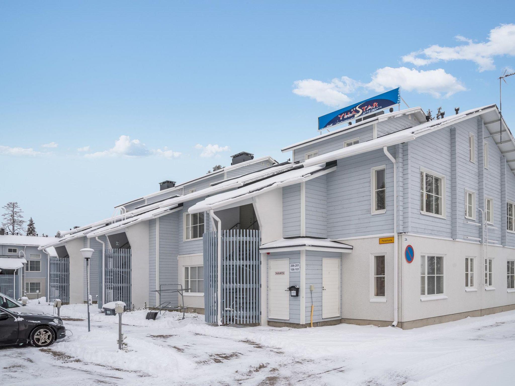 40 km north of Kolari, Lake Äkäslompolojärvi 1 km, swimming shore 1.5 km. An apartment for 4 persons in apartment hotel, build 2006, area 44 m² of which 11 m² on the loft. Livingroom/kitchenette, alcove with 2 separate beds, in livingroom a convertible sofa/bed for 2 persons, loft (11 m²) 1 bedroom with 2 separate beds, sauna (electrically heated), washroom/wc. Downstairs of Yllästar 2 is laundrette and ski careroom. NOTICE! cooking plates (no oven)