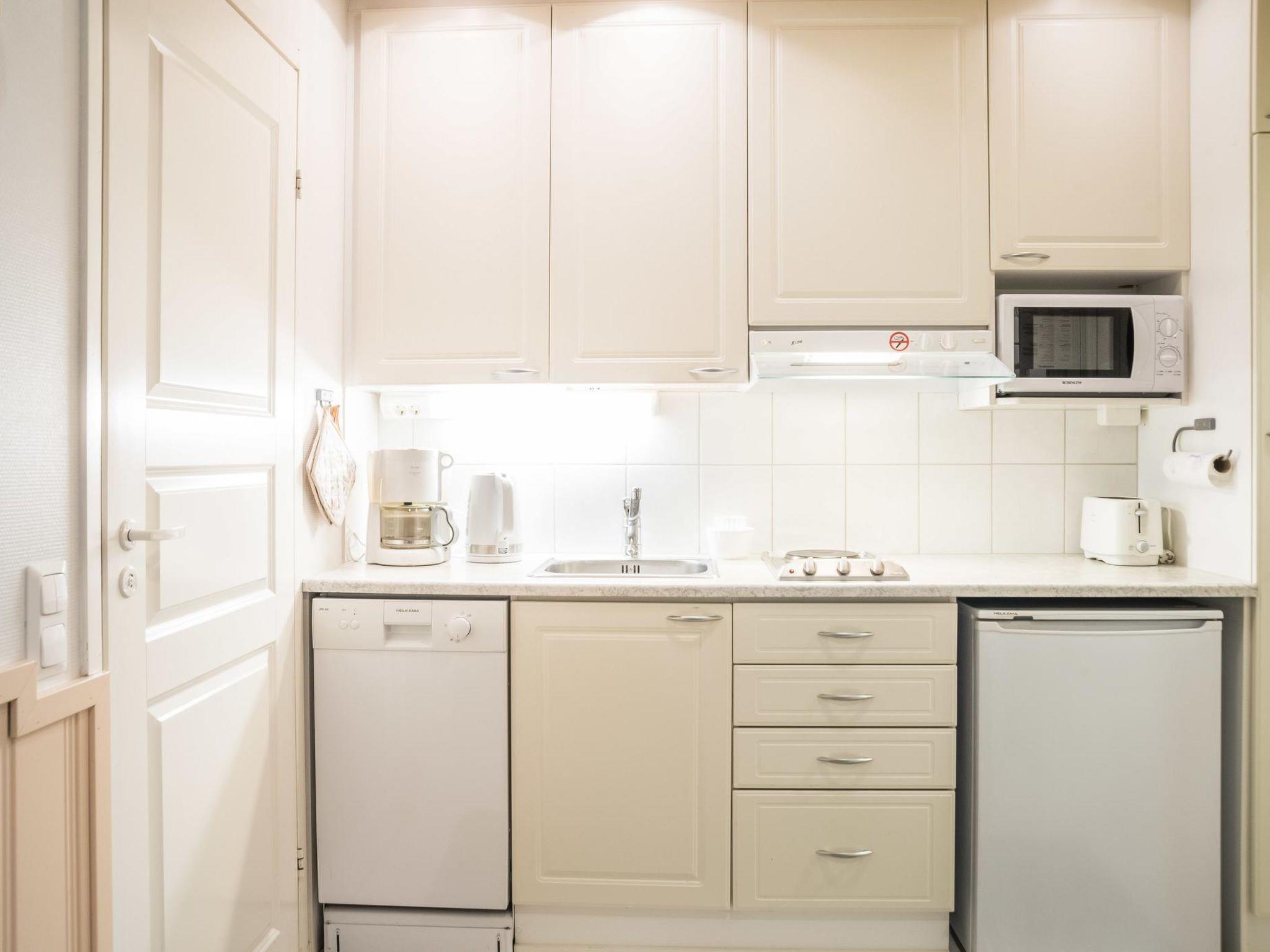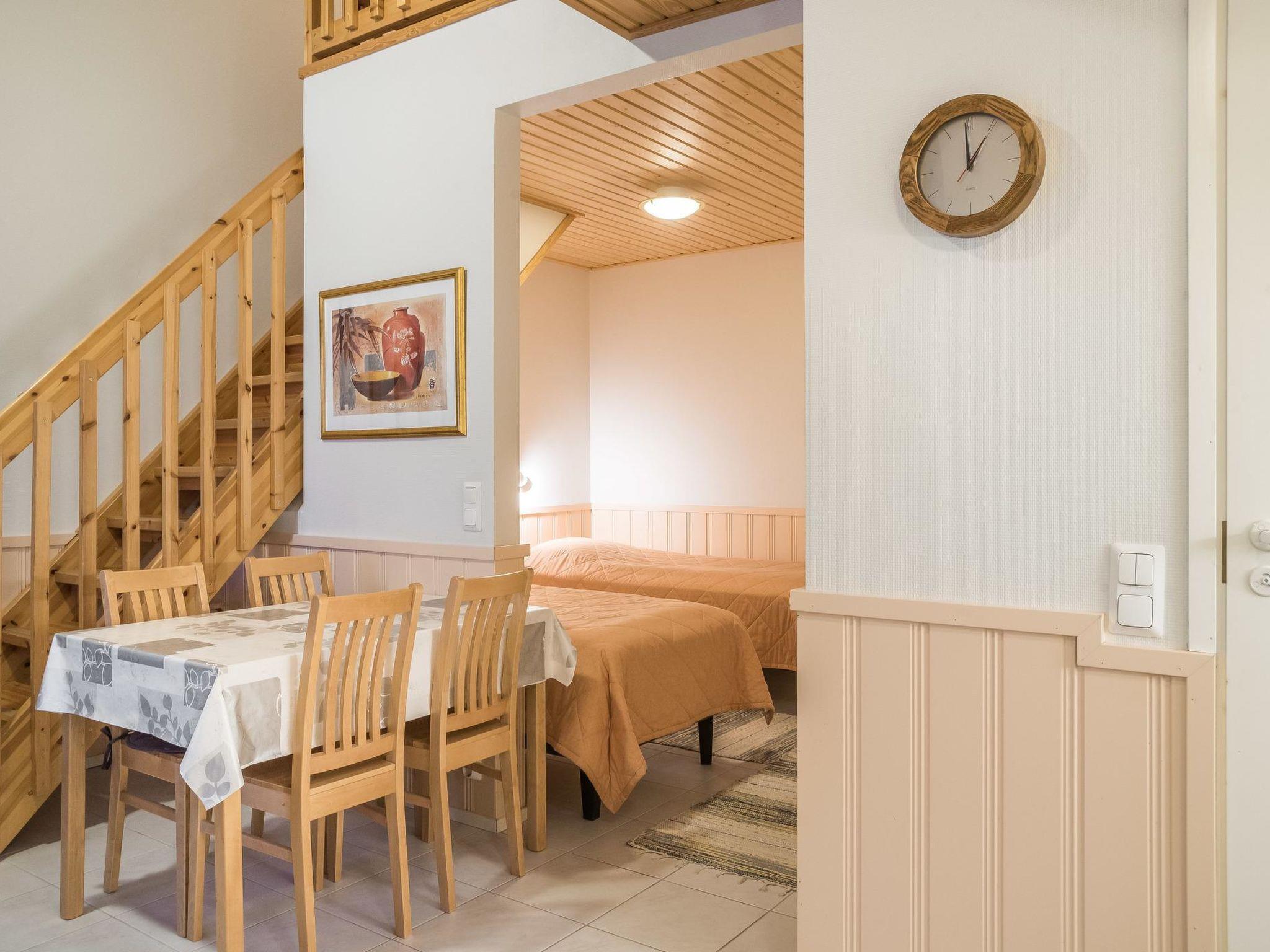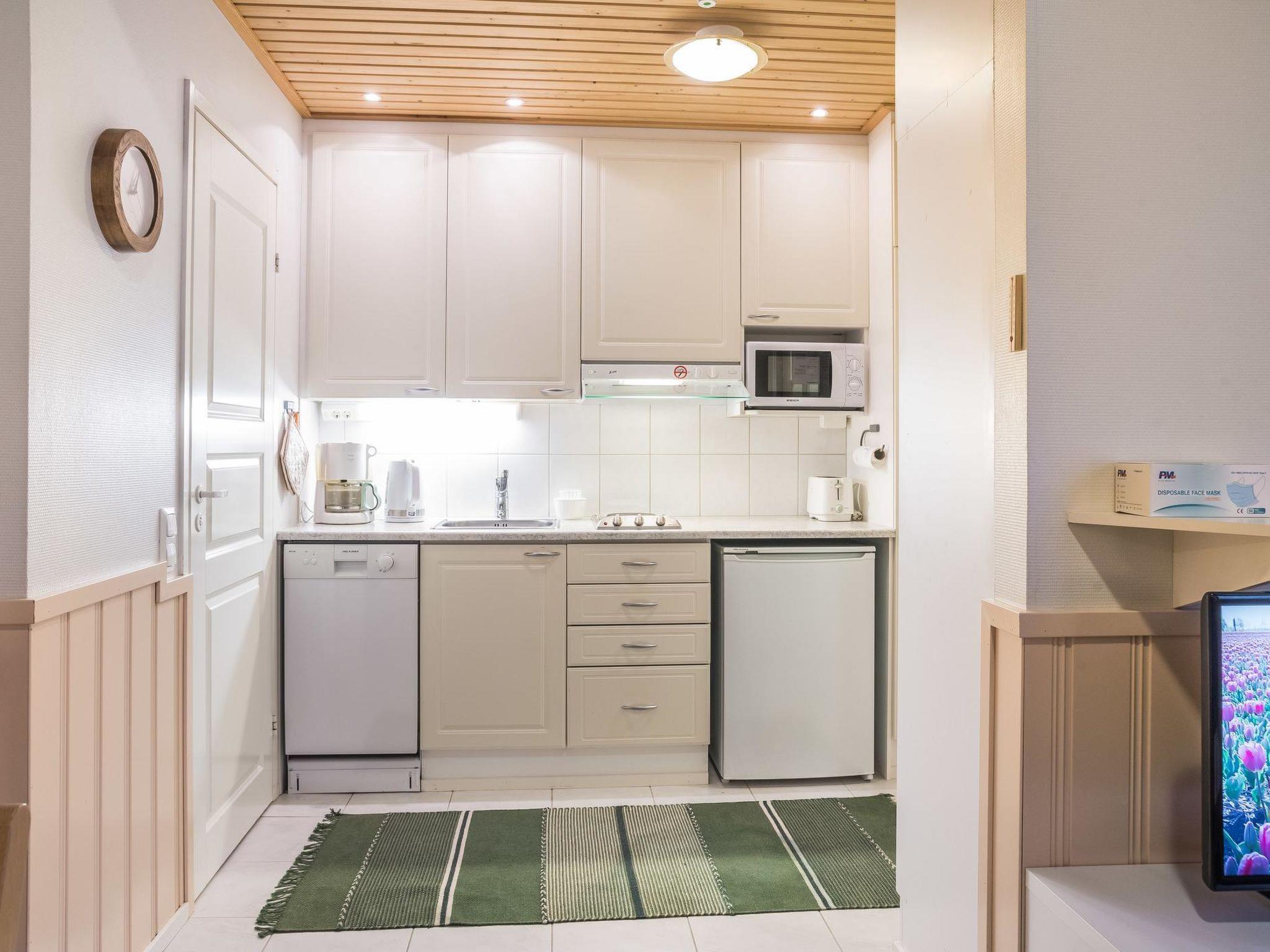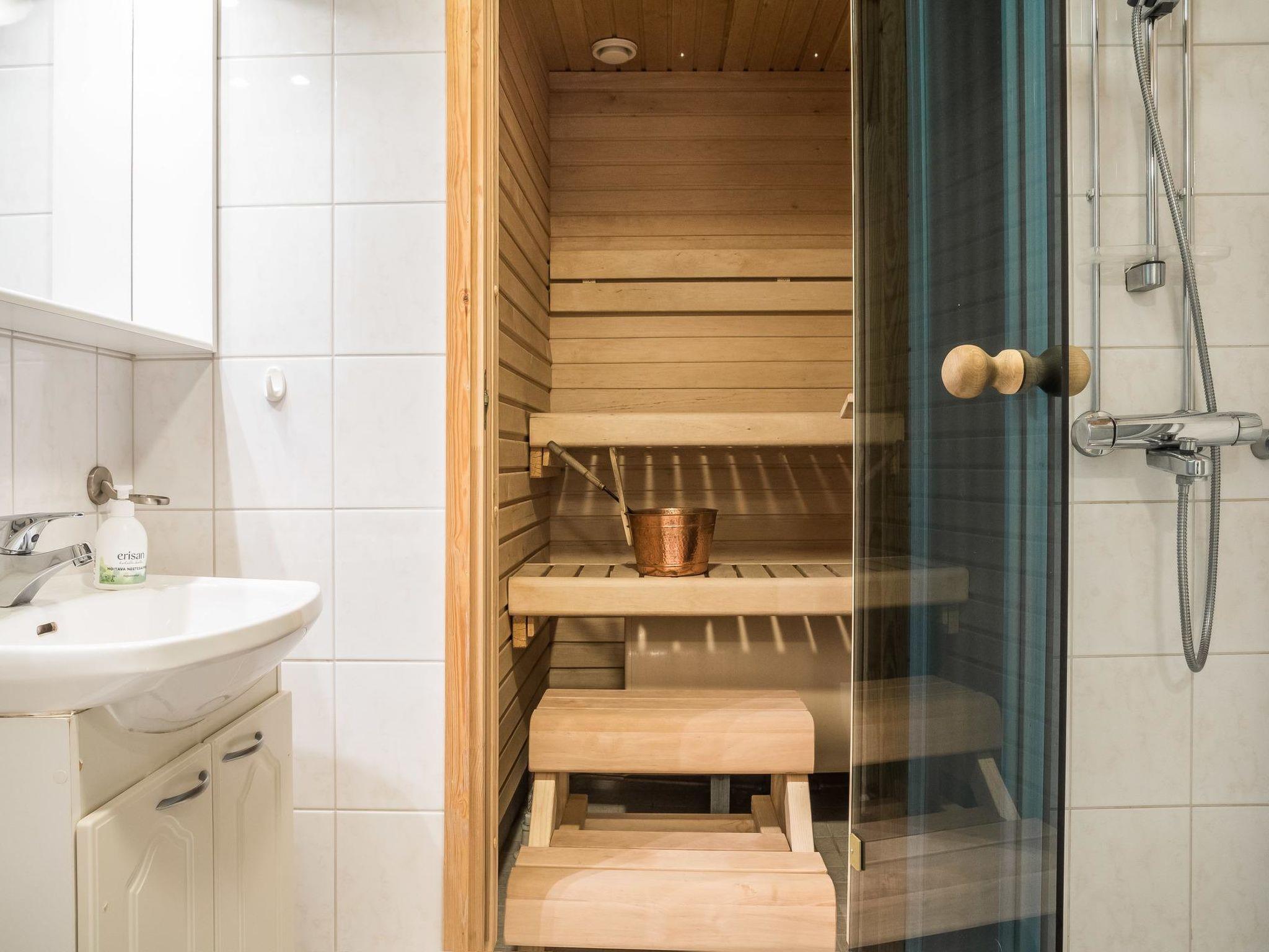 40 km north of Kolari, Lake Äkäslompolojärvi 1 km, swimming shore 1.5 km. An apartment for 4 persons in apartment hotel, build 2006, area 44 m² of which 11 m² on the loft. Livingroom/kitchenette, alcove with 2 separate beds, in livingroom a convertible sofa/bed for 2 persons, loft (11 m²) 1 bedroom with 2 separate beds, sauna (electrically heated), washroom/wc. Downstairs of Yllästar 2 is laundrette and ski careroom. NOTICE! cooking plates (no oven)