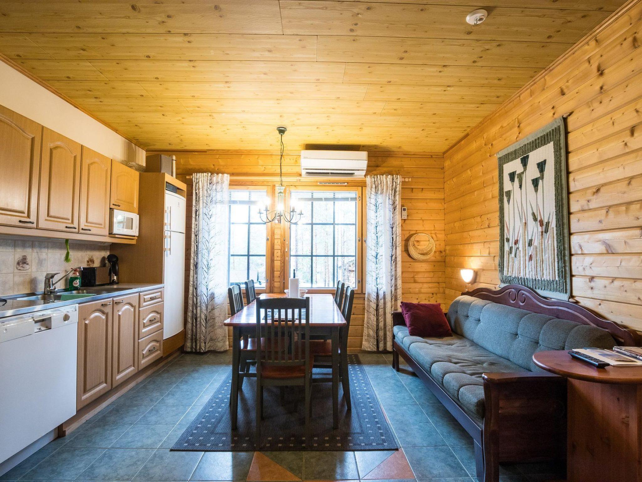 40 km north of Kolari, lake Äkäslompolo 1 km, swimming beach 2,5 km. Wooden semi-detached house apartment 2000. Livingroom/kitchen, two bedrooms, one with a double bed and the other with a bunk bed with expandable lower portion, sofabed in living room, sauna (electric), shower/toilet.