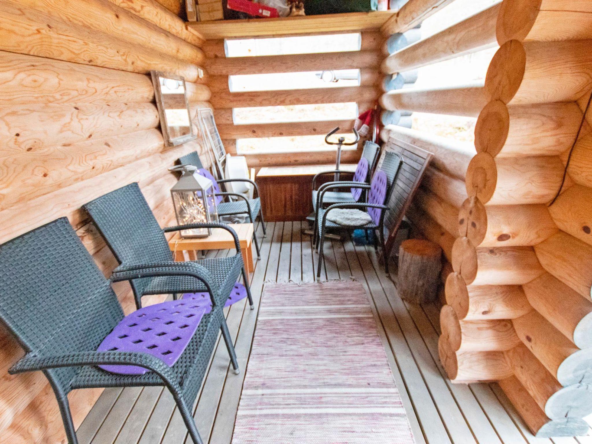 Separate log cottage located 40 km north of Kolari in the Äkäslompolo village central area, built 2002. Area 121 m² of which 44 m² on the loft. Downstairs: livingroom/kitchen, bedroom with double bed, electric sauna, bathroom/toilet. Upstairs: bedroom with double bed (140 cm wide), bedroom 2 beds, lobby with two extendable bed sofas, separate toilet. Heated ski maintenance room and two pairs of snow shoes, kick sled, bicycle and grill hut in the yard for the customers' use. WiFi.