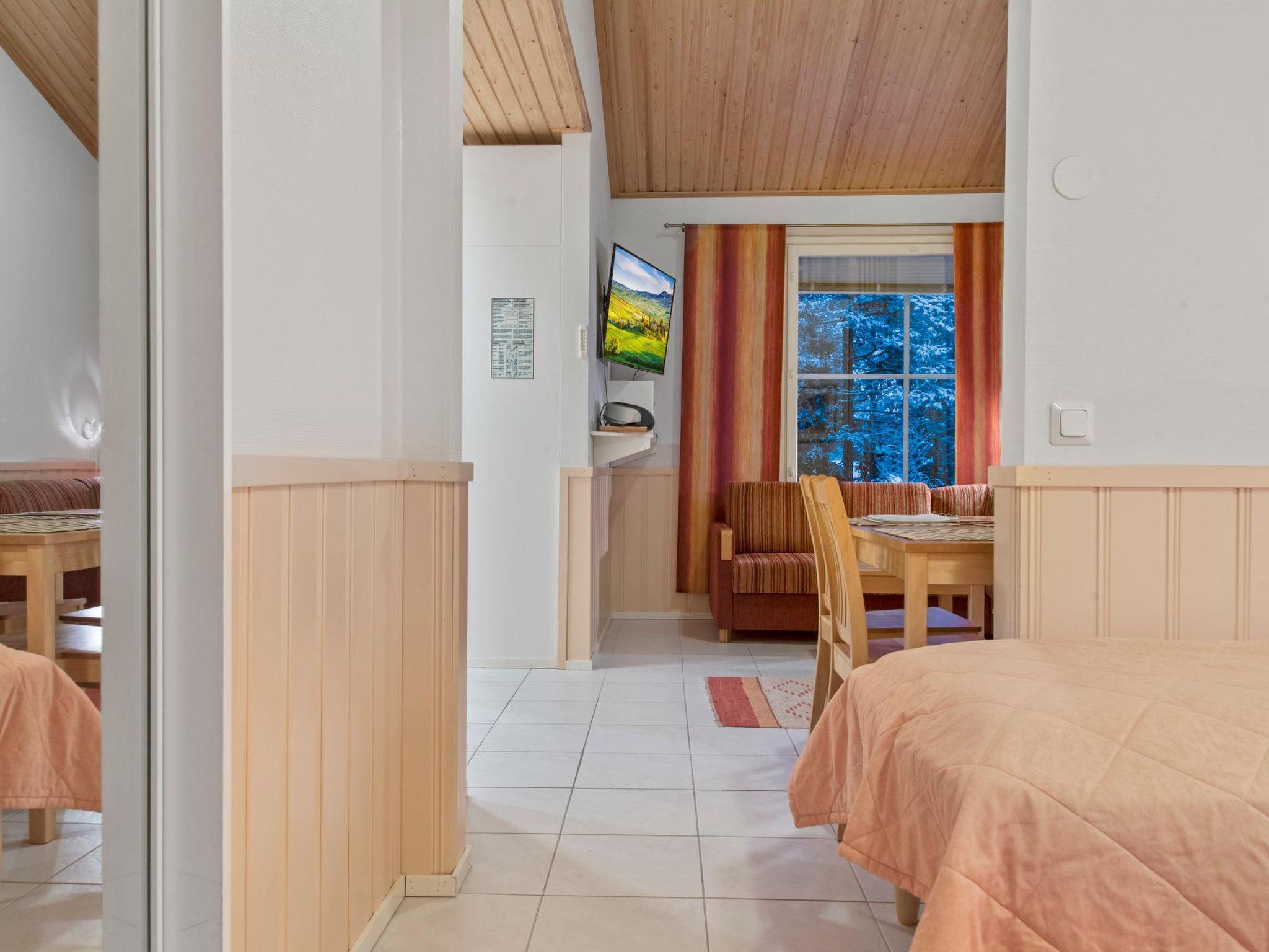 40 km north of Kolari, Lake Äkäslompolojärvi 1 km, swimming shore 1.5 km. An apartment for 2+2 persons in apartment hotel, build 2006, area 44 m² of which 11 m² on the loft. Livingroom/kitchenette, alcove with 2 separate beds, in livingroom a convertible sofa/bed for 2 persons, loft (11 m²) 1 bedroom with 2 separate beds, sauna (electrically heated), washroom/wc. In downstairs of Yllästar 2 is laundrette and ski careroom. NOTICE! cooking plates (no oven)