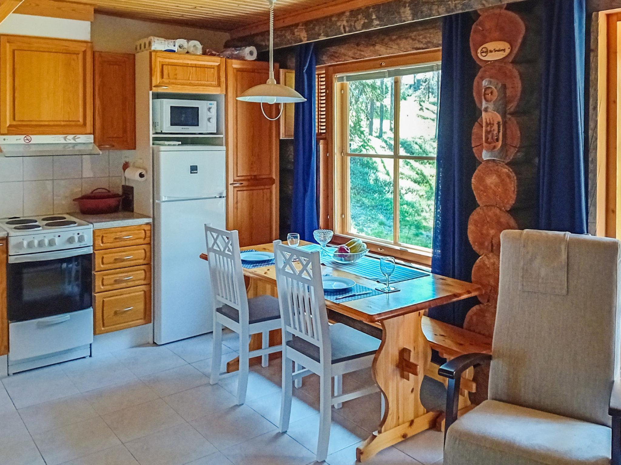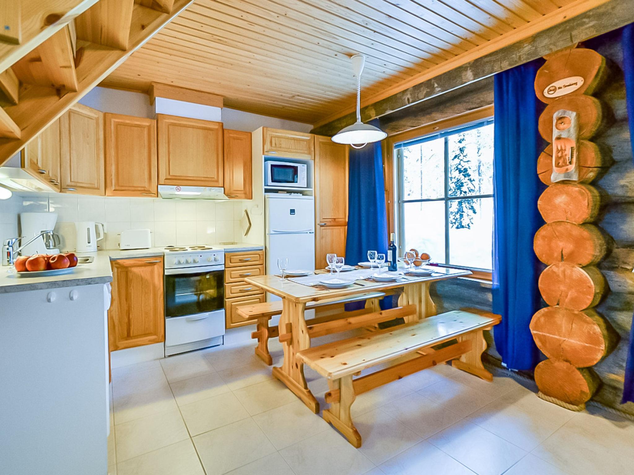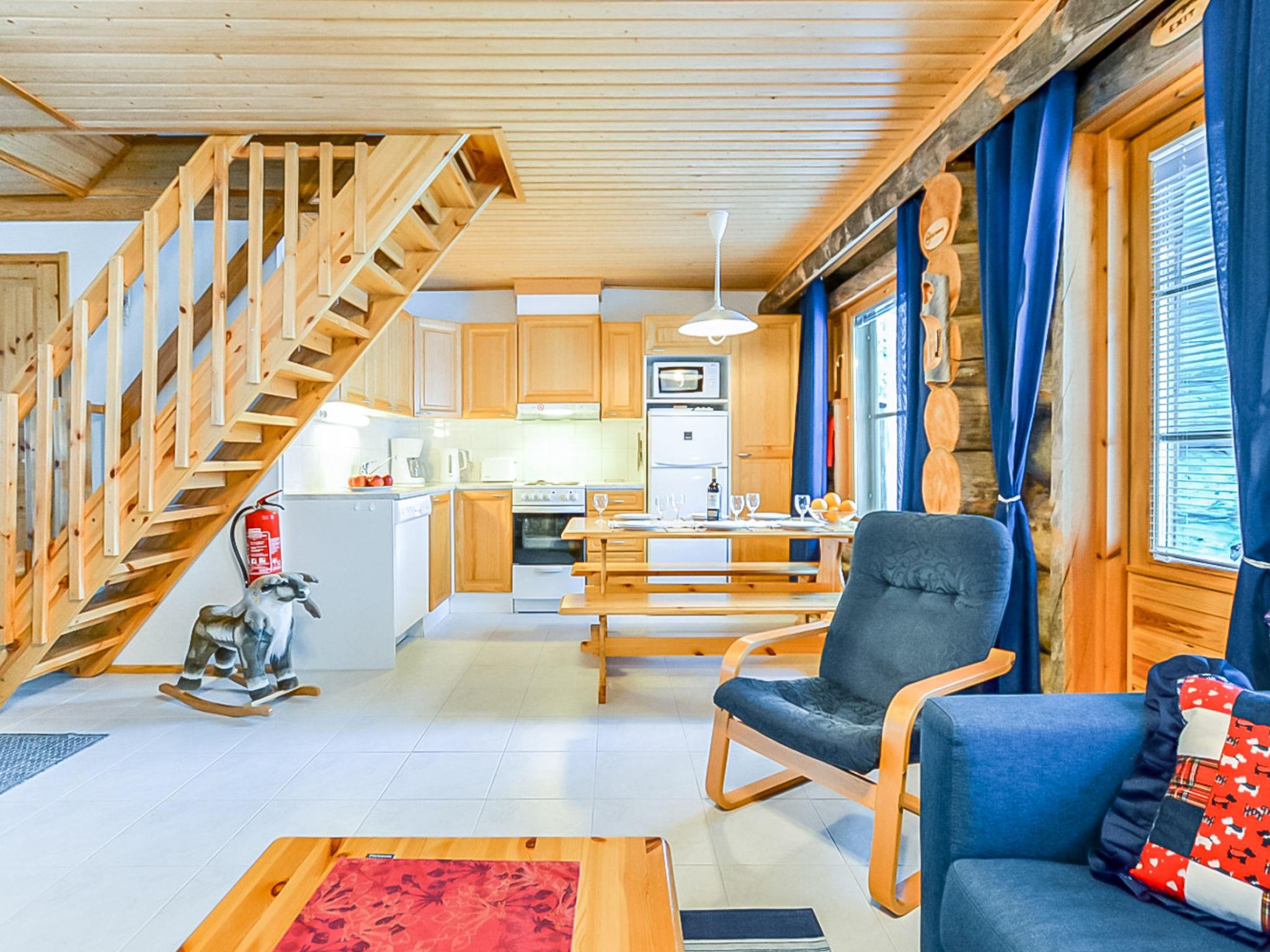 40 km north of Kolari, Lake Äkäslompolojärvi 1 km, swimming shore 2.5 km. Silverlog row house apartment 2006. Living room/kitchen, 1 bedroom with 2 separate beds, 50 m² + sleeping loft (15 m²) with 2 separate beds and convertible sofa/bed, sauna (electrically heated), washroom/WC, sleeping loft has separate WC. Ski care room and storeroom, kick sledge, travel cot. Internet and 32" Finlux Android Smart TV.