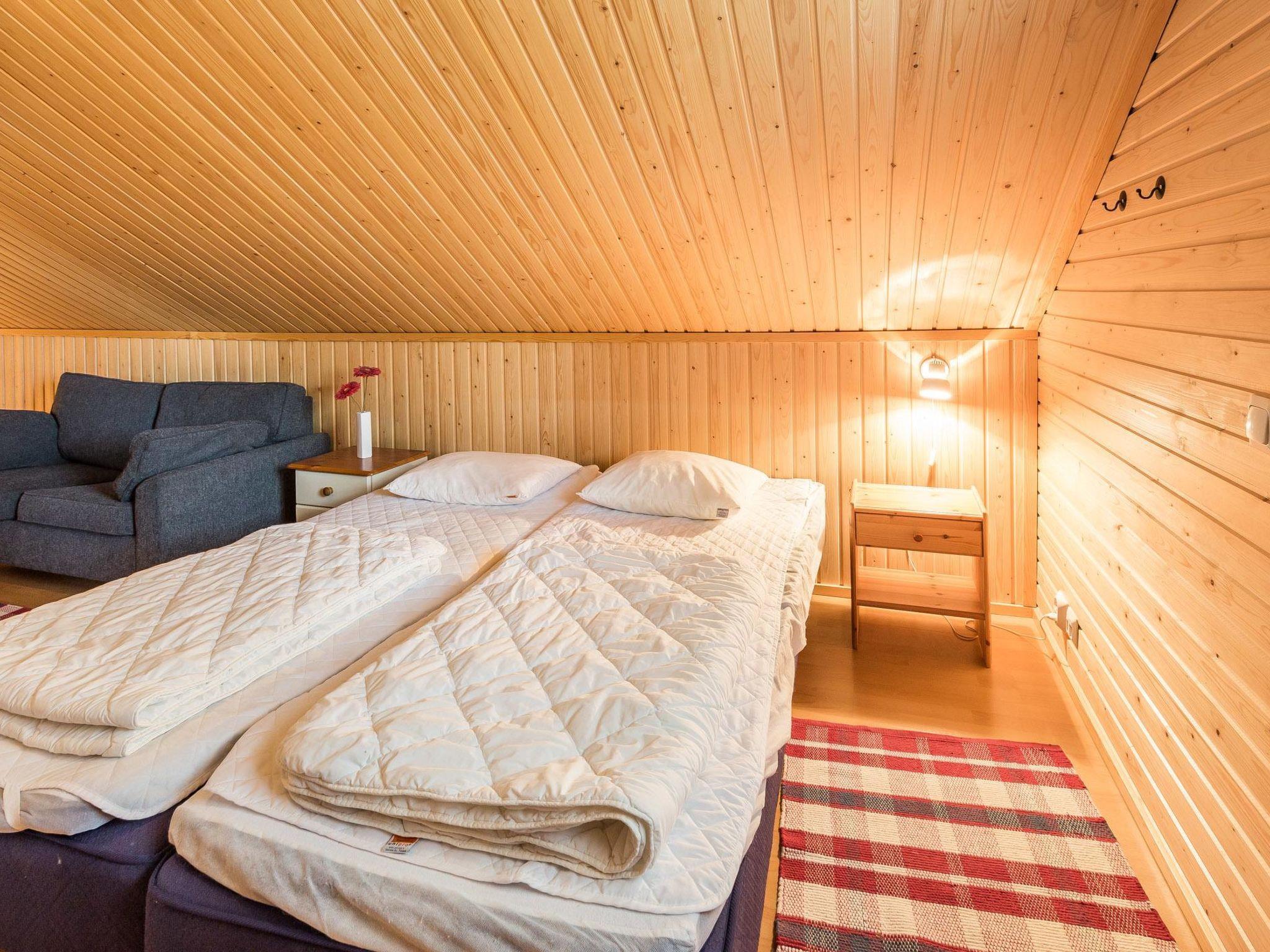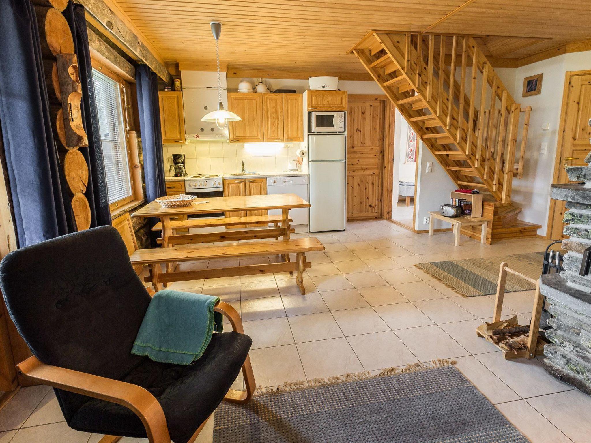 40 km north of Kolari, Lake Äkäslompolojärvi 1 km, swimming shore 2.5 km. Silverlog row house apartment 2006. Area 76 m² of which 21 m² on the loft. Living room/kitchen, 2 bedrooms, one with double bed and one with 2 separate beds, in sleeping loft 2 separate beds , sauna (electrically heated), washroom/WC, sleeping loft has separate WC. Ski care room and storeroom. Firewood on the terrace in the box. PLEASE NOTICE THAT BOOKING CAN NOT START OR END ON SATURDAY.