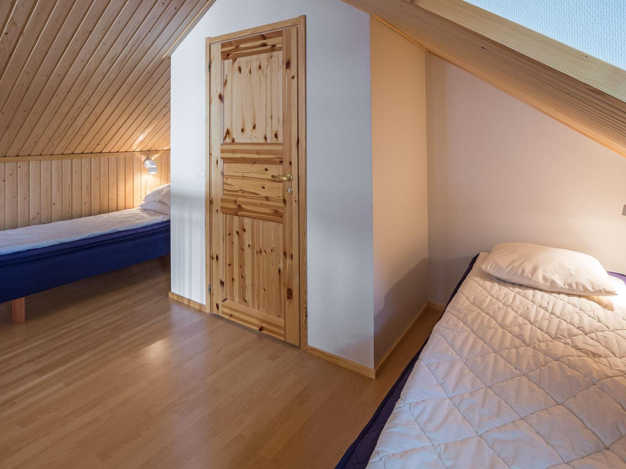 40 km north of Kolari, Lake Äkäslompolojärvi 1 km, swimming shore 2.5 km. Silverlog row house apartment 2006. Area 76 m² of which 21 m² on the loft. Living room/kitchen, 2 bedroom with 2 separate beds in each bedroom, in sleeping loft 2 separate beds, sauna (electrically heated), washroom/WC, sleeping loft has separate WC. Ski care room and storeroom. Firewood on the terrace in the box.