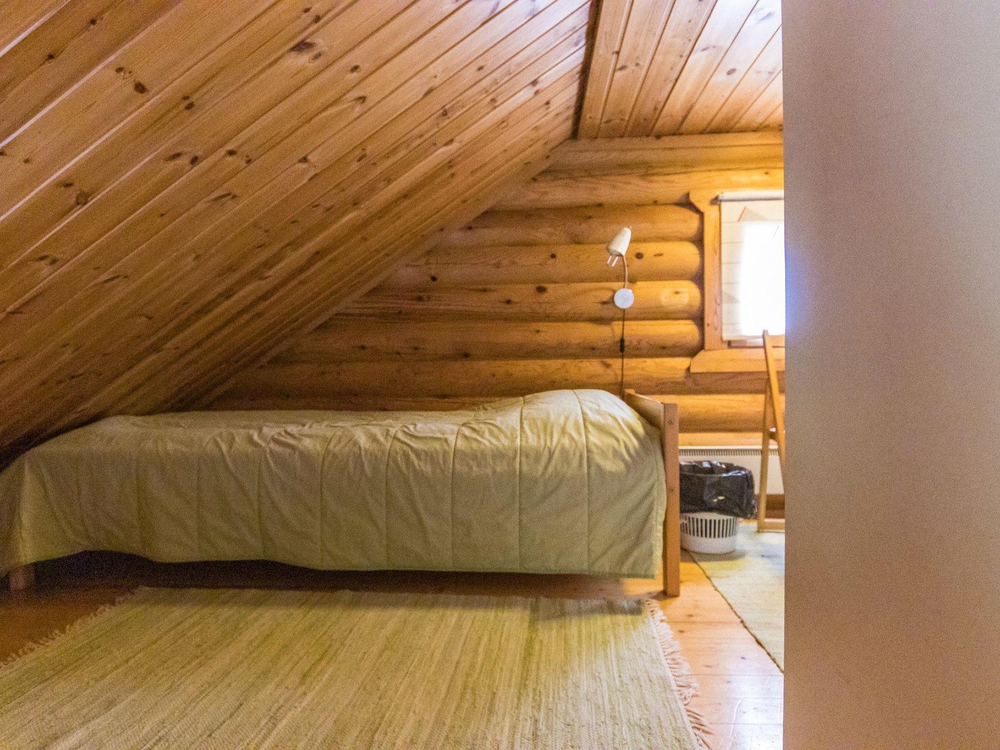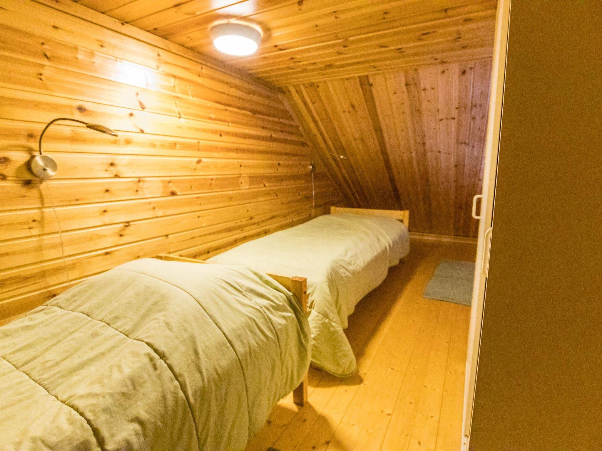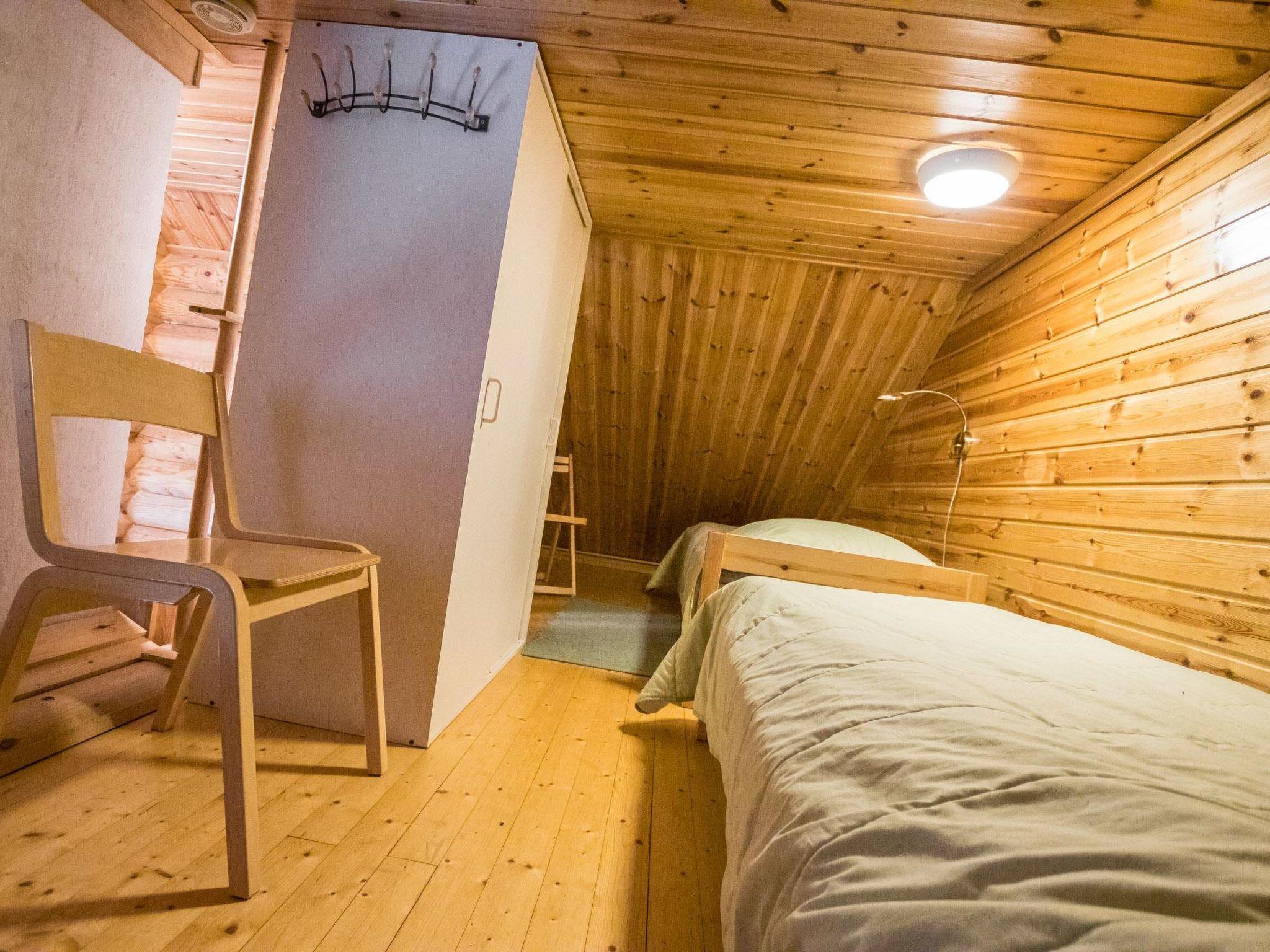 Log duplex apartment, built 1990. Livingroom, kitchen, two alcow (folding doors), each with 120 cm bed, two lofts (one 14 m² and one 9 m²) each with two separate beds, electric sauna, shower, separate toilet. Heated ski maintenance space; ski stand and heater.