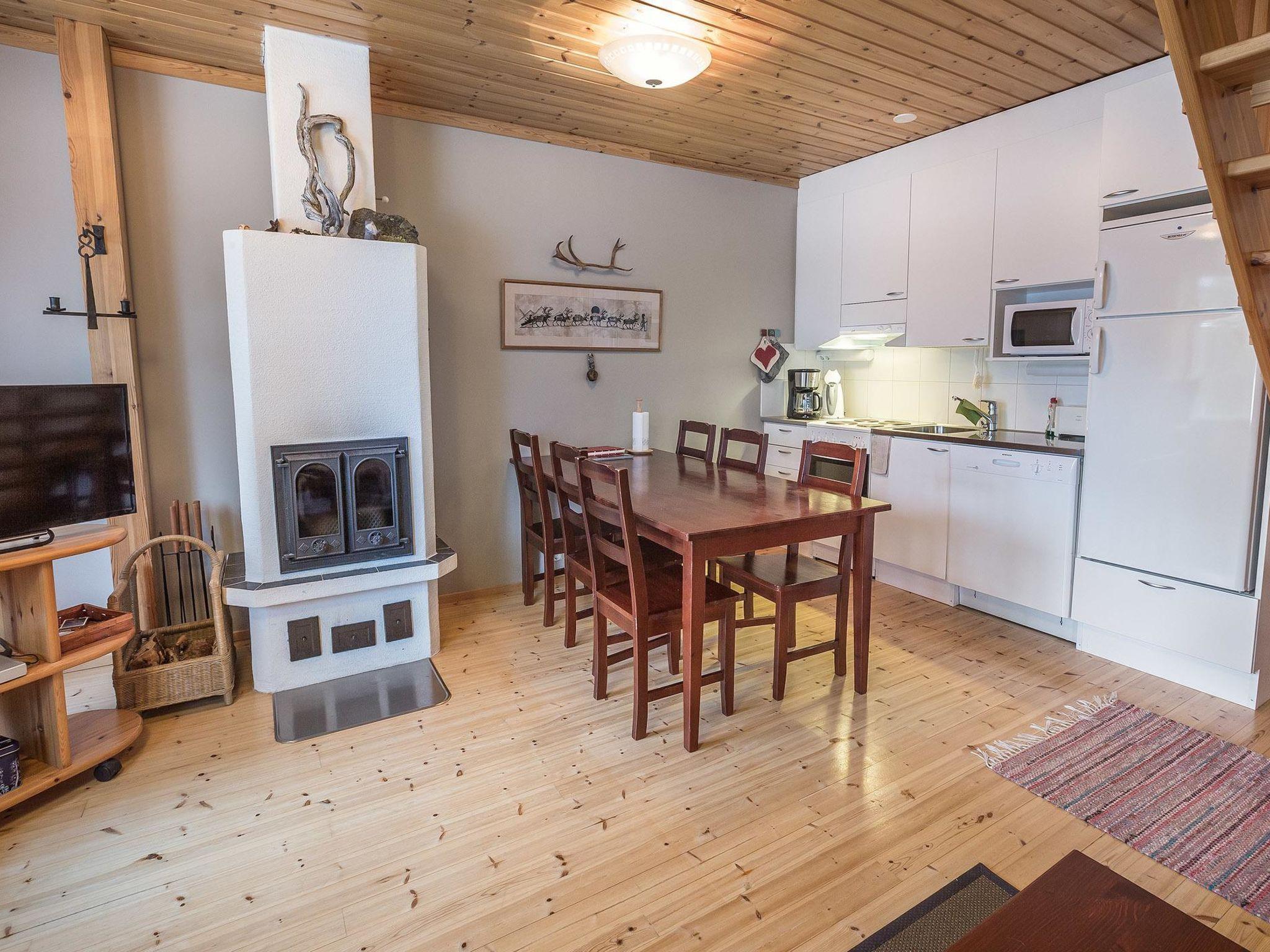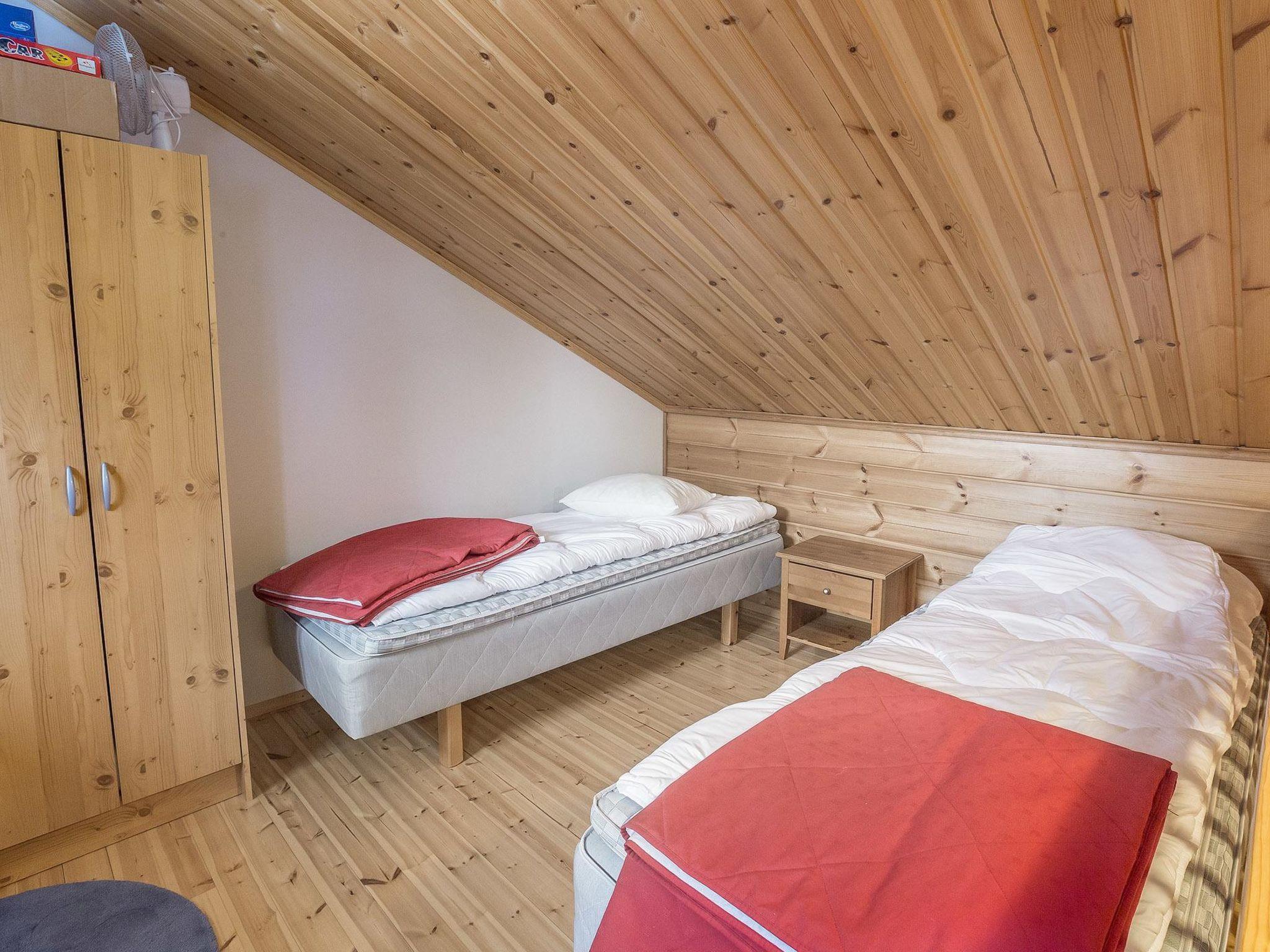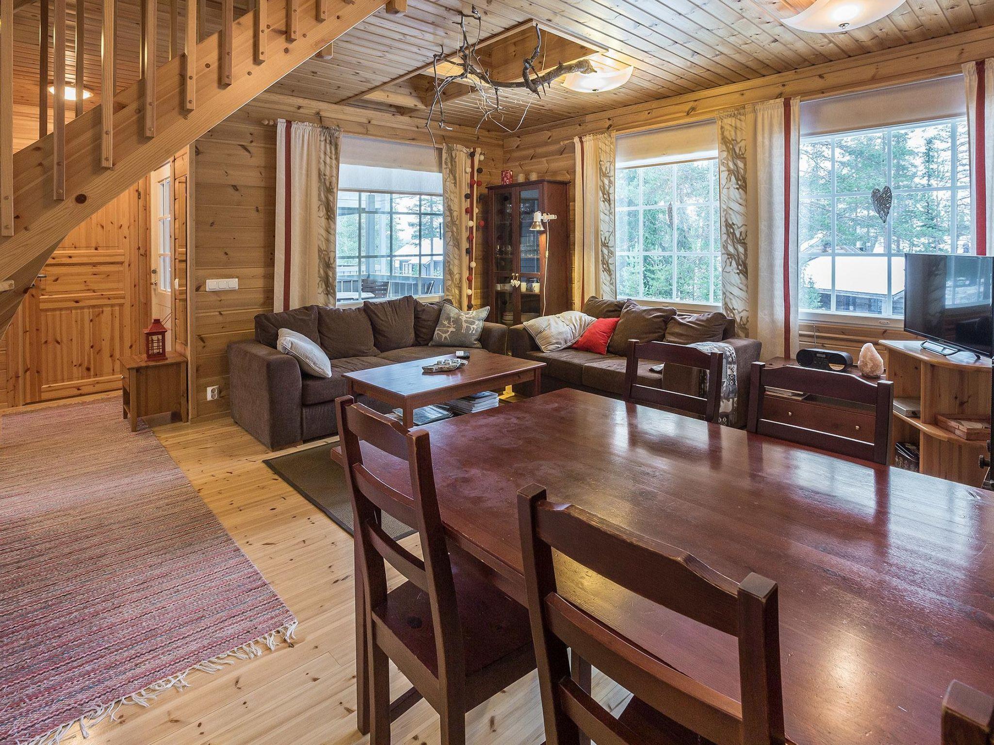 Log semi-detached house apartment 2006. Livingroom/kitchen, one bedroom with 2 beds side by side, spacious loft (11 m²) three separate beds, sauna (electric), shower, separate toilet. Child safety gates at both ends of the loft stairs.
