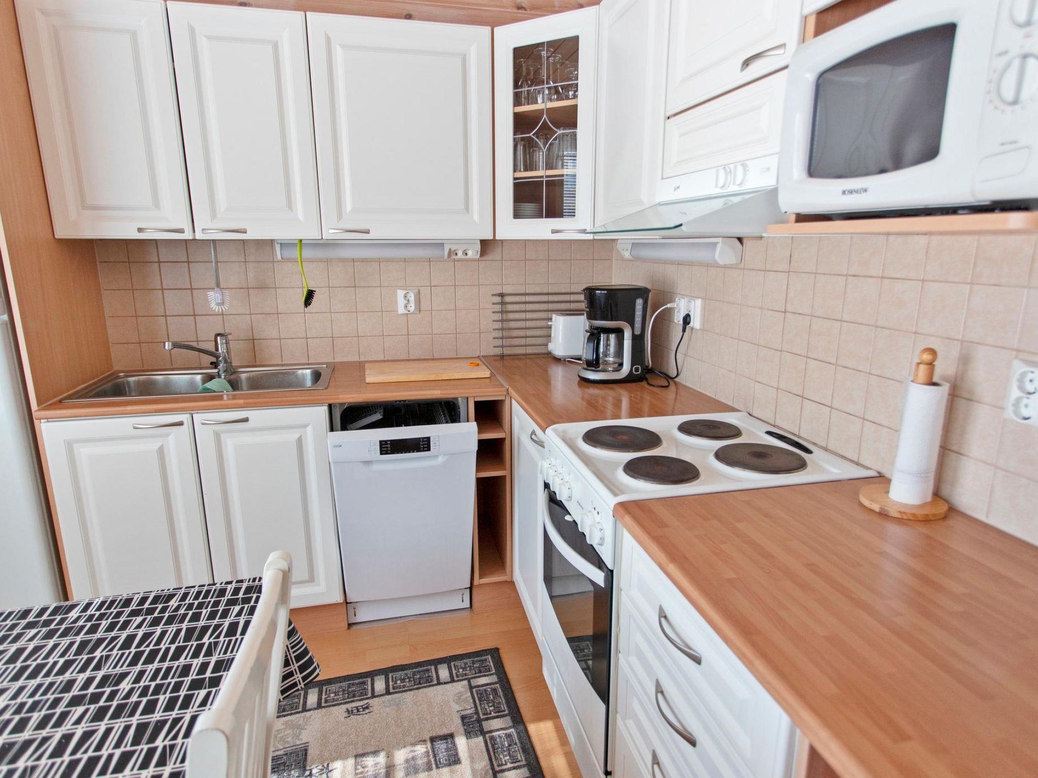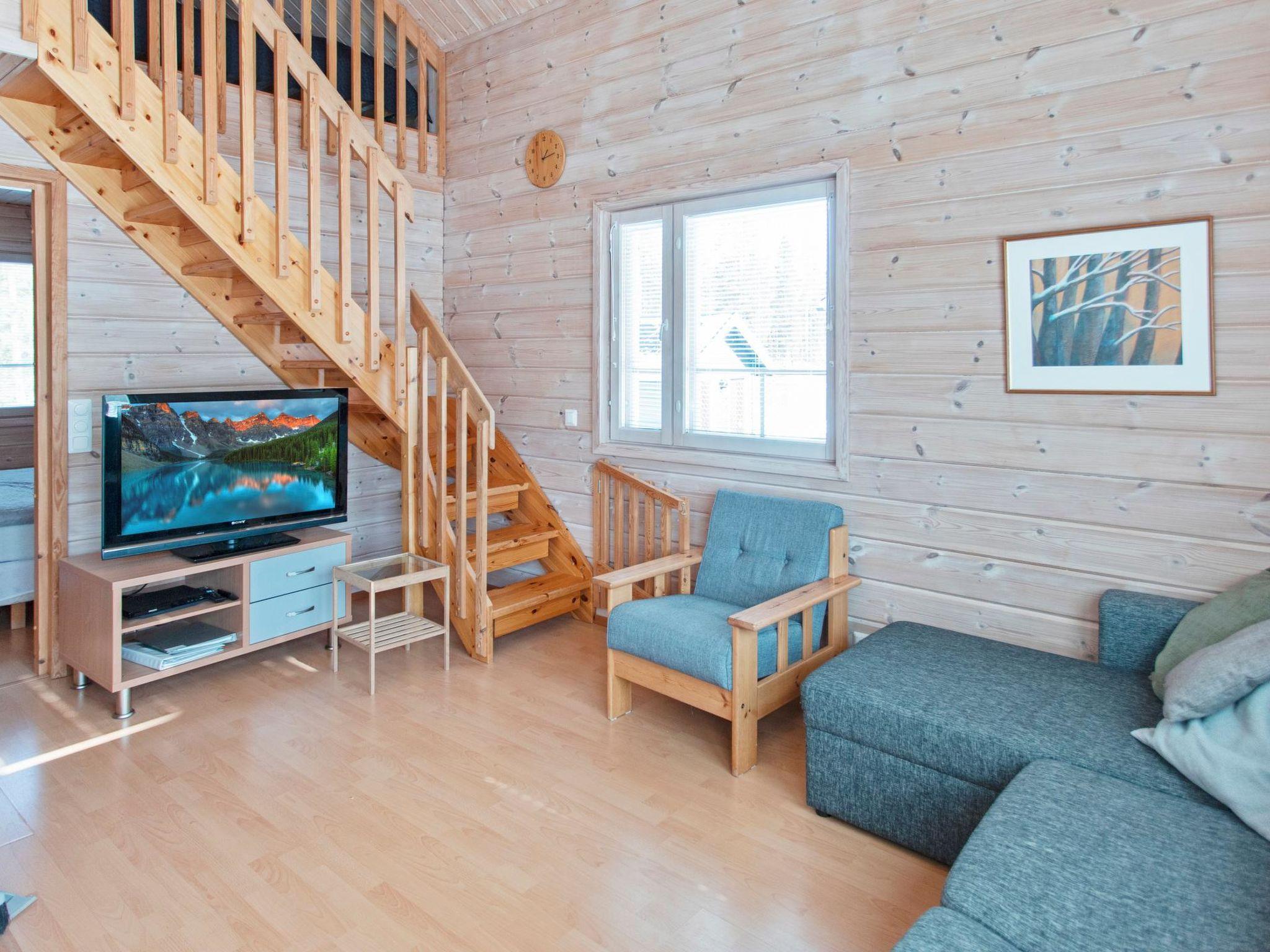40 km north of Kolari, near the Äkäslompolo village skiing tracks, address Maahisentie 5. Log duplex apartment (built 2007) that has livingroom/kitchen with bed sofa, bedroom with double bed, loft (20 m²) with two beds ( 80 x 200 cm), 1 bed ( 120 x 200 cm) and sofa + matress, electric sauna, separate toilet and heated ski maintenance space. Area 65 m² of which 20 m² on the loft.