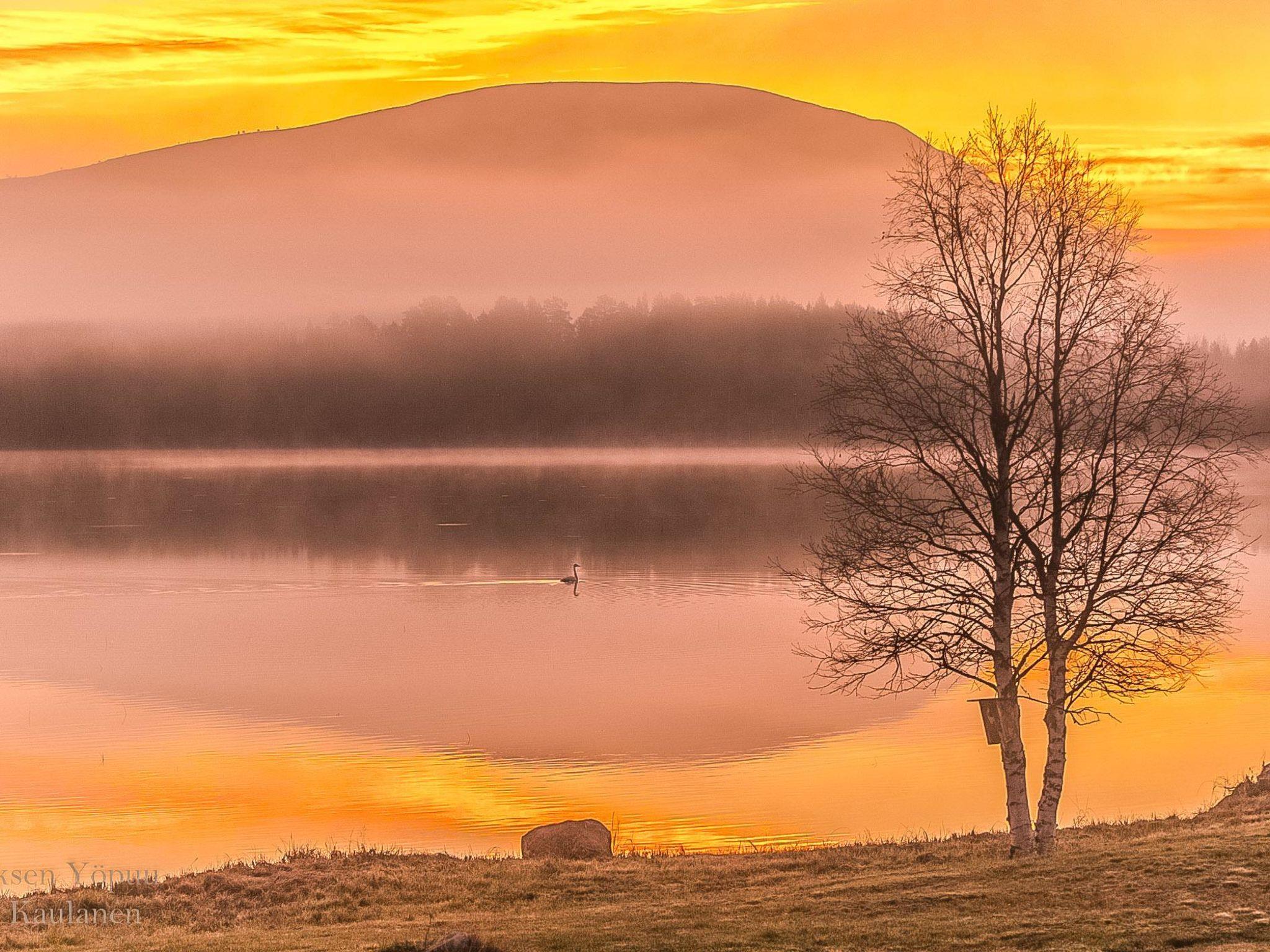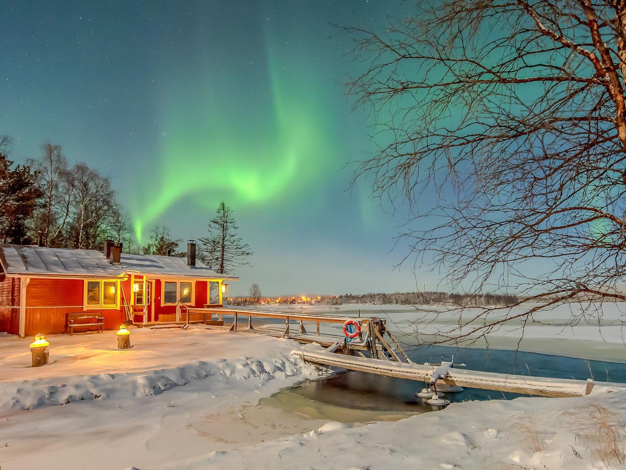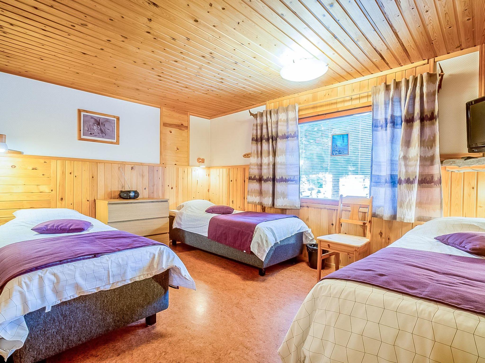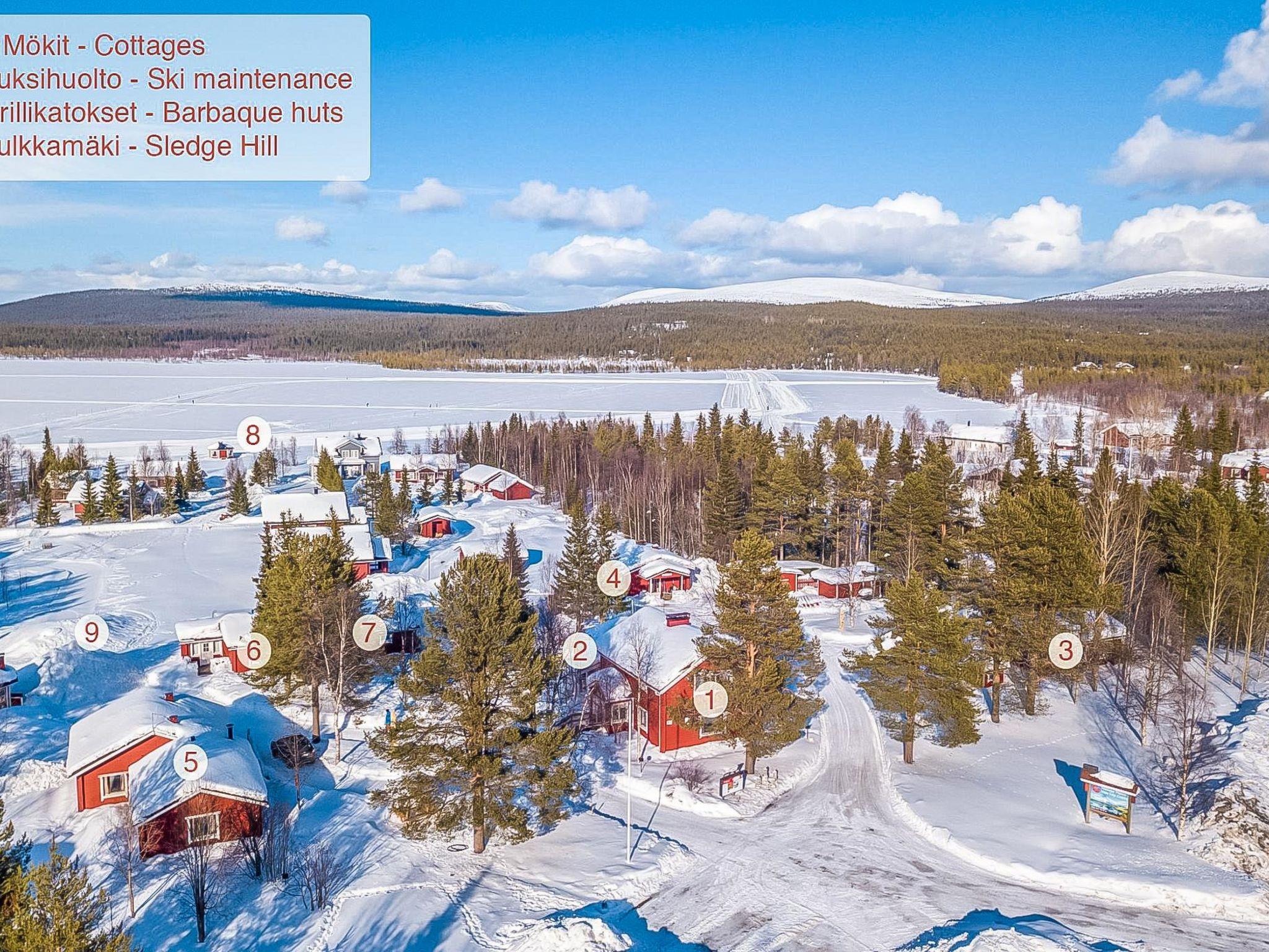 200 km north of Rovaniemi, L. Äkäslompolojärvi 220 m (length 1 km, width 2 km), shallow and deep shore, hard clay bottom, public beach, boats shared. Wooden flat 1970, renovated 2002, at other end ski care room for cottage village, living room/kitchen, bedroom 2 beds, bedroom double bed +1 bed, washroom, sauna (elec. stove ), porch. Fireplace is special, one made of metal. Free Wi-fi and Northern Lights alarm. By arrangement also lakeshore sauna, distance 220 m. Roofed grill shared, distance 20 m.