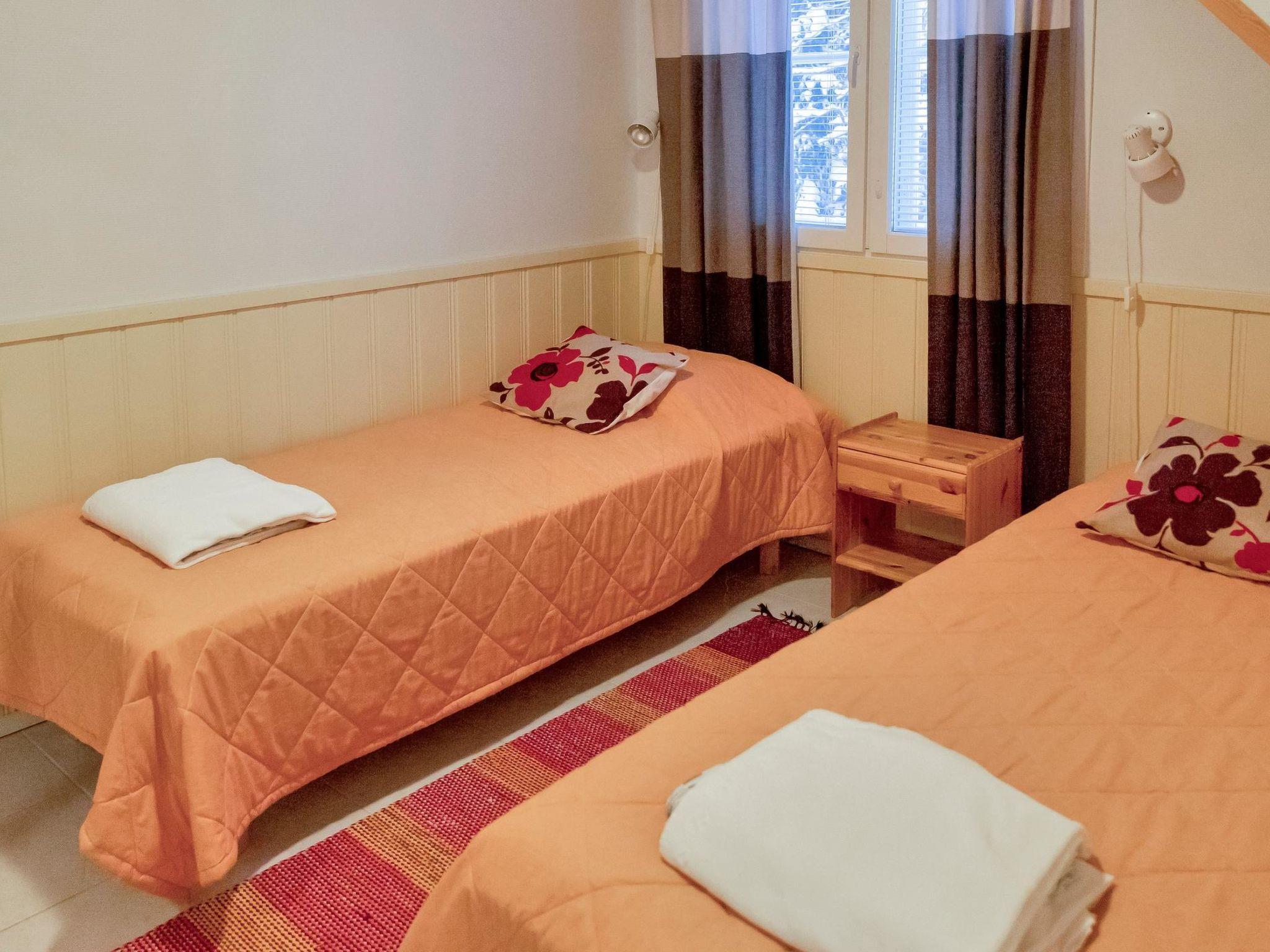 40 km north of Kolari, Lake Äkäslompolojärvi 1 km, swimming shore 1.5 km. An apartment in an apartment hotel, build 2007, area 44 m² of which 11 m² on the loft. Livingroom/kitchenette, 2 bedrooms with 2 separate beds in each, in livingroom a convertible sofa bed for 2 persons, loft (11 m²) with 2 separate beds, sauna (electrically heated), washroom/wc. Play Station 2. In downstairs of Yllästar 2 is laundrette and ski careroom. NOTICE! cooking plates (no oven)