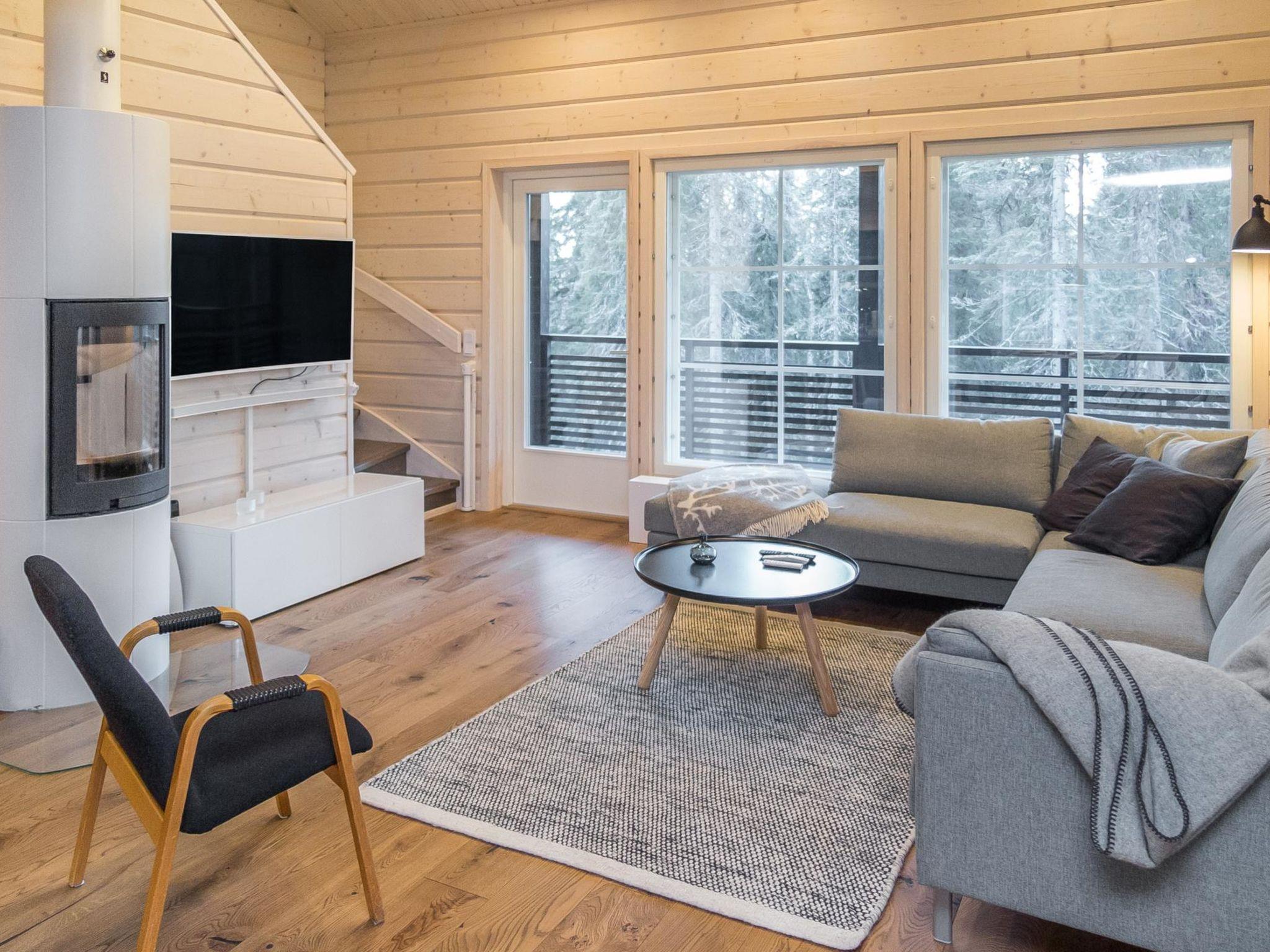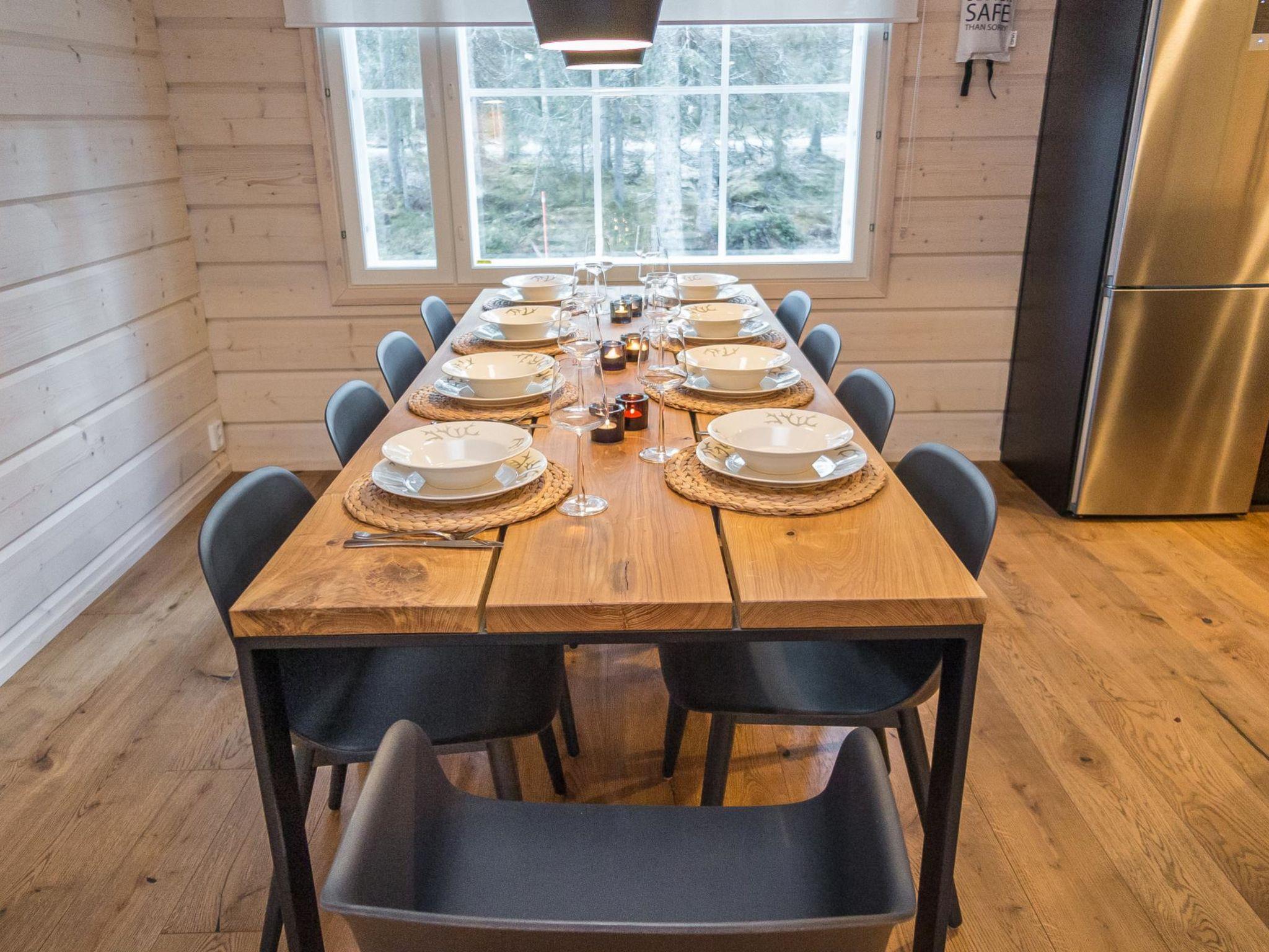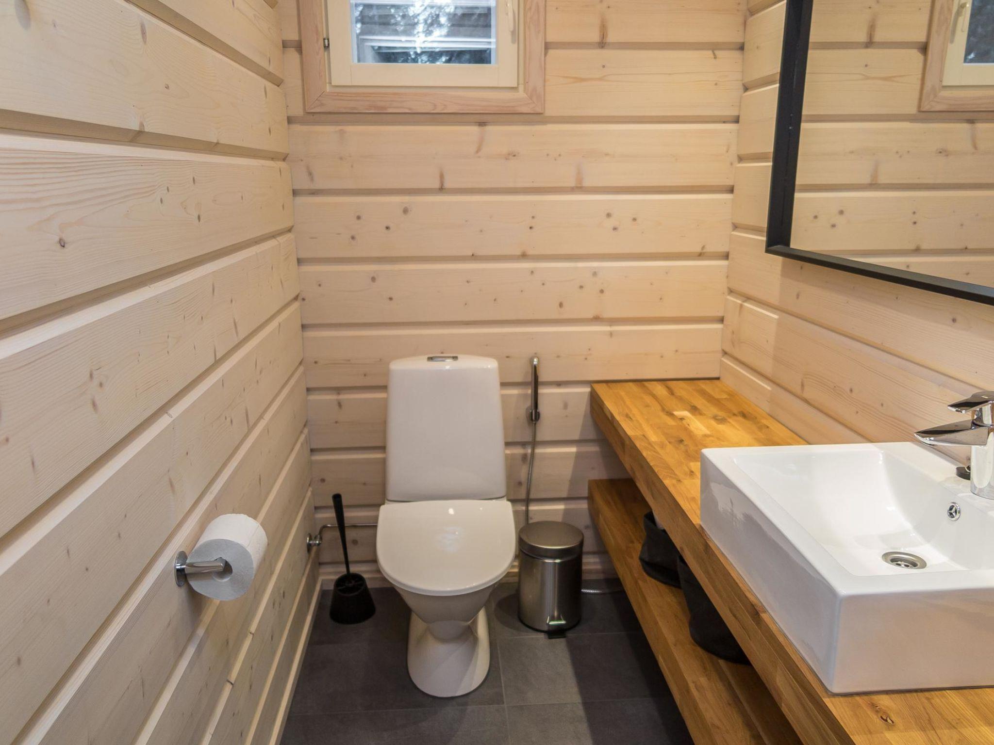 40 km north of Kolari. Log cottage, built 2018. In down stairs Livingroom/kitchen, two bedrooms with a double bed, electric sauna (electric heated) , shower, two separate toilets. In upstairs 4 separate beds and seating area. Other equipment: wi-fi, baby cot, high chair, potty, 2 kick sledges (during winter).