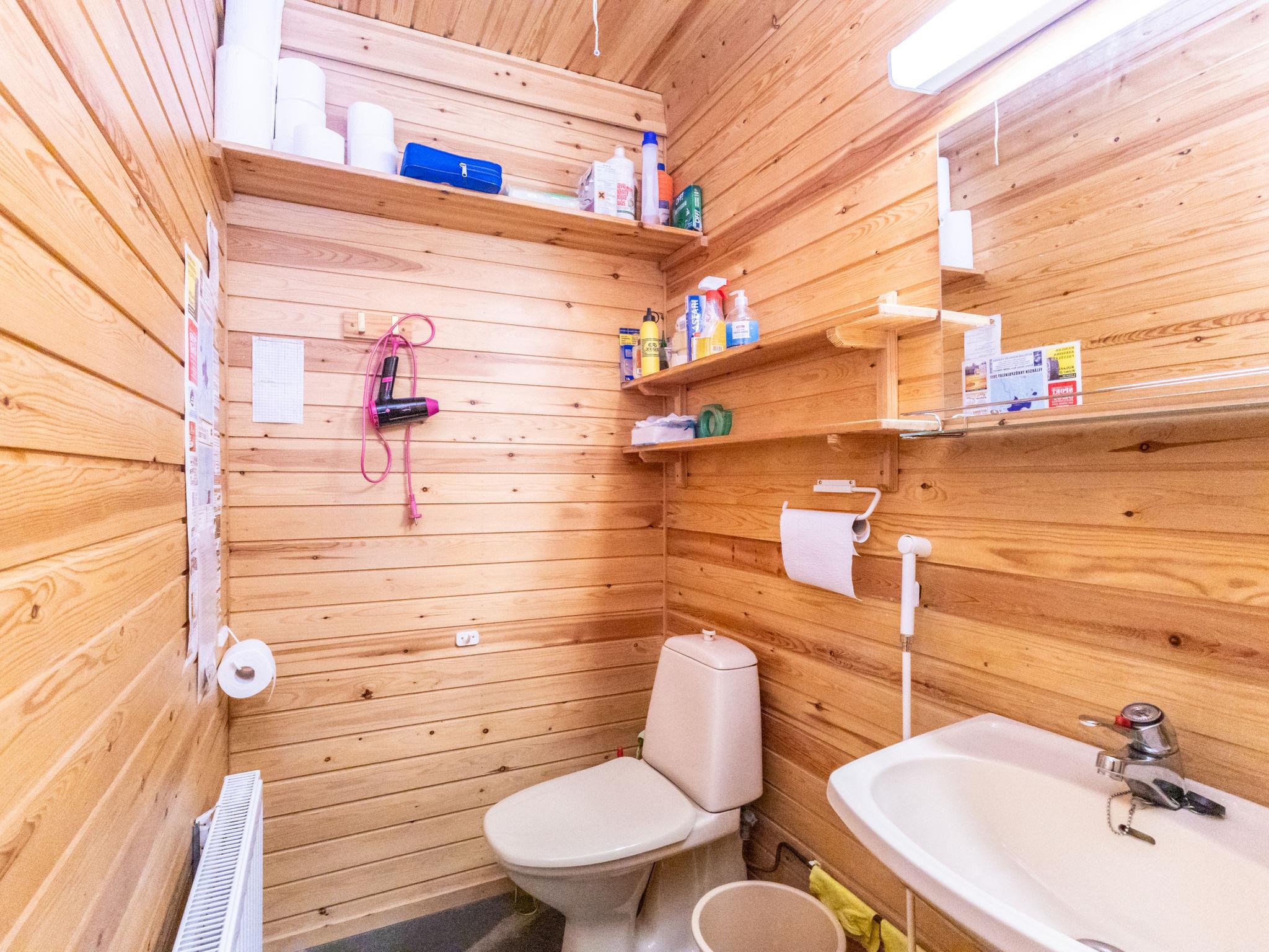 The property features a spacious sauna. The traditional Finnish electric sauna heater provides soft and enjoyable steam – just what you can expect from a cabin holiday in Lapland.