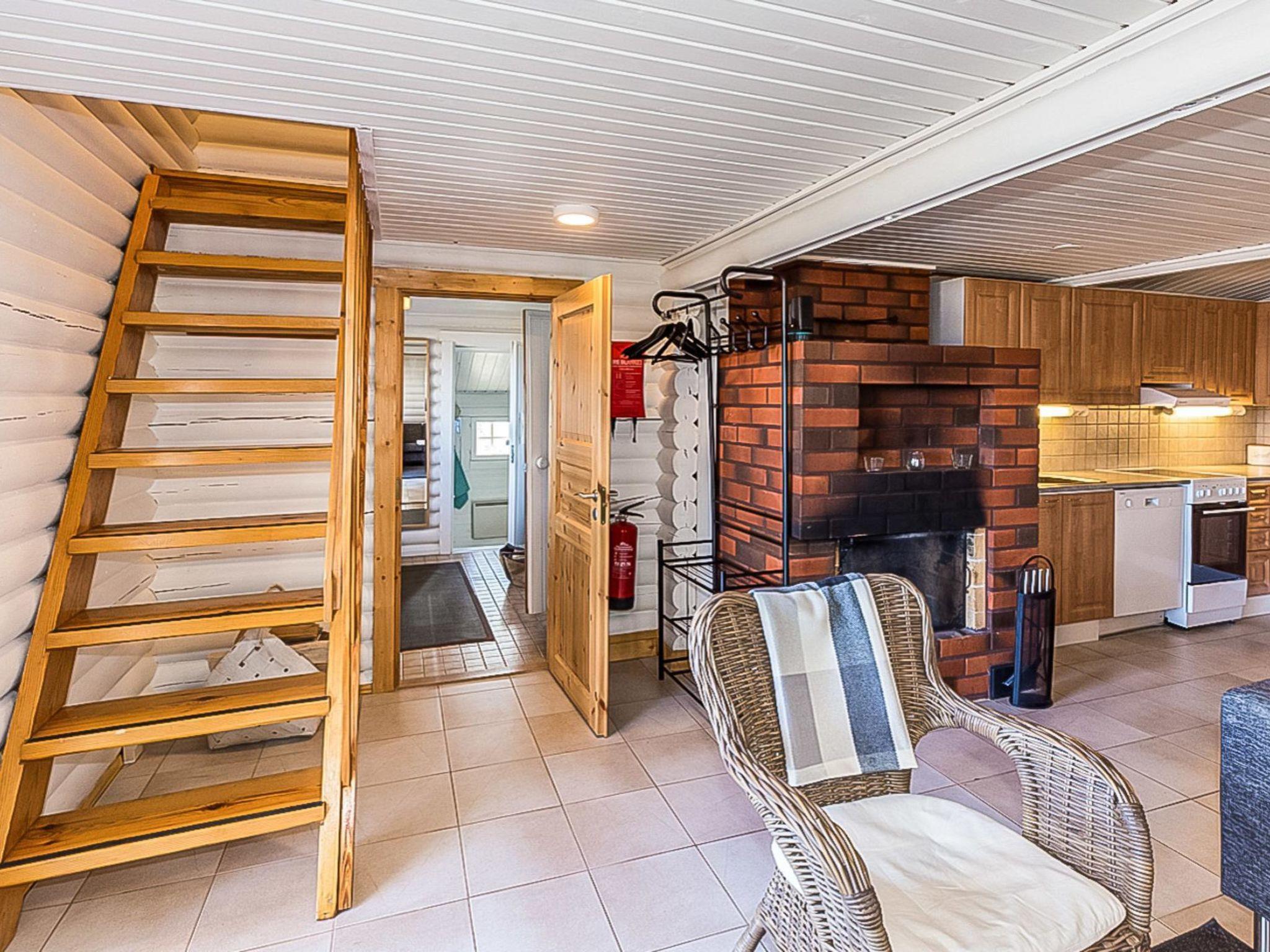 Log building 1986, expanded and renovated 2008, the cottage has beds for 7 people: downstairs bedroom 2 beds (width 90 cm), under which 2 spare beds (width 70 cm) that can be pulled out on wheels, upstairs bedroom 2 beds (width 90 cm) and in the loft living area 1 bed (width 90 cm). Upstairs partly low, sloping ceiling, 200 cm at the highest point. Dressing room, sauna, open porch, separate toilet. Note! The toilet in the cottage is not completely on the same level as the rest of the cottage, but to get there you have to walk down two stairs.