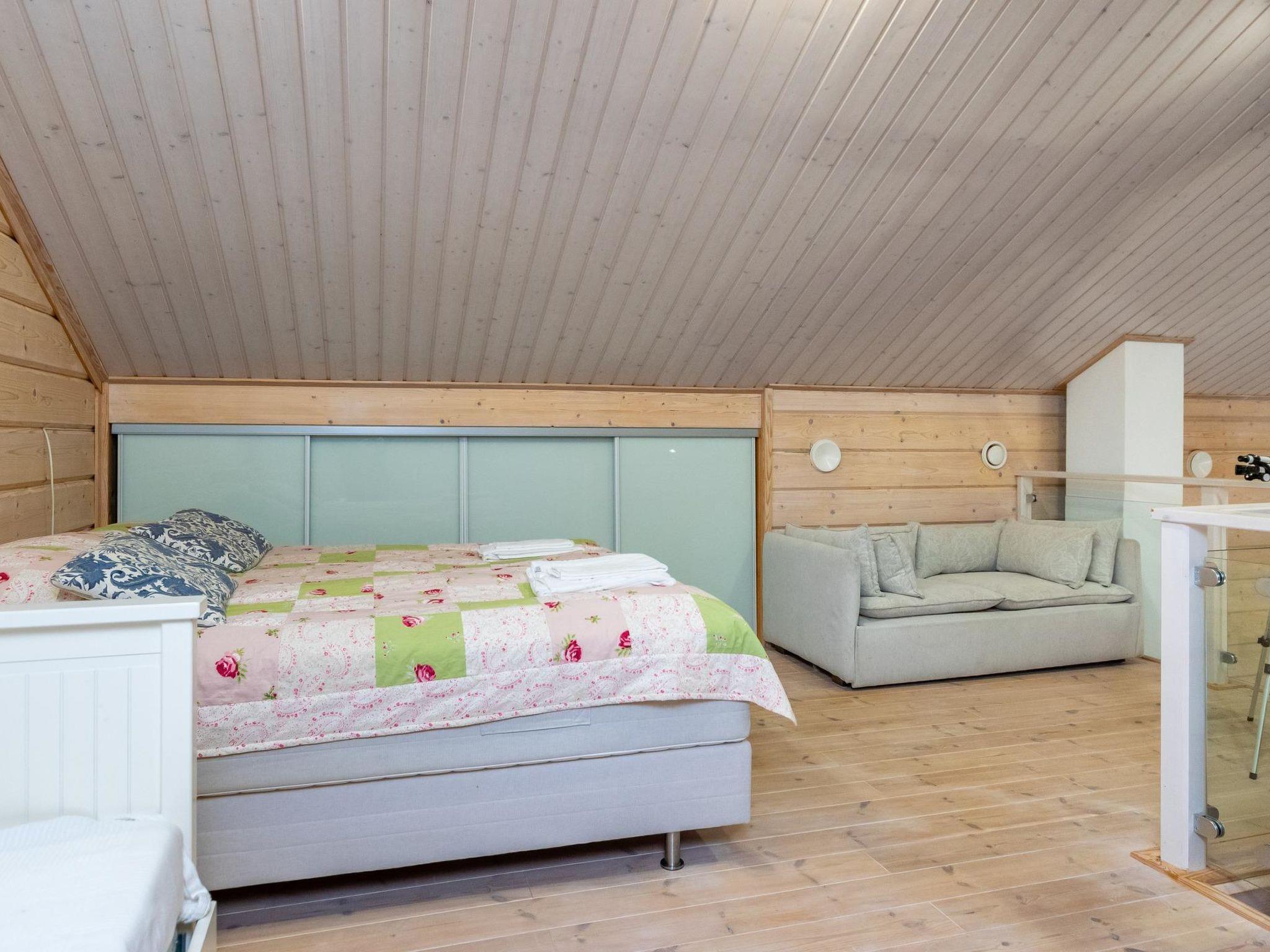 Log panel villa, built in 2012. A kitchen, living room with fireplace, 2 bedrooms, one with double bed and TV, another with 2 beds. Loft with 2 beds and 2 extra beds (sofa bed). A sauna with electric stove, bathroom with 2 showers, dressing room/utility room. Covered rear terrace.