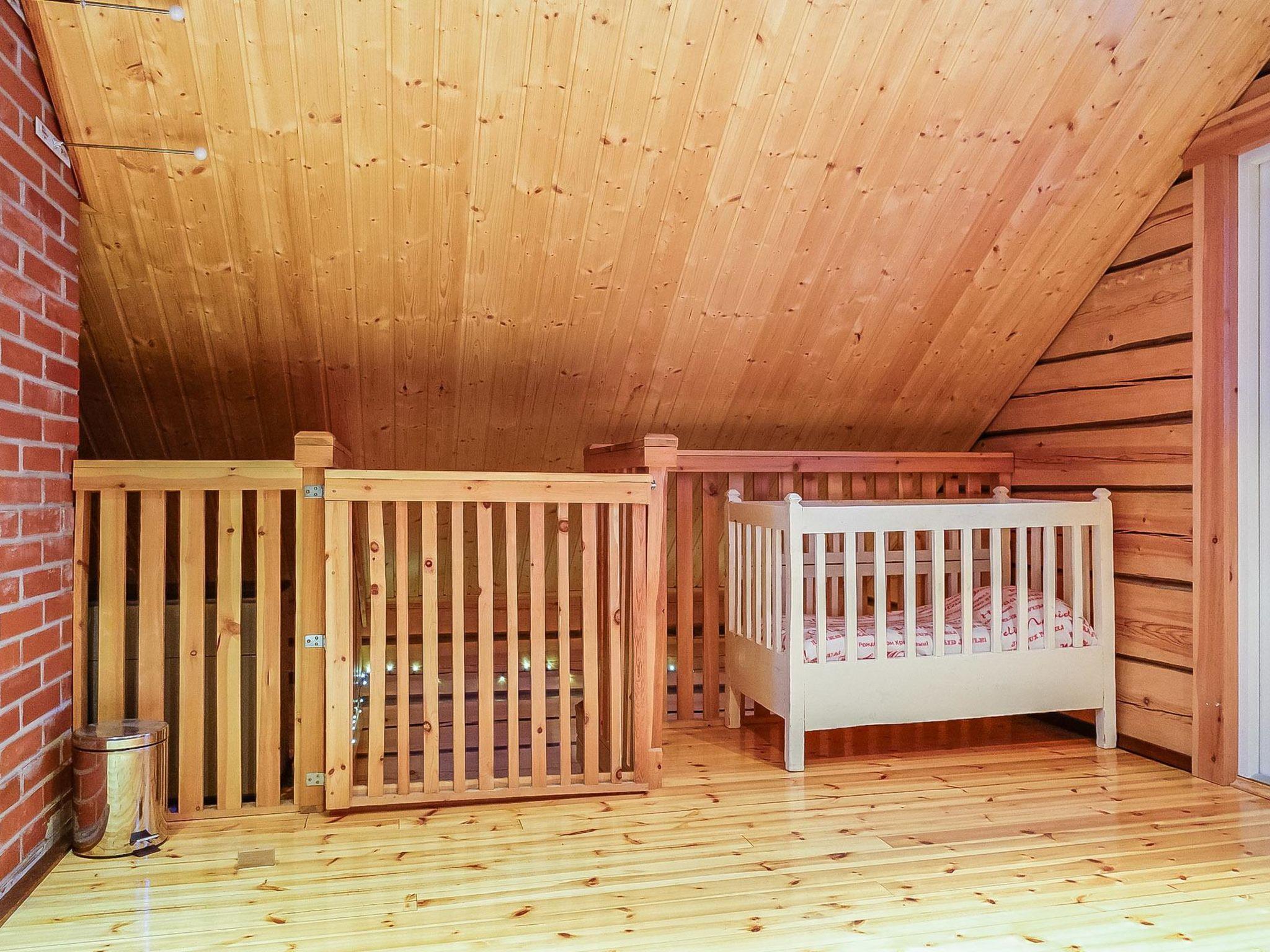 Hand-hewn log cottage, built 2012, with 3 storeys, ground floor is stone. Ground floor: sauna (electric stove), washroom, room with fireplace and furniture is a bedroom with 2 beds; WC. Middle floor: large living room and cooking corner, WC, open porch. Top floor: bedroom 3 beds, balcony.
