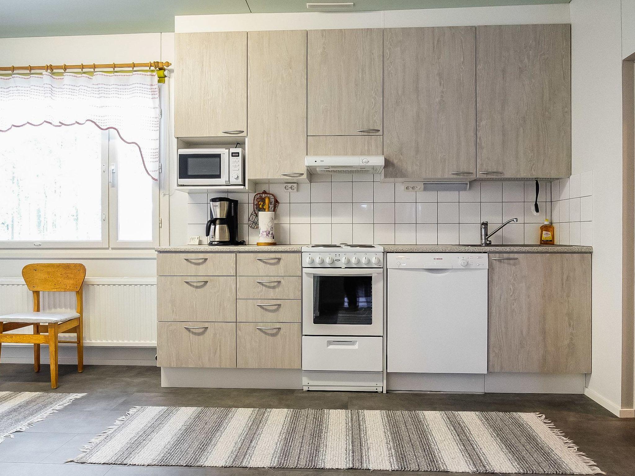 No beach, distance to lake Peltojärvi 2,3 km, rowing boat available in lake Peltojärvi, walking distance from the car is about 300 m. Arable landscape in front of the house.