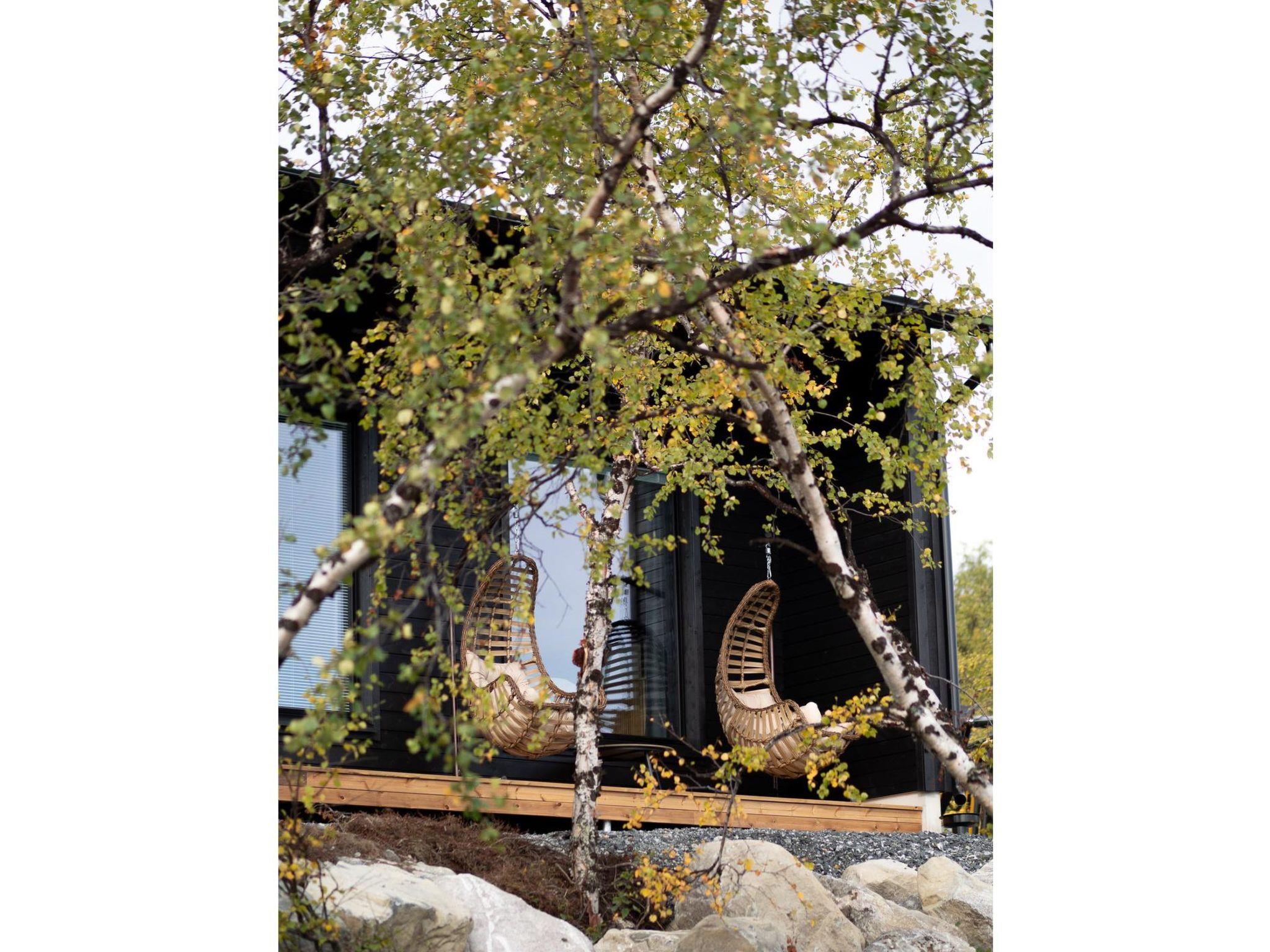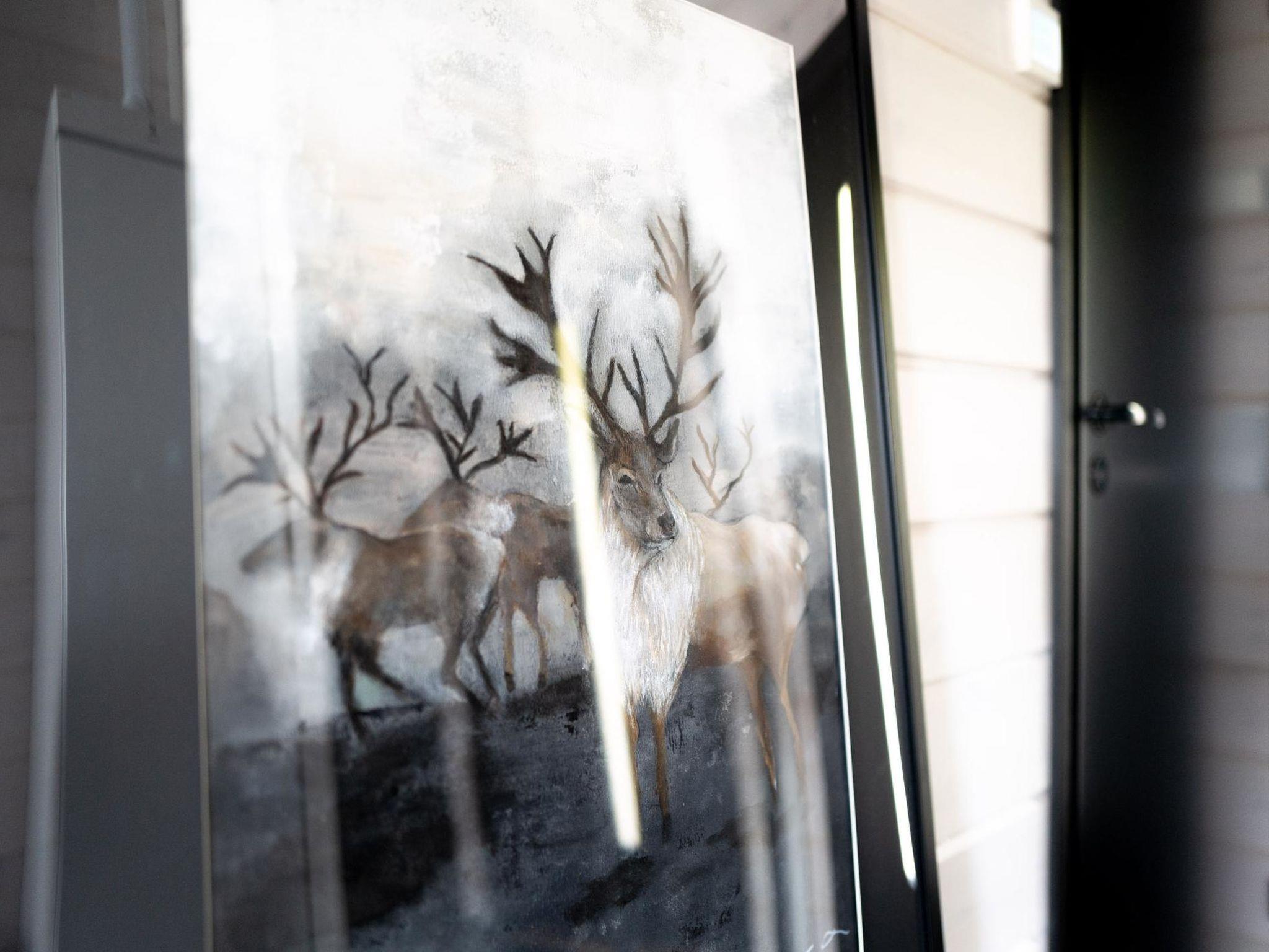 Saanan Helmi is a warm and well-equipped cabin. From the large windows of this beautiful cabin, you can enjoy a spacious mountain view of Lake Ala-Kilpis, which can be admired in the warmth of the fireplace. The shore of Lake Ala-Kilpis is 90 meters away, with no private beach, and the cabin road runs between the beach and the cabin.