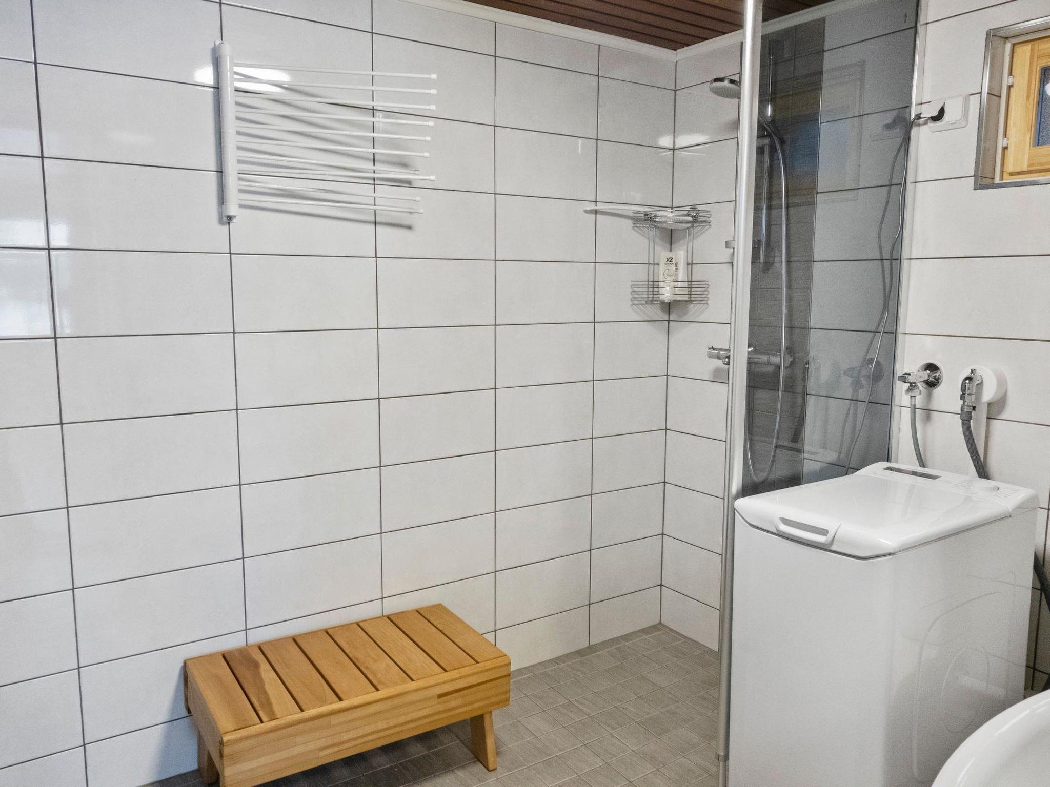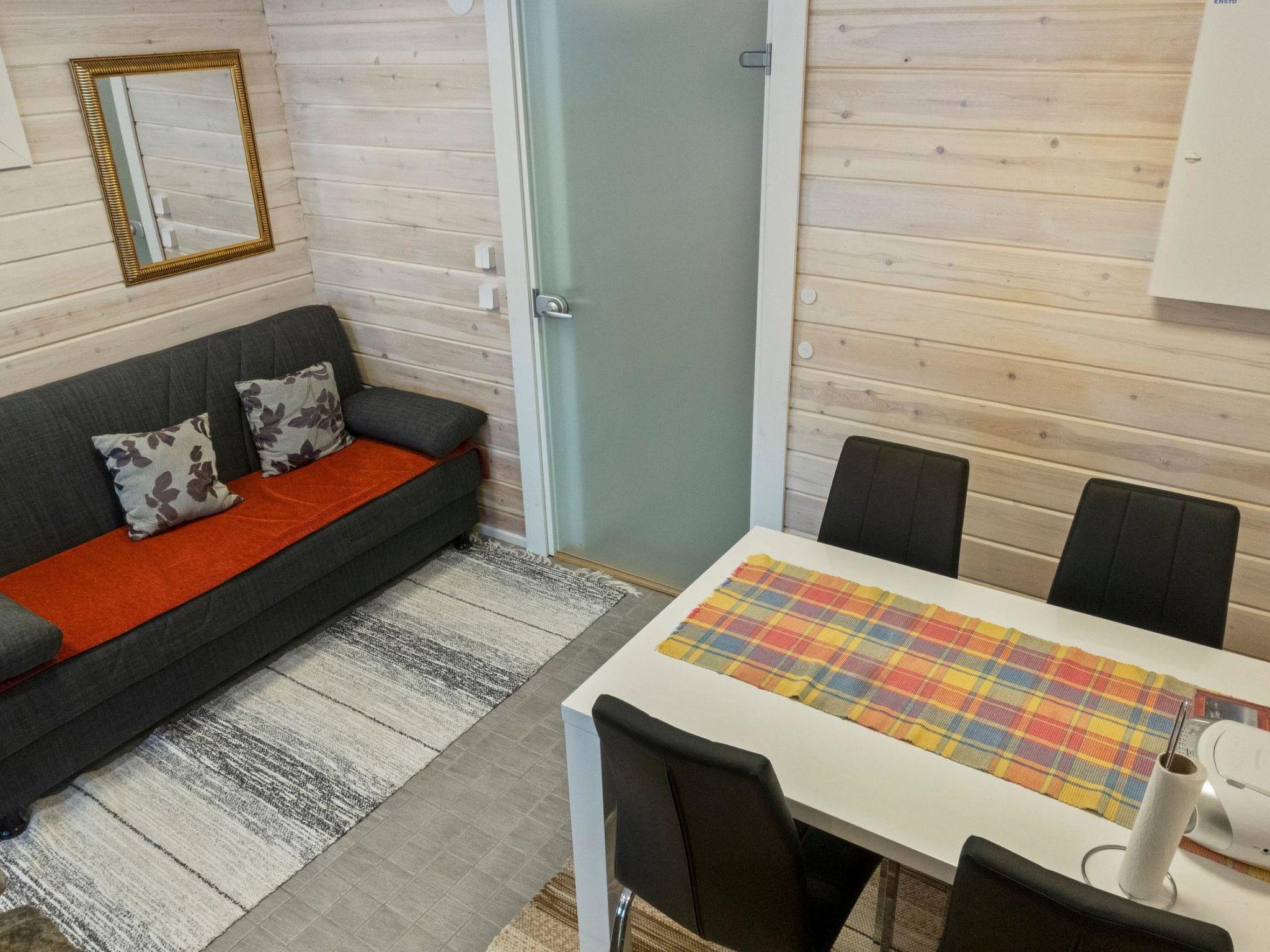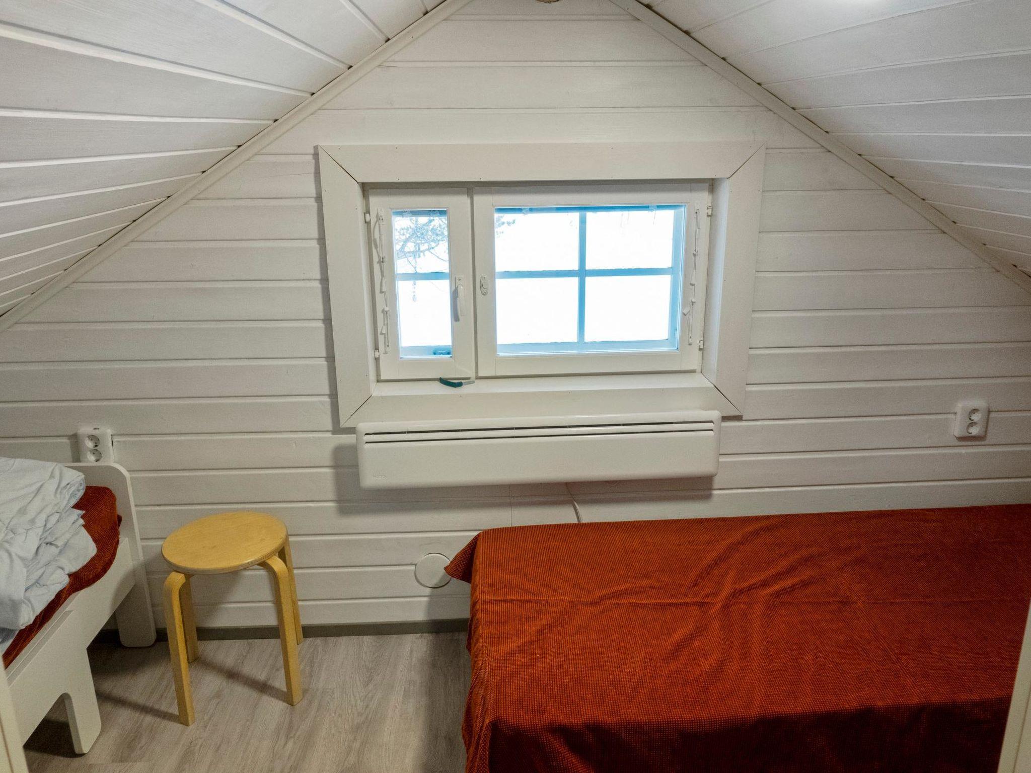 Kelo log-built cabin, facilities on three floors, built in 2022. The middle floor is the entrance floor and has living room / kitchen. The room height in the middle floor is lower than normal, 190 cm. Access to balcony and open terrace from the middle floor. On the upper floor, there are two beds and an additional bedroom with 2 beds. The upper floor has a sloping ceiling. The length of the another bed located in the bedroom can be adjusted. In the picture, the length is 170 cm. The bed can also be placed in some another location on the upper floor, then the bed can be extended to normal length. WC also on the upper floor. Access to the uppermost balcony from the upper floor. On the ground floor, there is sauna, washroom/WC and fireplace room (sofa bed as an alternative bed; the maximum number of people is 4).
