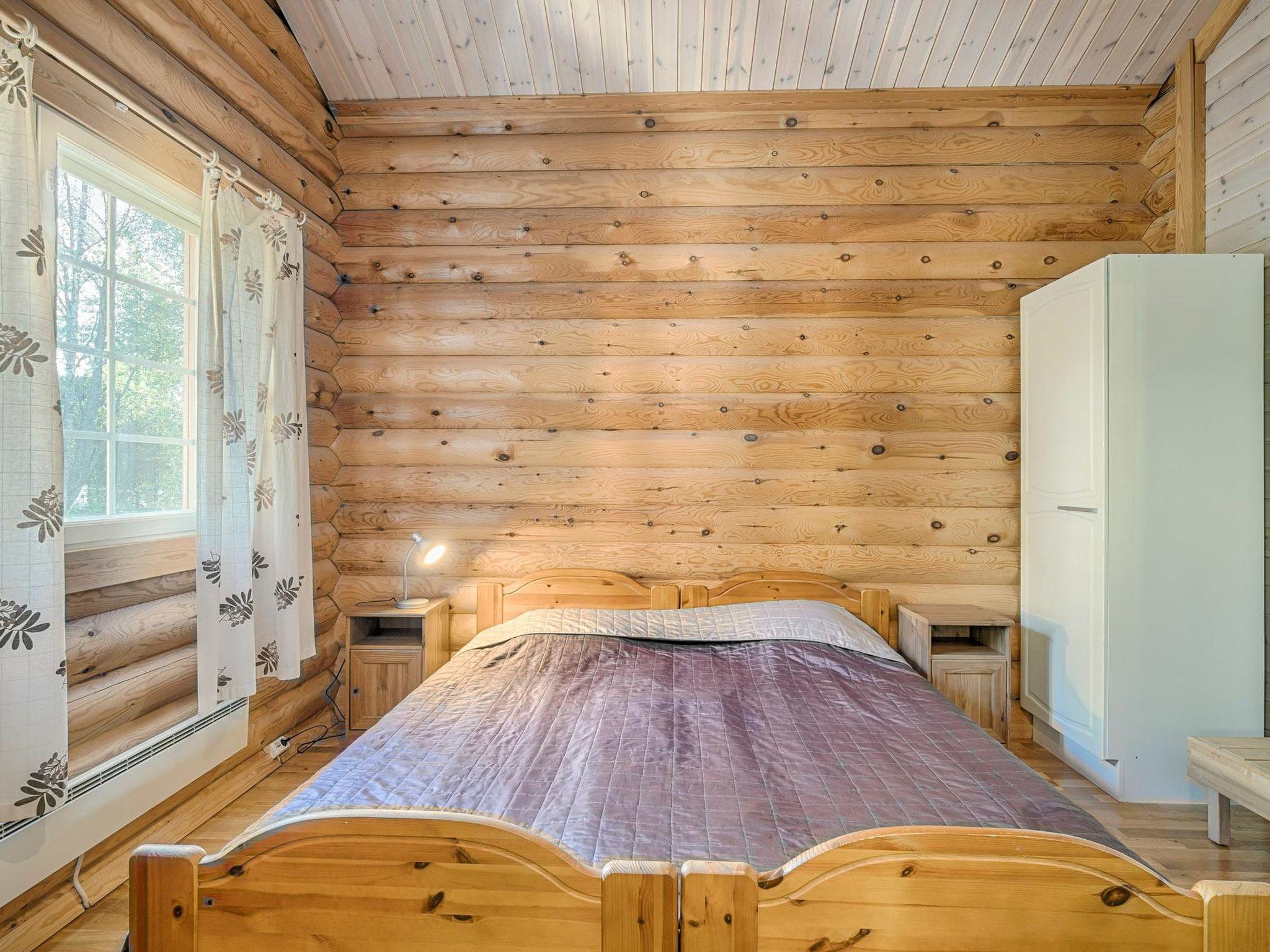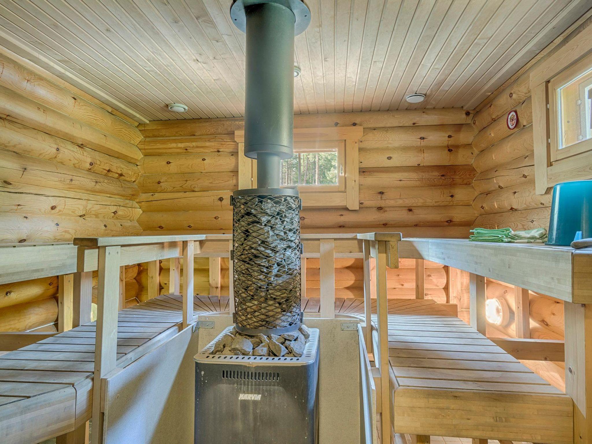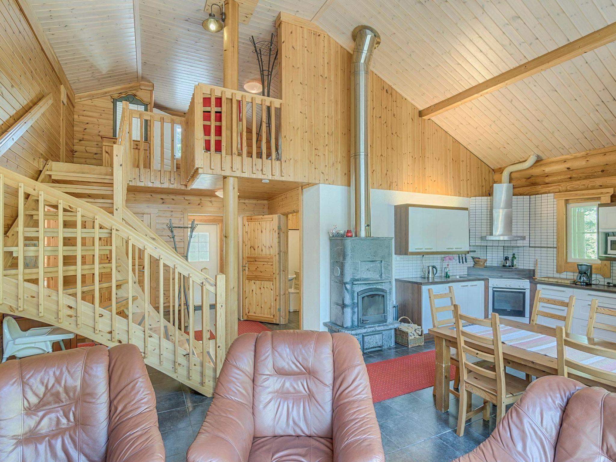 Round-log cottage 2008, living room/kitchen heat-storing fireplace. Downstairs: bedroom 2 beds, bedroom 2 beds. Upstairs: sleeping loft 2 beds, hall and open porch. Sauna in the same building, dressing room, washroom, sauna has underfloor heating and 2 showers. Toilet dowstairs and upstairs.