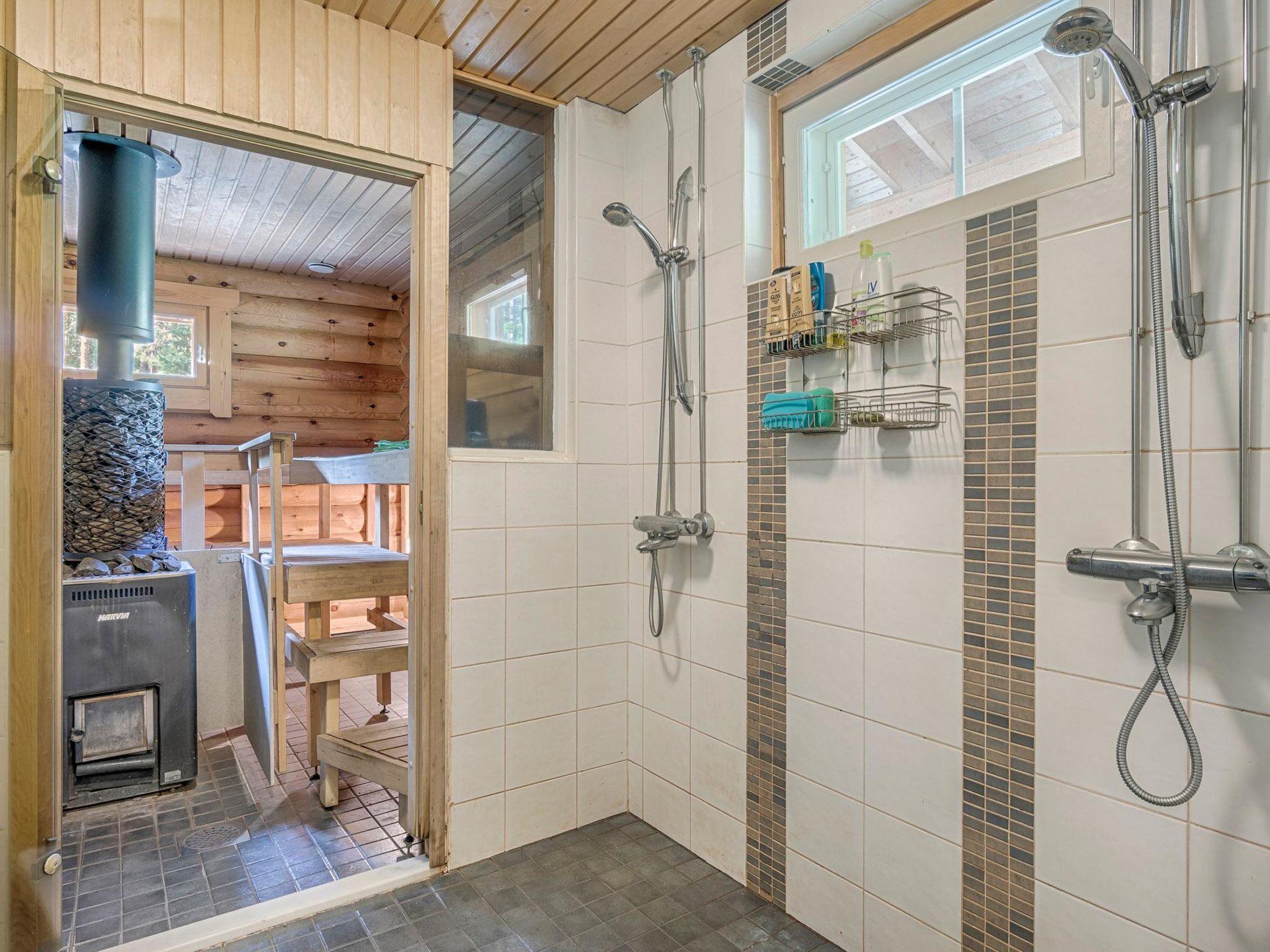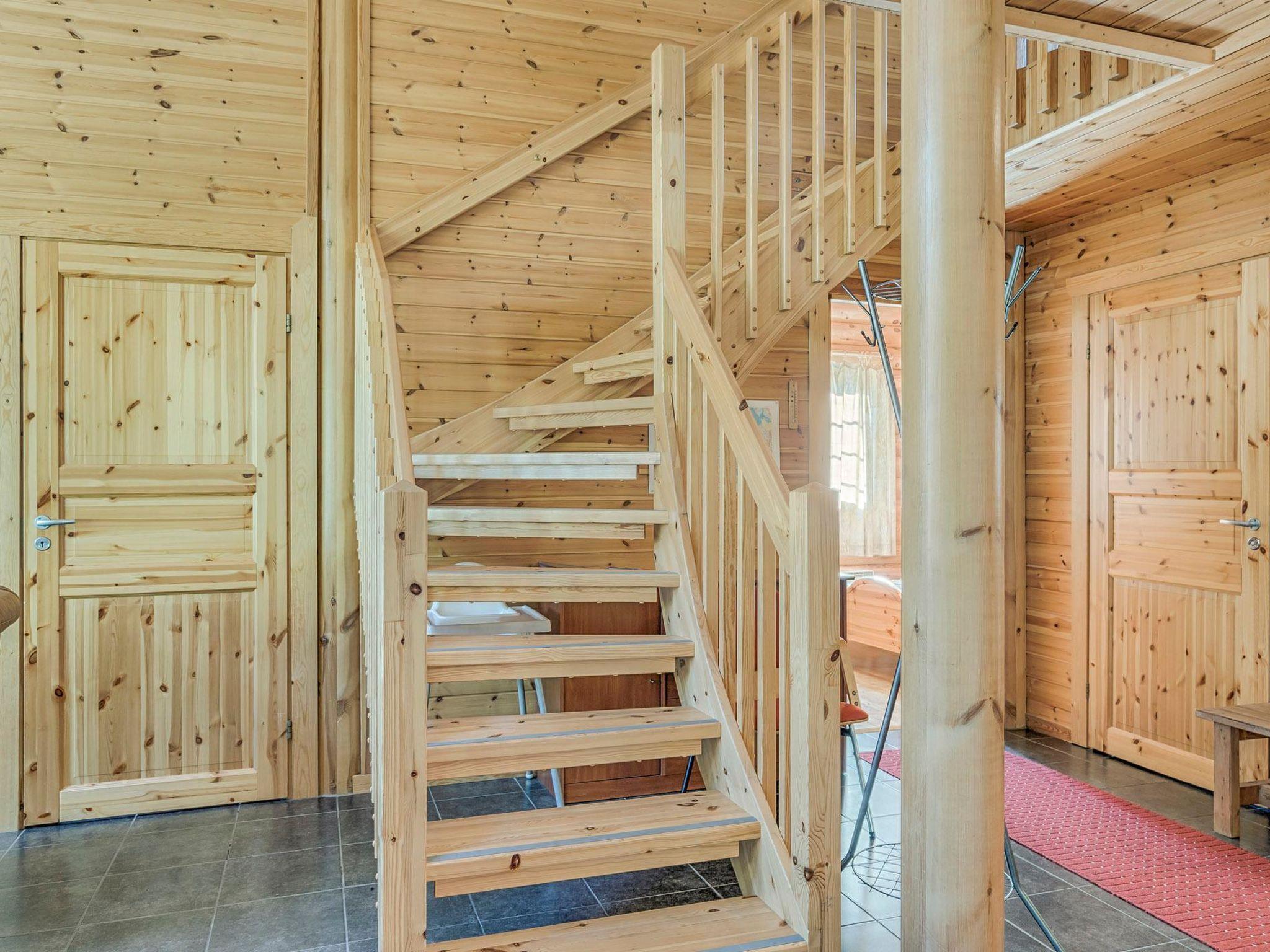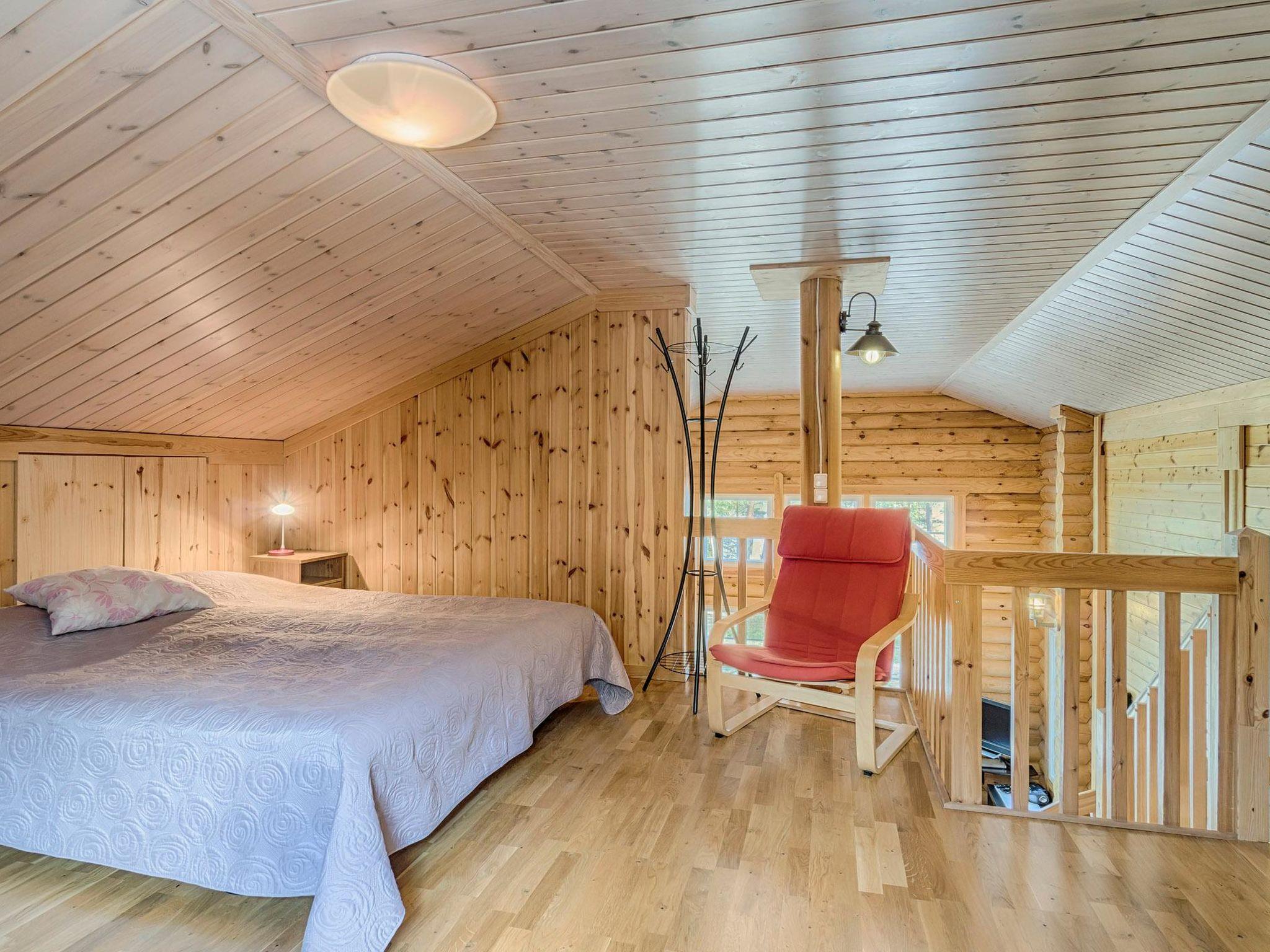 Round-log cottage 2008, living room/kitchen heat-storing fireplace. Downstairs: bedroom 2 beds, bedroom 2 beds. Upstairs: sleeping loft 2 beds, hall and open porch. Sauna in the same building, dressing room, washroom, sauna has underfloor heating and 2 showers. Toilet dowstairs and upstairs.
