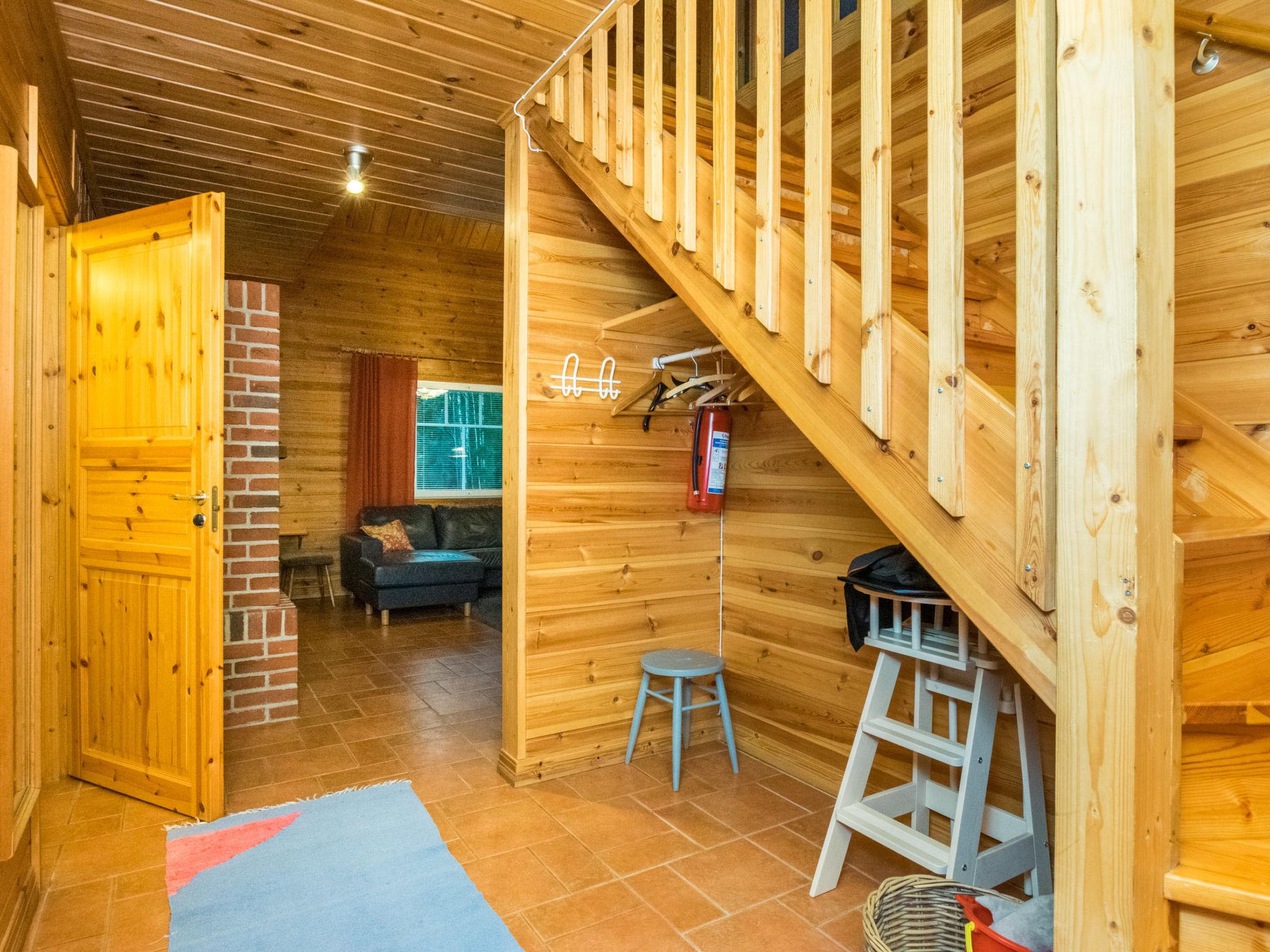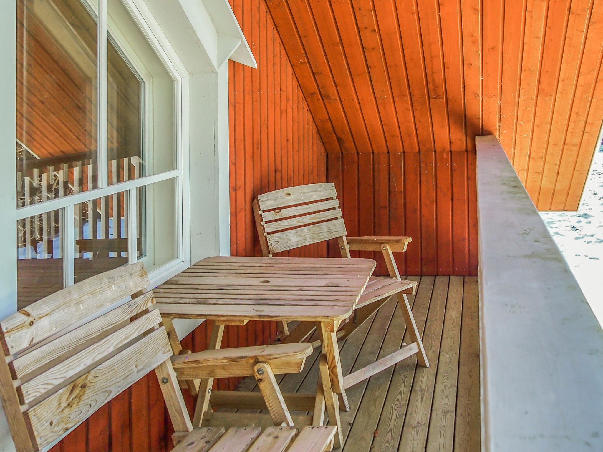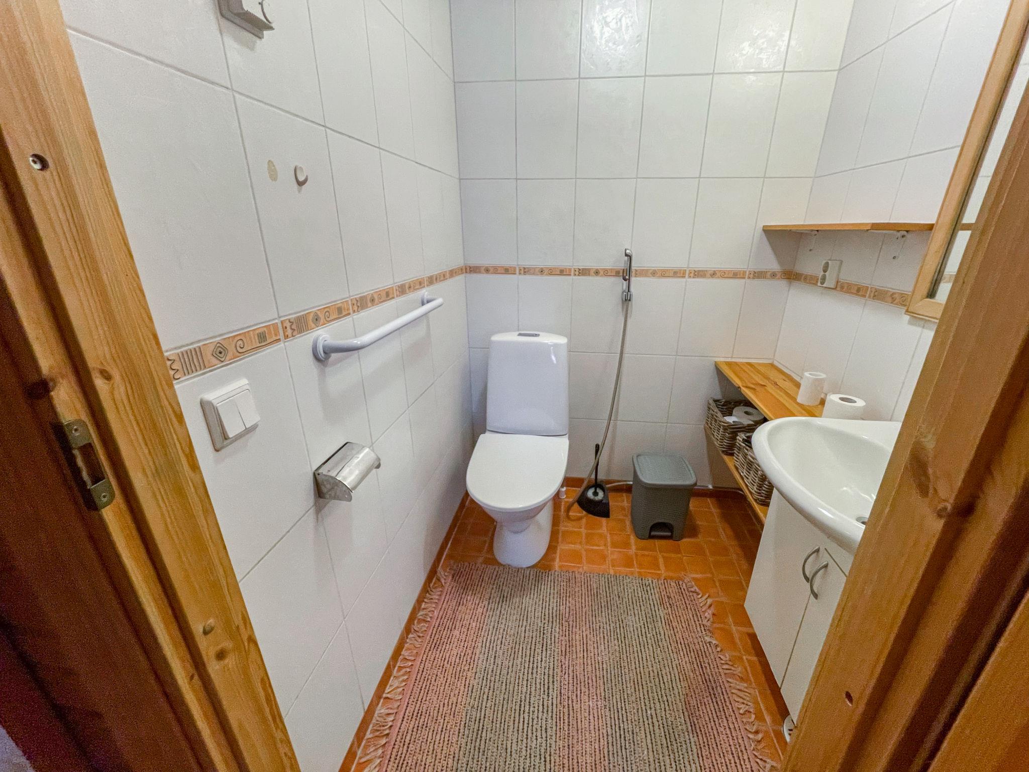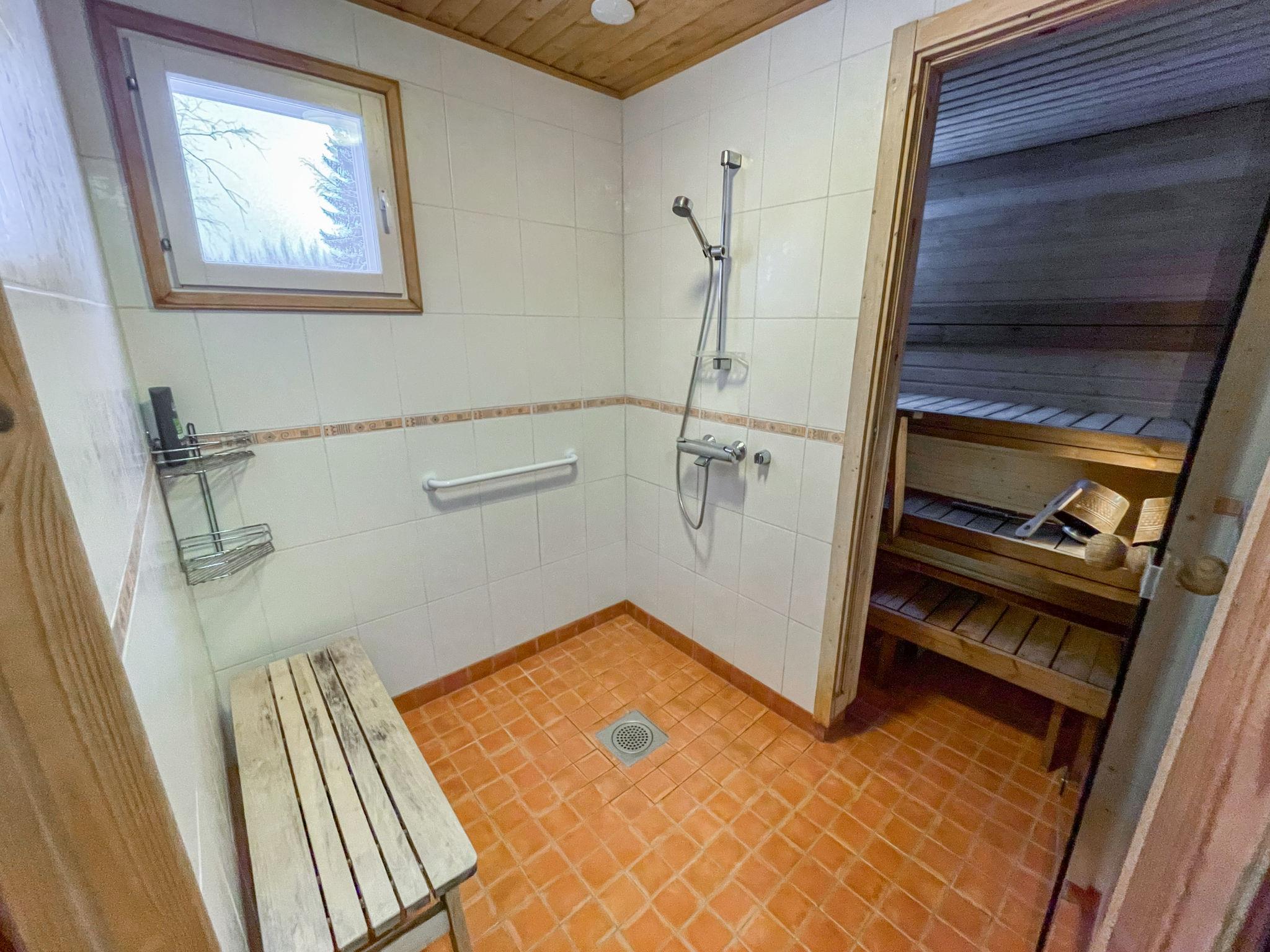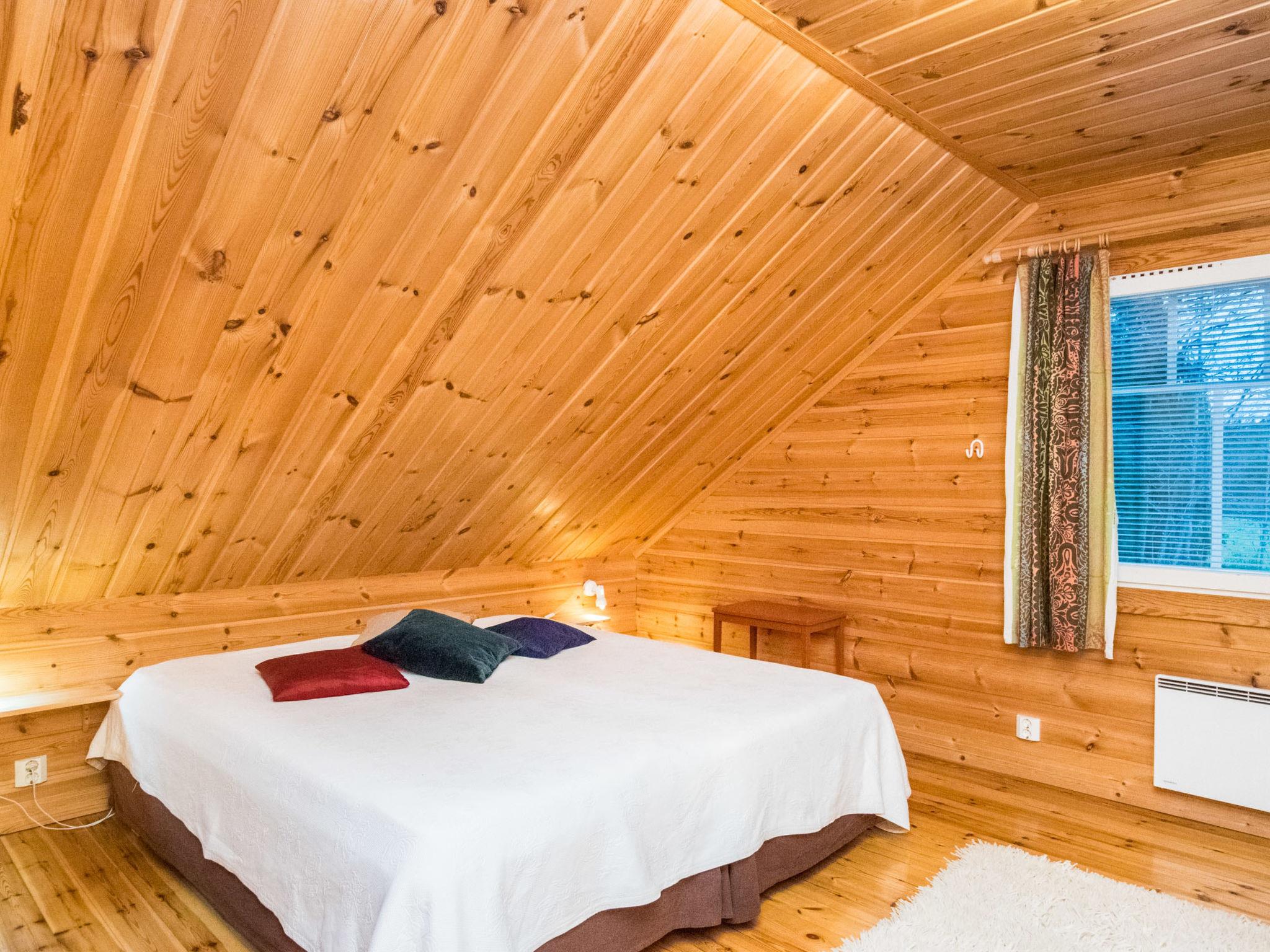 A heat storing fireplace on the ground floor adds atmosphere, and the air to air heat pump keeps the villa cool during summer. The washing facilities include a dressing room, bathroom, and a sauna with an electric heater. The villa also has a separate toilet and two porches that extend the living space. In the yard, there is a grill hut where open fire cooking is permitted.