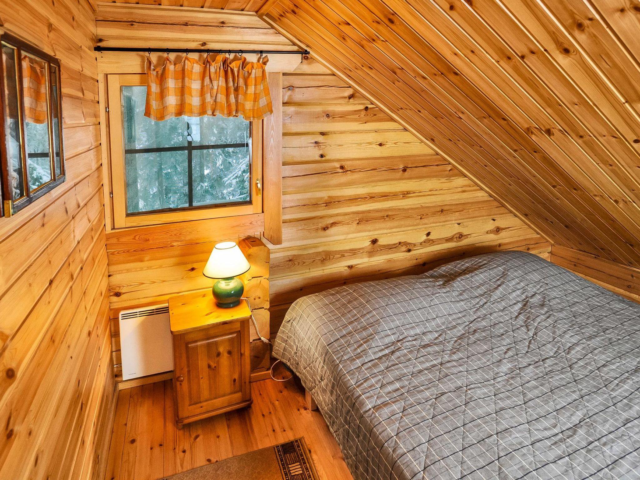 Log cabin 2006, living room / kitchen with sofa bed, 2 bedrooms with 2 beds in each (one downstairs, another upstairs), sleeping loft with 4 beds, wood-heated sauna, washroom, toilet downstairs and upstairs, covered porch.