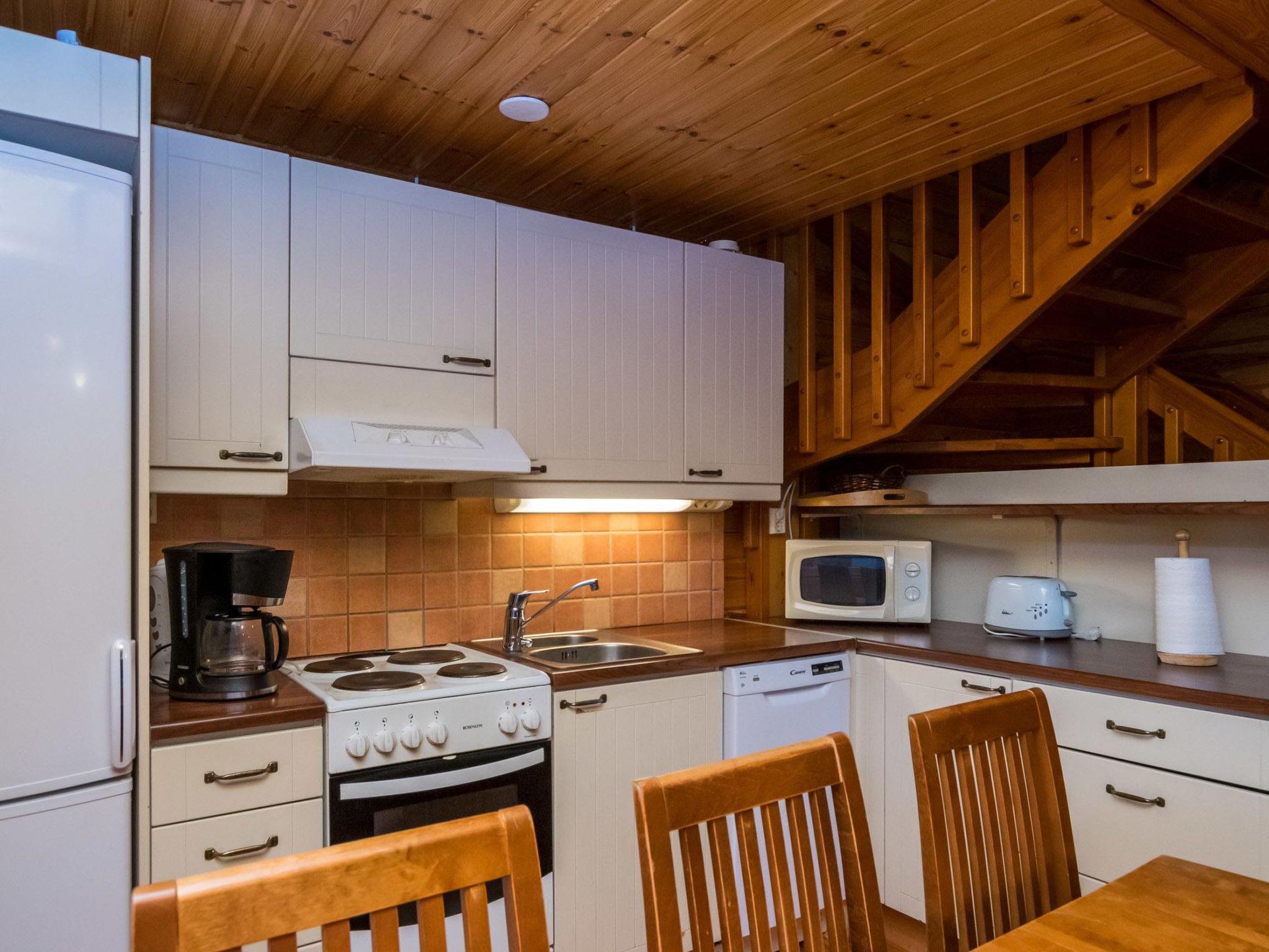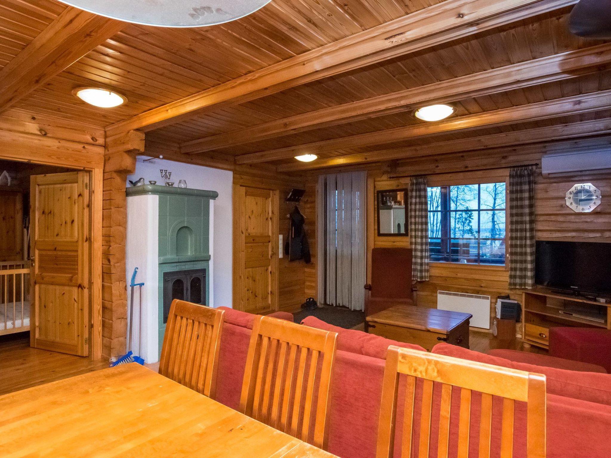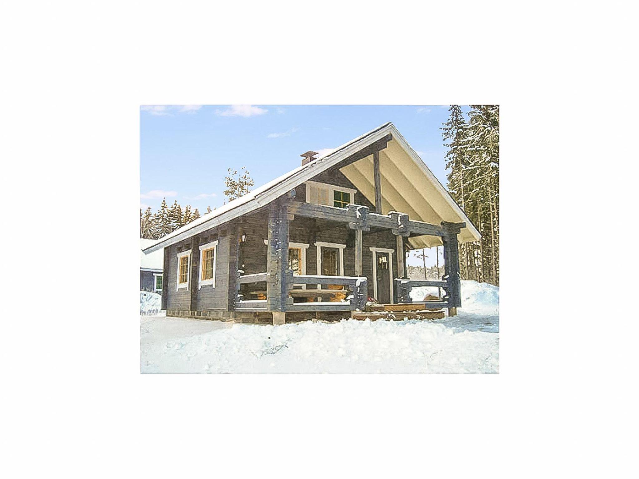 Log cabin 2006, living room / kitchen with sofa bed, 2 bedrooms with 2 beds in each (one downstairs, another upstairs), sleeping loft with 4 beds, wood-heated sauna, washroom, toilet downstairs and upstairs, covered porch.