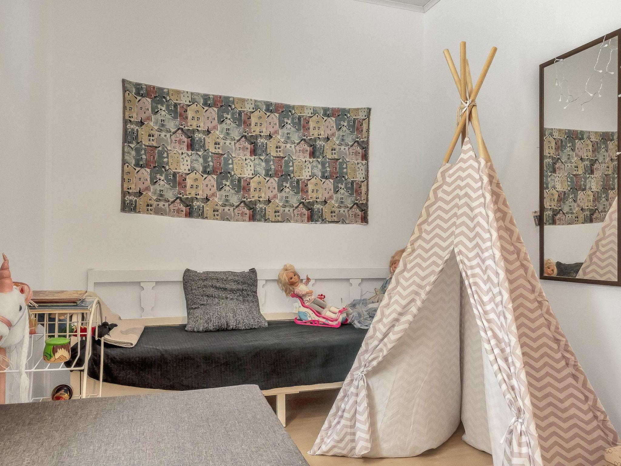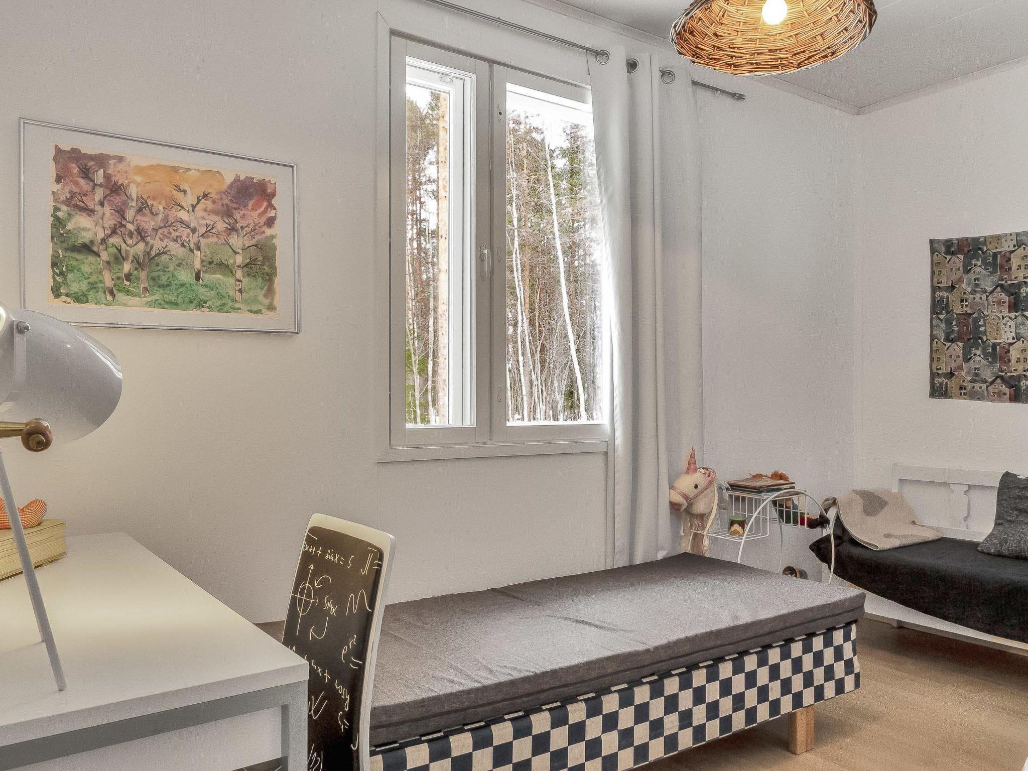 Wooden house, built in 2008. Living room / kitchen with sofa bed, bedroom with 120 cm wide bed, second bedroom with 1 bed and third bedroom (children's room) with 1 bed, sauna and washroom/WC.