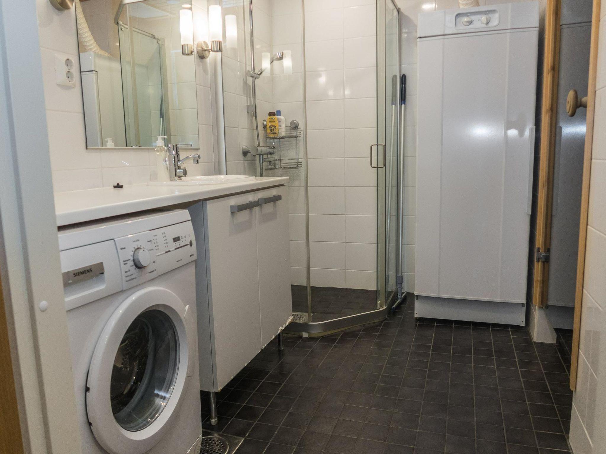The living room/kitchen enables shared dining moments, and the balcony opening from the living room offers a wonderful view of the Ruka village. For those in need of relaxation, electric sauna offers the perfect place to relax and enjoy the warmth.