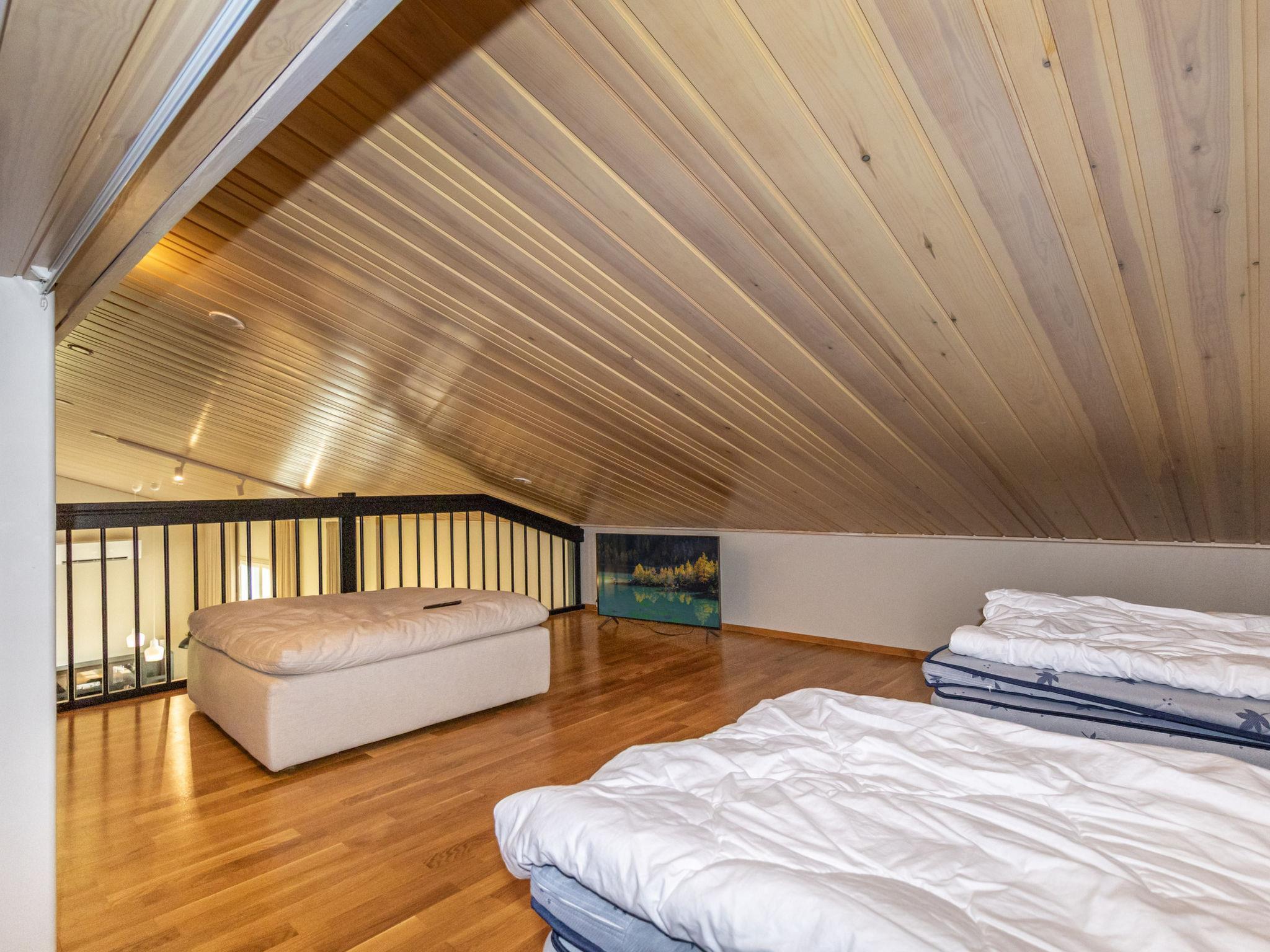 Upstairs is a loft with six 80 cm wide beds, perfect for children or additional guests. Downstairs is also a dressing room that connects the kitchen, bathroom and downstairs bedroom and provides direct access to the terrace that runs the entire width of the apartment.