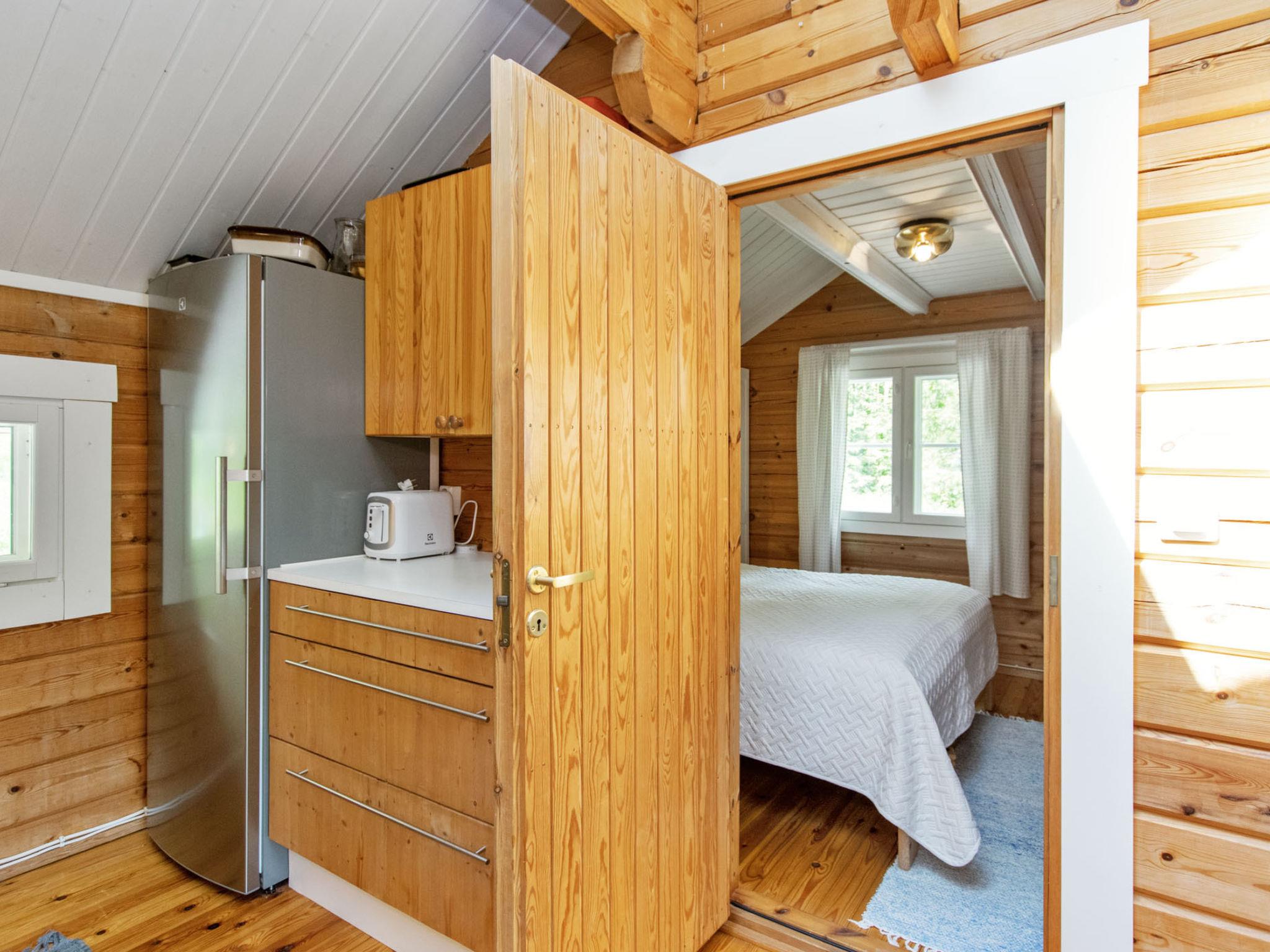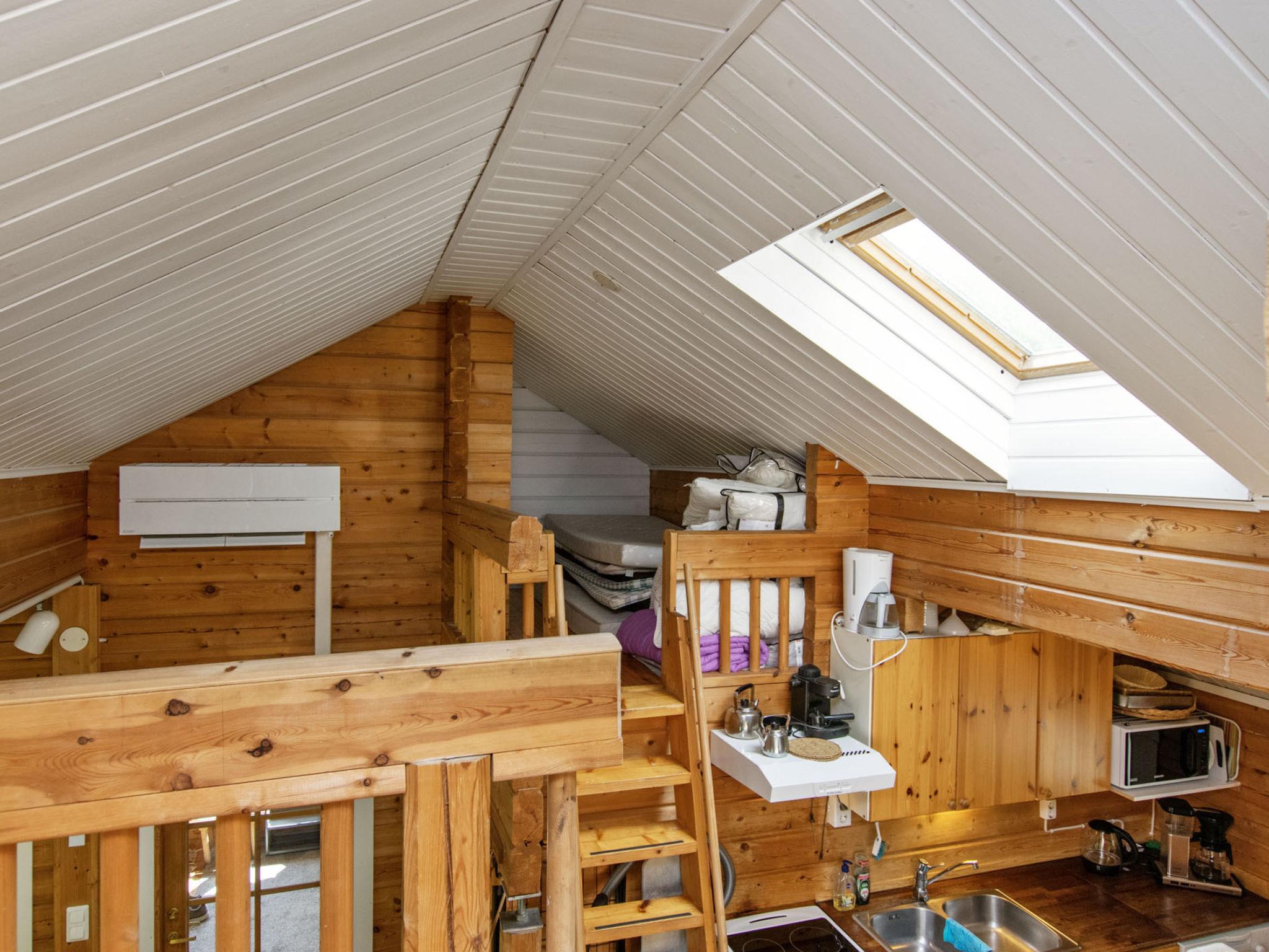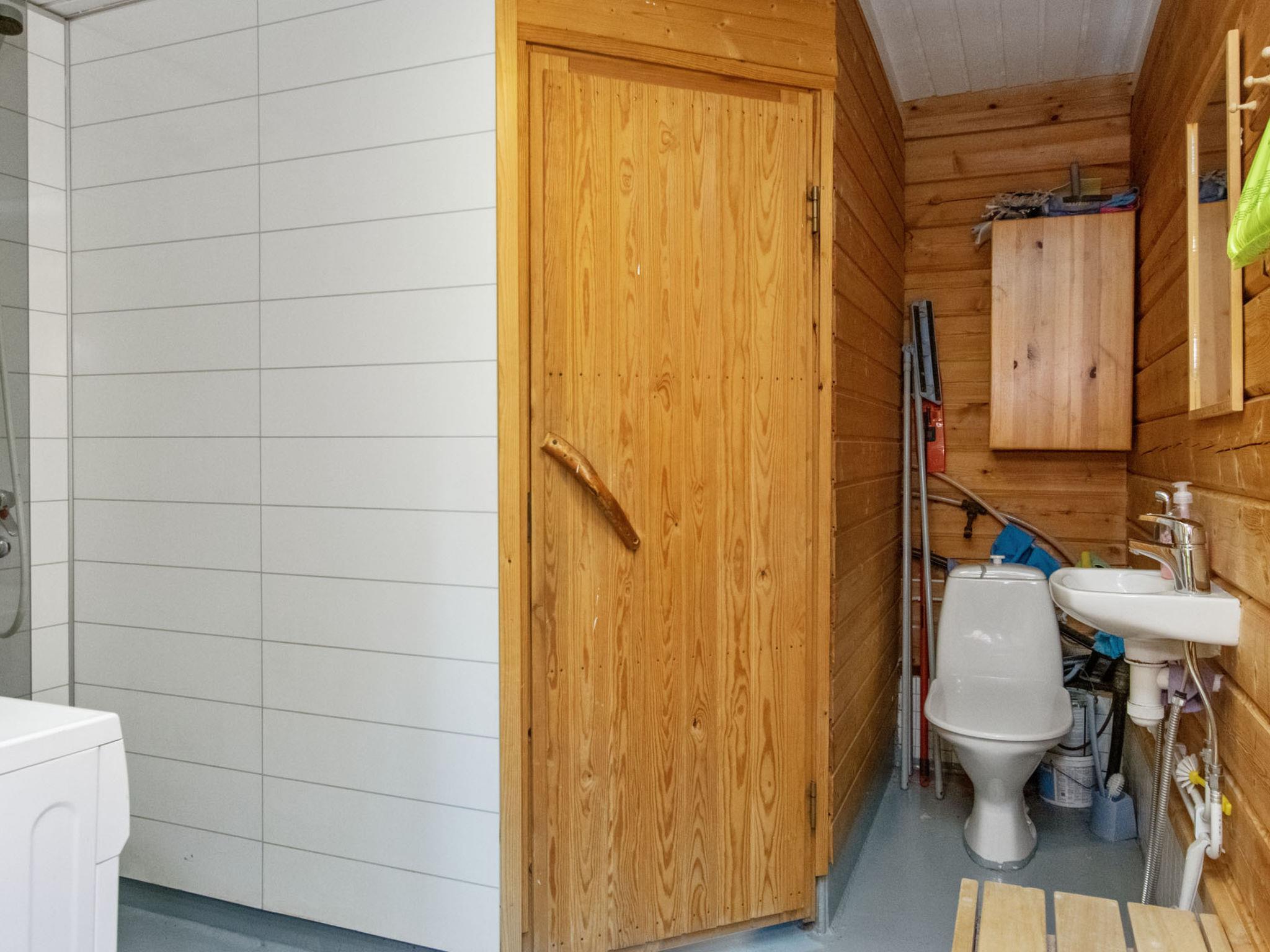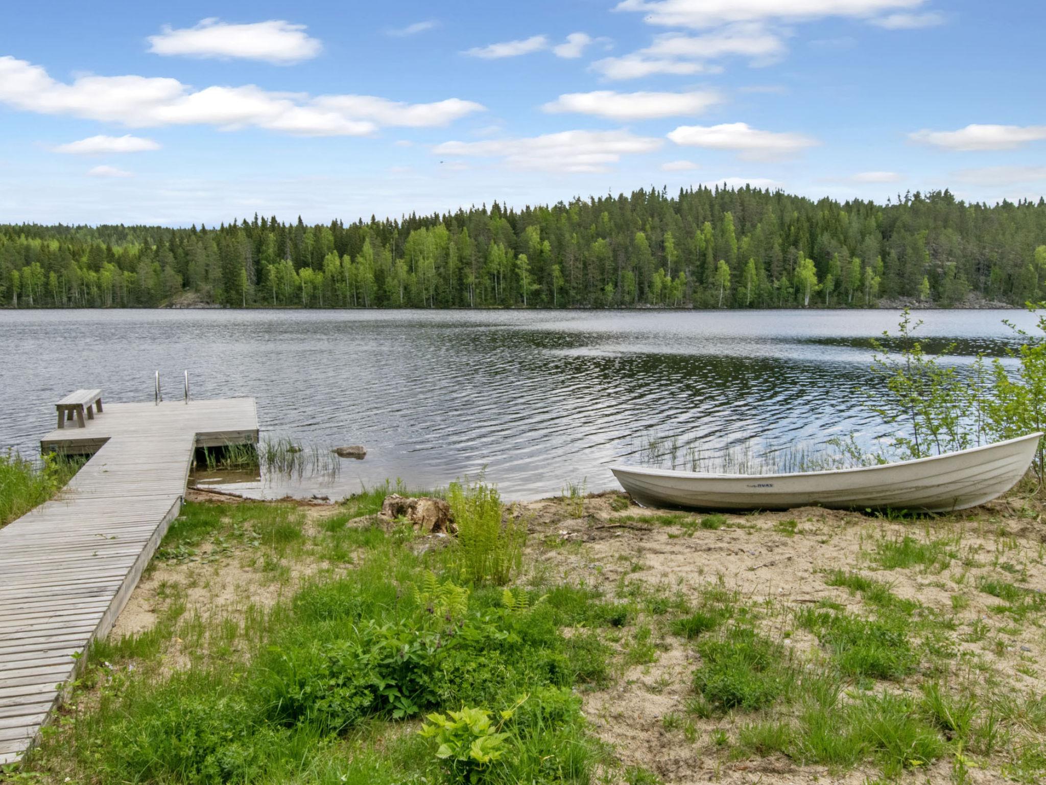 80 km southwest of Joensuu, Lake Pölläkkäjärvi 35 m (1,9 km²), shallow sanded mud and partly rocky bottom, own beach, rowing boat and jetty. Log cottage 1991, living room, kitchen, bedroom with double bed, sleeping gallery (9 m²) with 2 beds, sleeping gallery (4 m²) with 2 beds, bathroom, sauna (elec. stove), terrace. Own separate sauna building (10 m²) with wood heated stove (smoke sauna oven not in use), in sauna building a room with 2 beds, electricity and water supply.